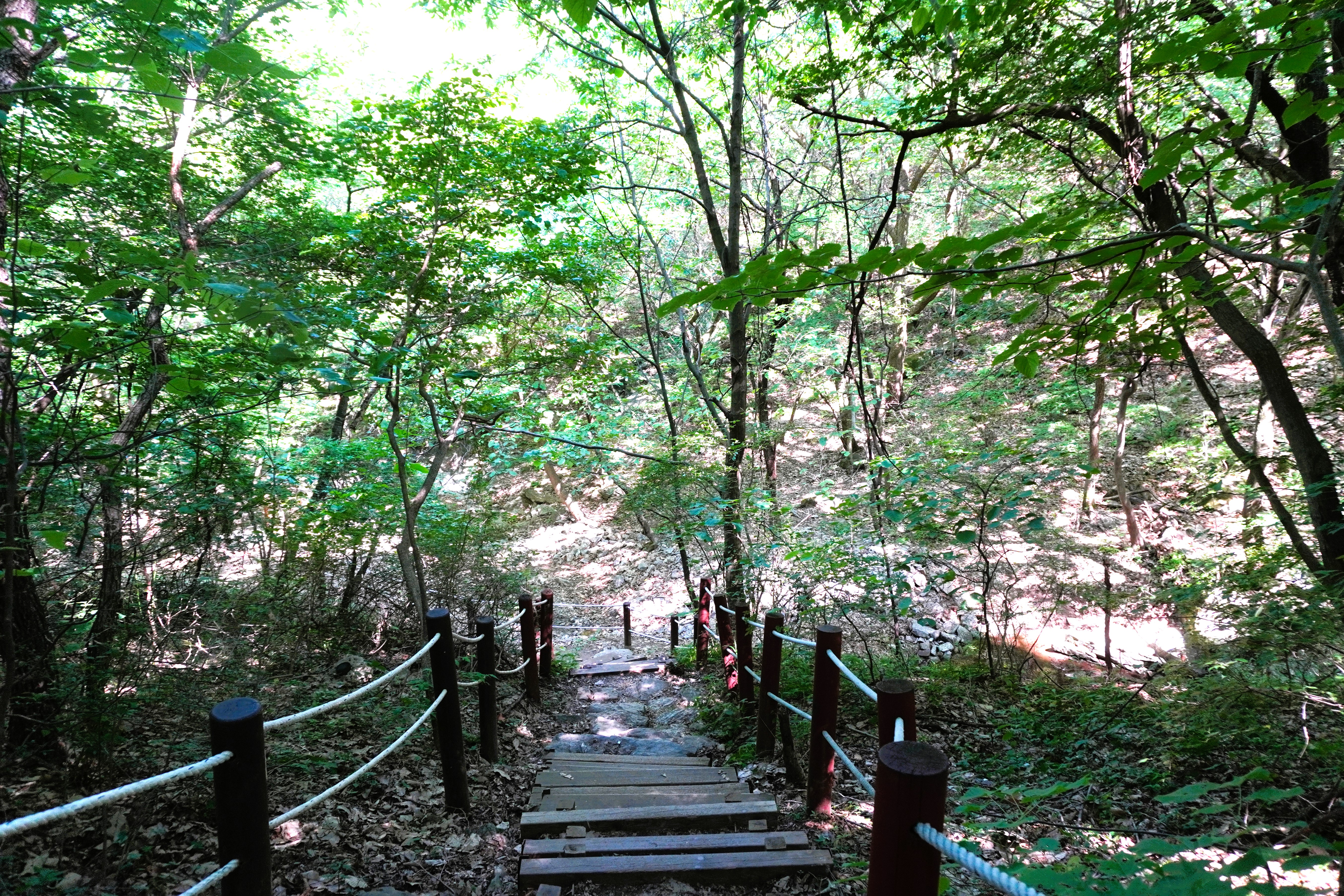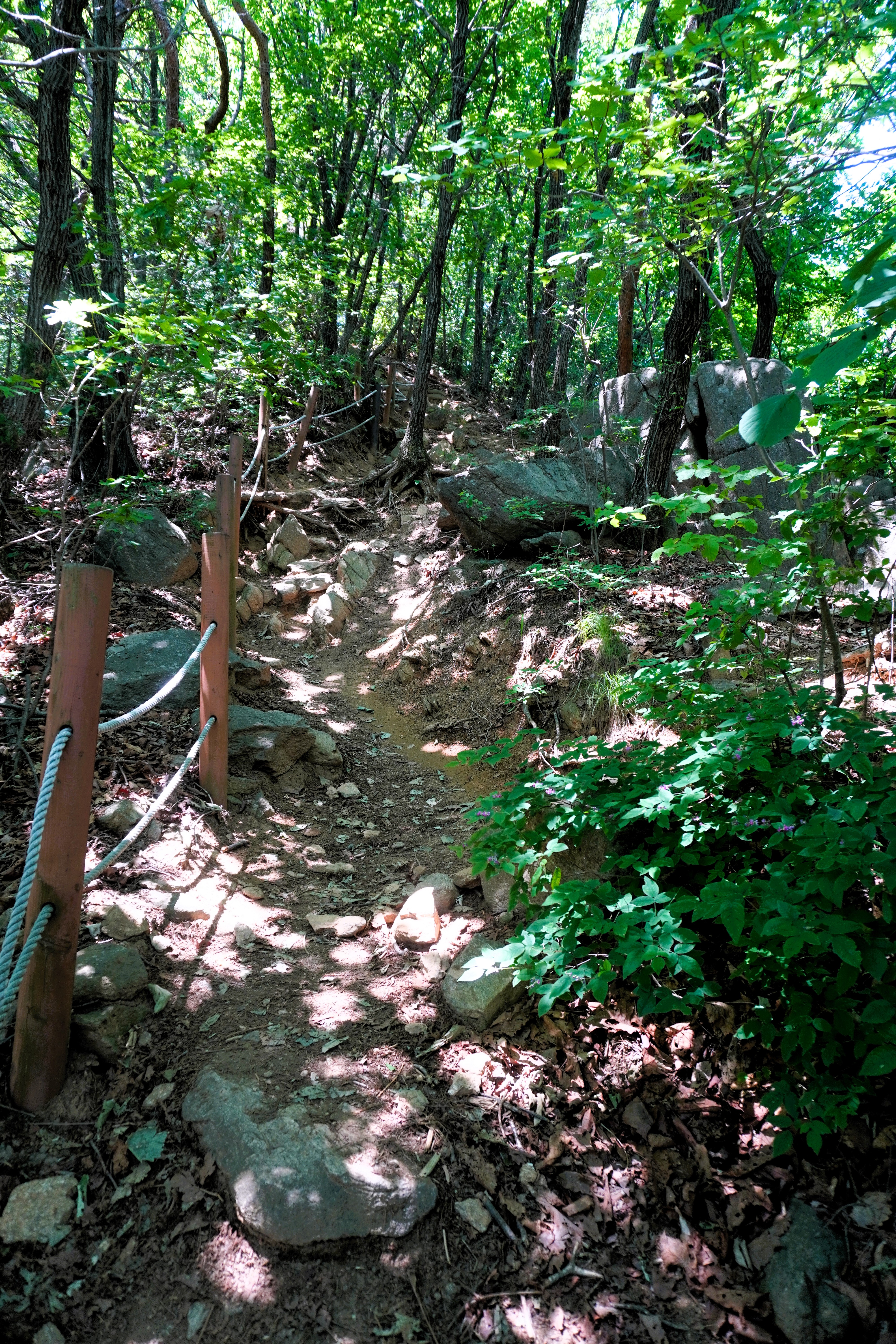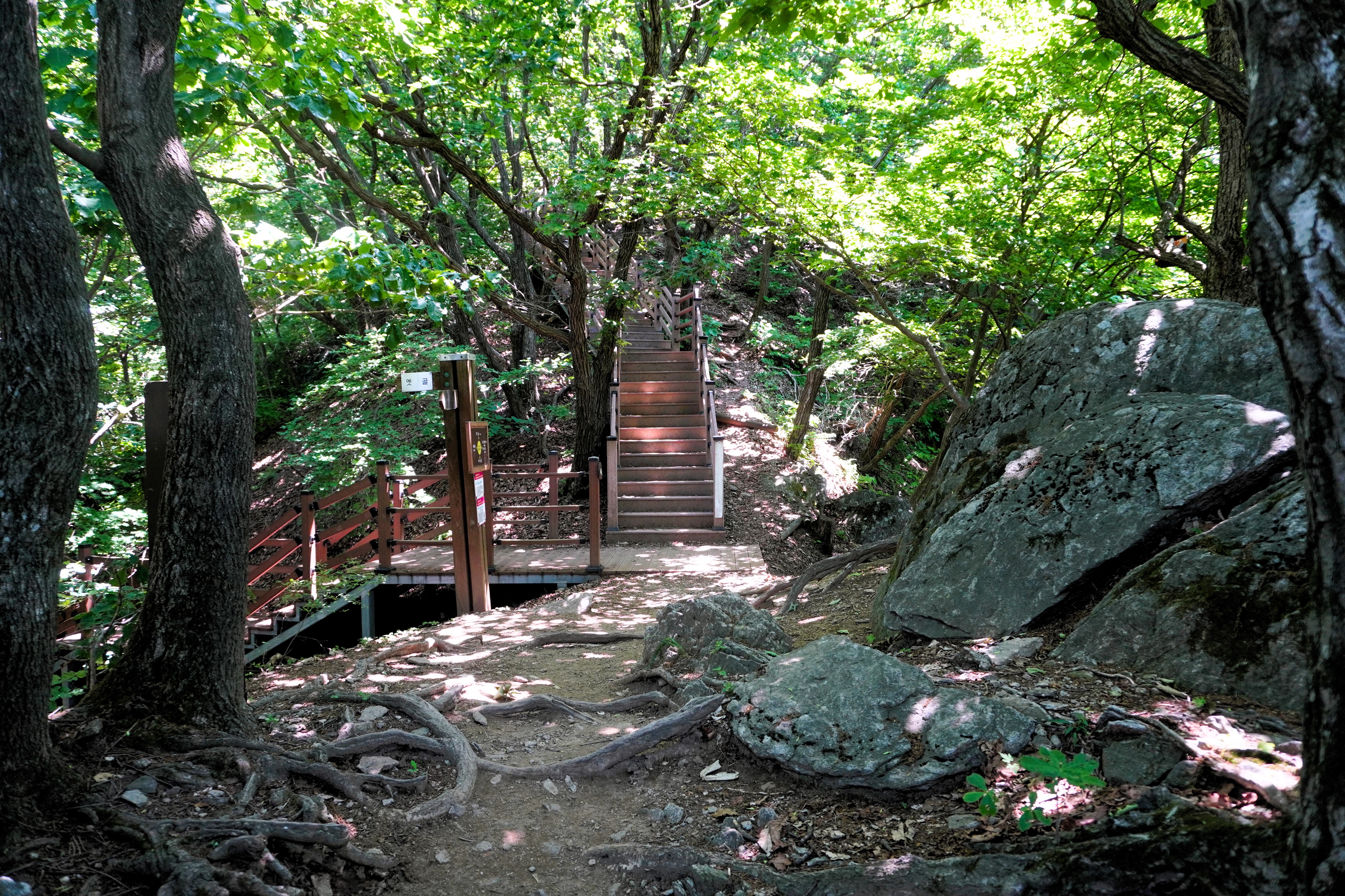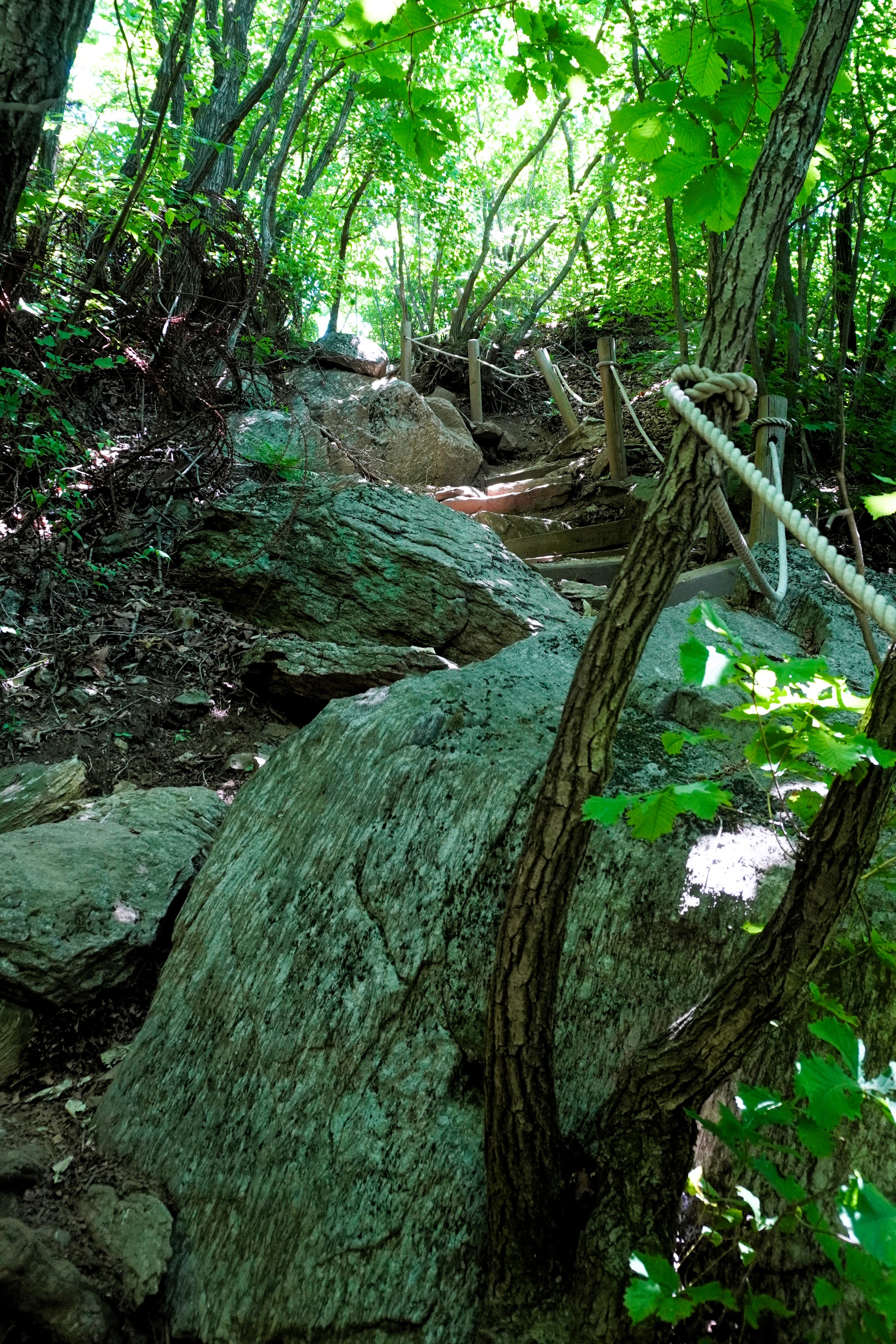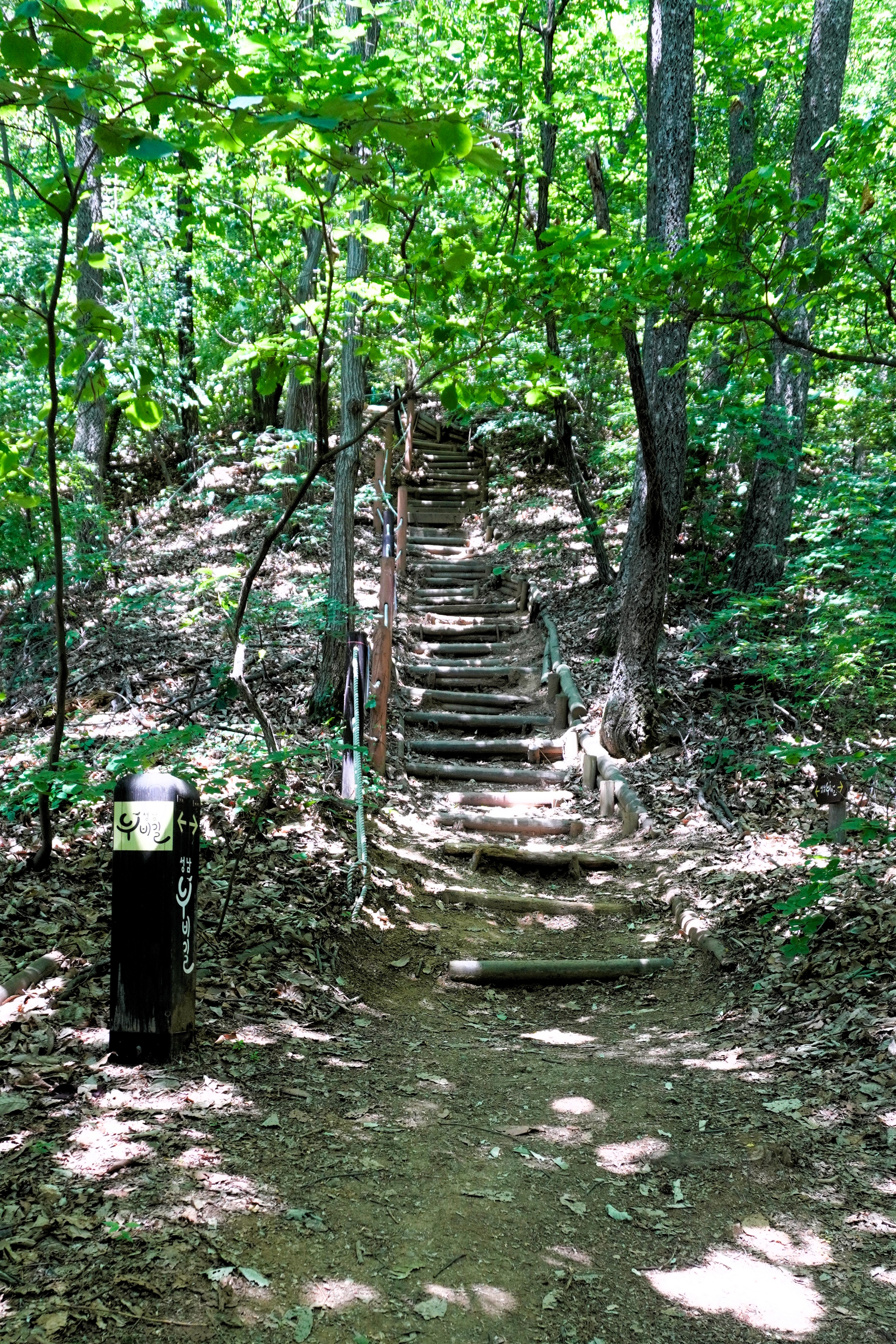 들머리를 들어서고 곧 냅다 치솟는 계단길. 한 6,7분 오름길인데 다 오르고 나면 등에 땀이 고이면서 산행하기에 적당한 몸 상태를 만들어주는 곳이다. 예전엔 여러 사람들과 함께 산행을 해서 이곳을 오르고 난 후엔