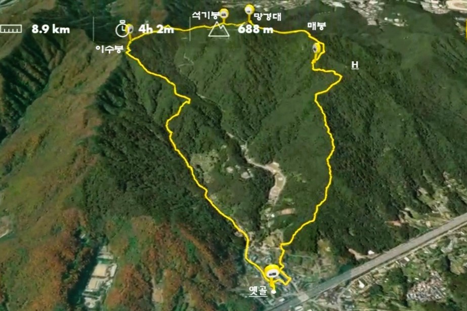 옛골에 차를 두고 매봉 - 망경대 - 석기봉 - 이수봉 - 얫골로 원점회귀를 했다.