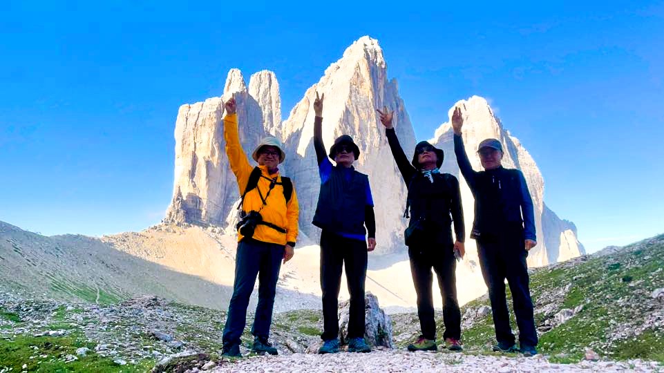 내게 말을 걸어와 반가운 마음에 얼마나 호들갑스럽게 대꾸했는지... 그 아주머니 사진 한 컷 정도 남겼어도 좋으련만... 한 굽이 돌아서니 드디어 트레 치메의 모습이 나란히 보였다.