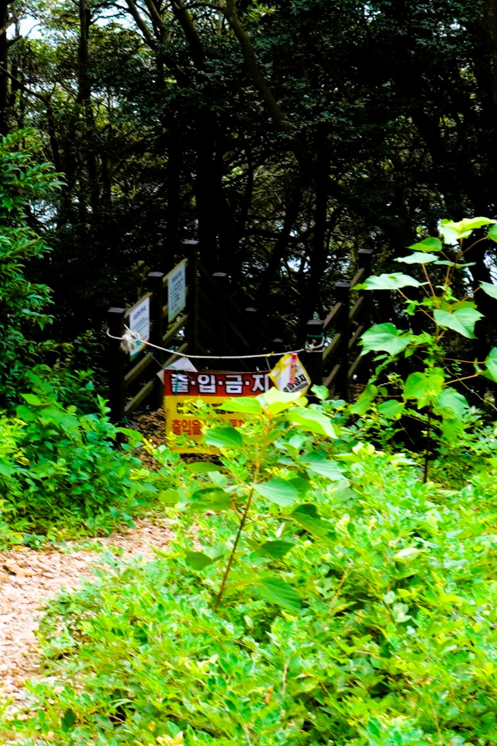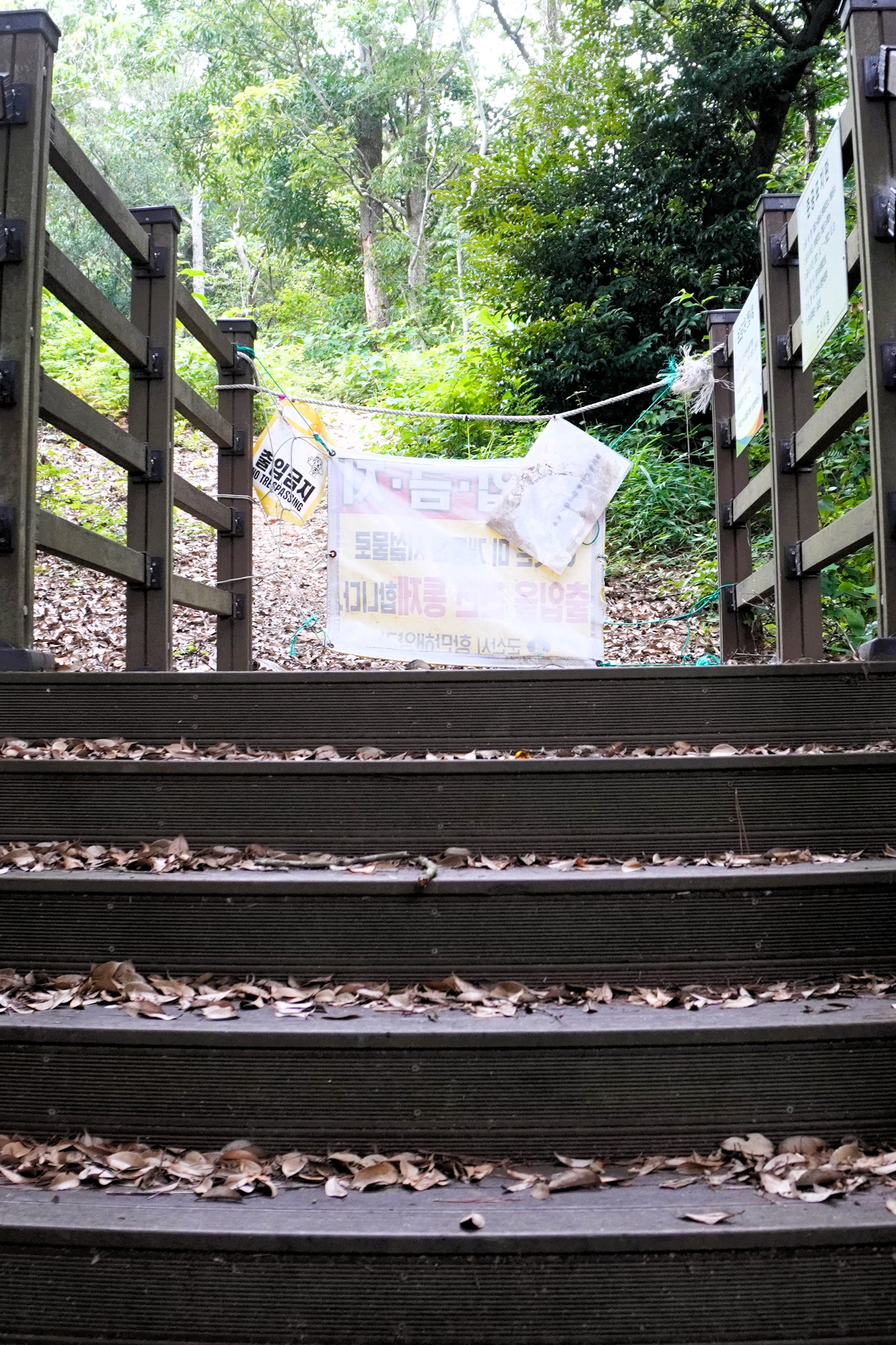 더 이상의 길은 없고...? 가만 풀숲으로 감춰진 곳으로 길이 보여 그 길로 내려갔더니... 아뿔싸!! 멀쩡한 데크 계단 앞에 출입금지는 또 뭐지...? 언제 또 올지 모르는데... 살짝 줄을 넘었다.