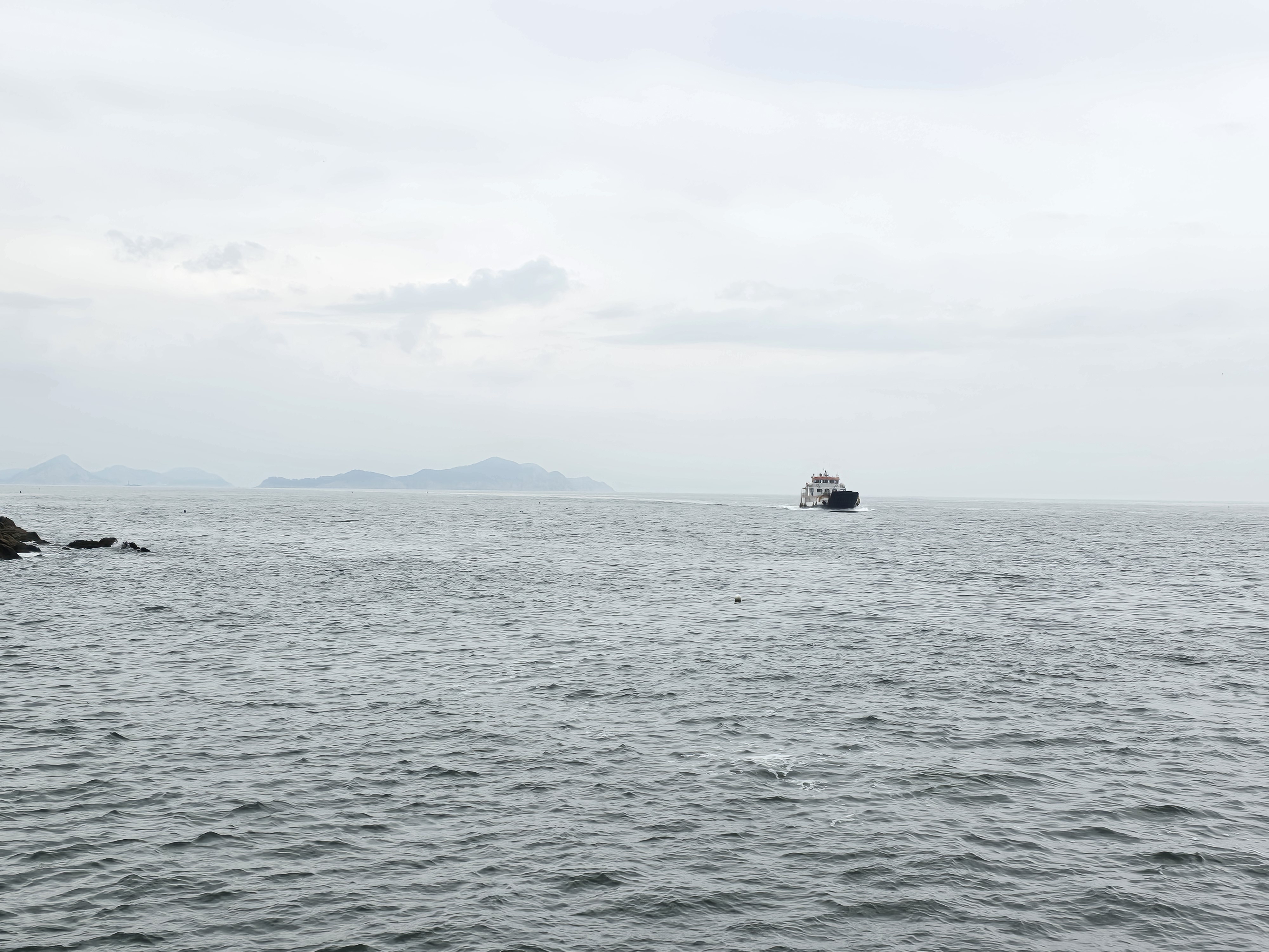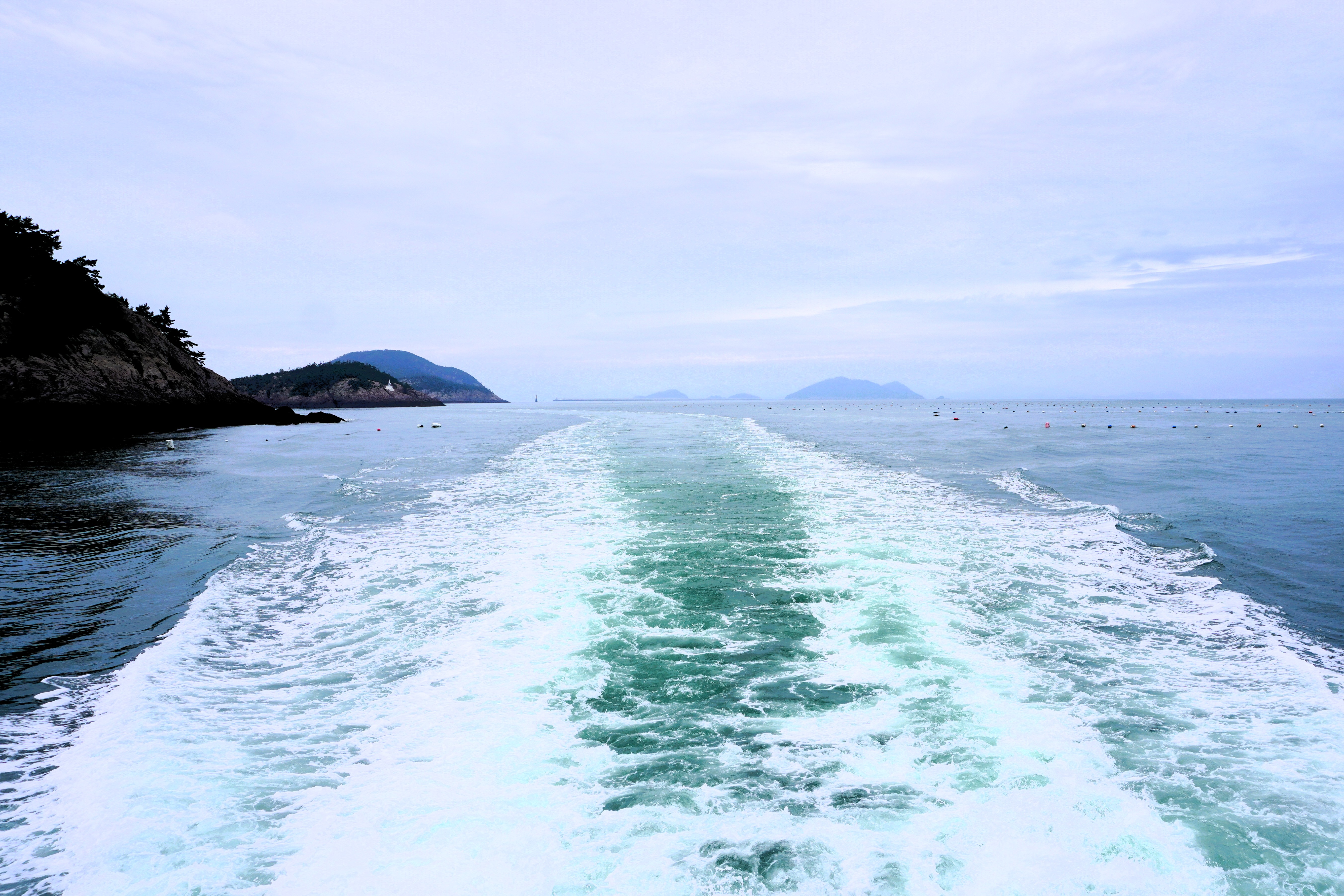 관리도 선착장에서 다시 배가 출항했다. 멀미역 덕분에 아직까지는 멀쩡한 상태! 그래도 혹시 몰라 갑판으로 나왔는데... 저 앞쪽으로 보이는 열도의 왼쪽 끝이 명도라고 옆 승객께서 알려주신다.