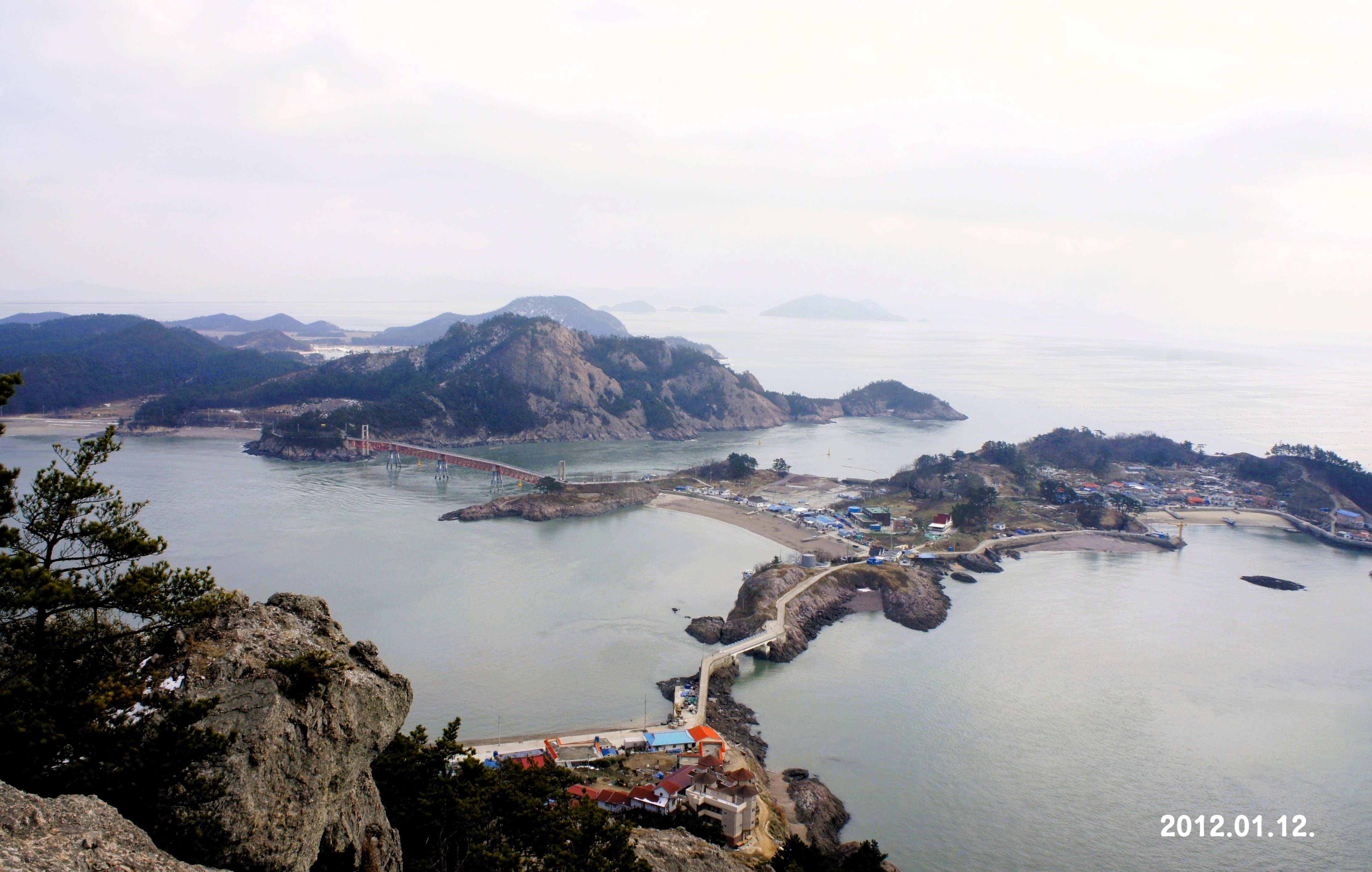 명도를 잇는 다리가 보이는 곳에서 두 대장님들을 기다리는데... 두 대장님들은 못내 아쉬워 명도를 잇는 다리까지 내려가 그 다리를 사진에 담아 오셨다고 한다. 암튼, 명도까지는 못 갔지만