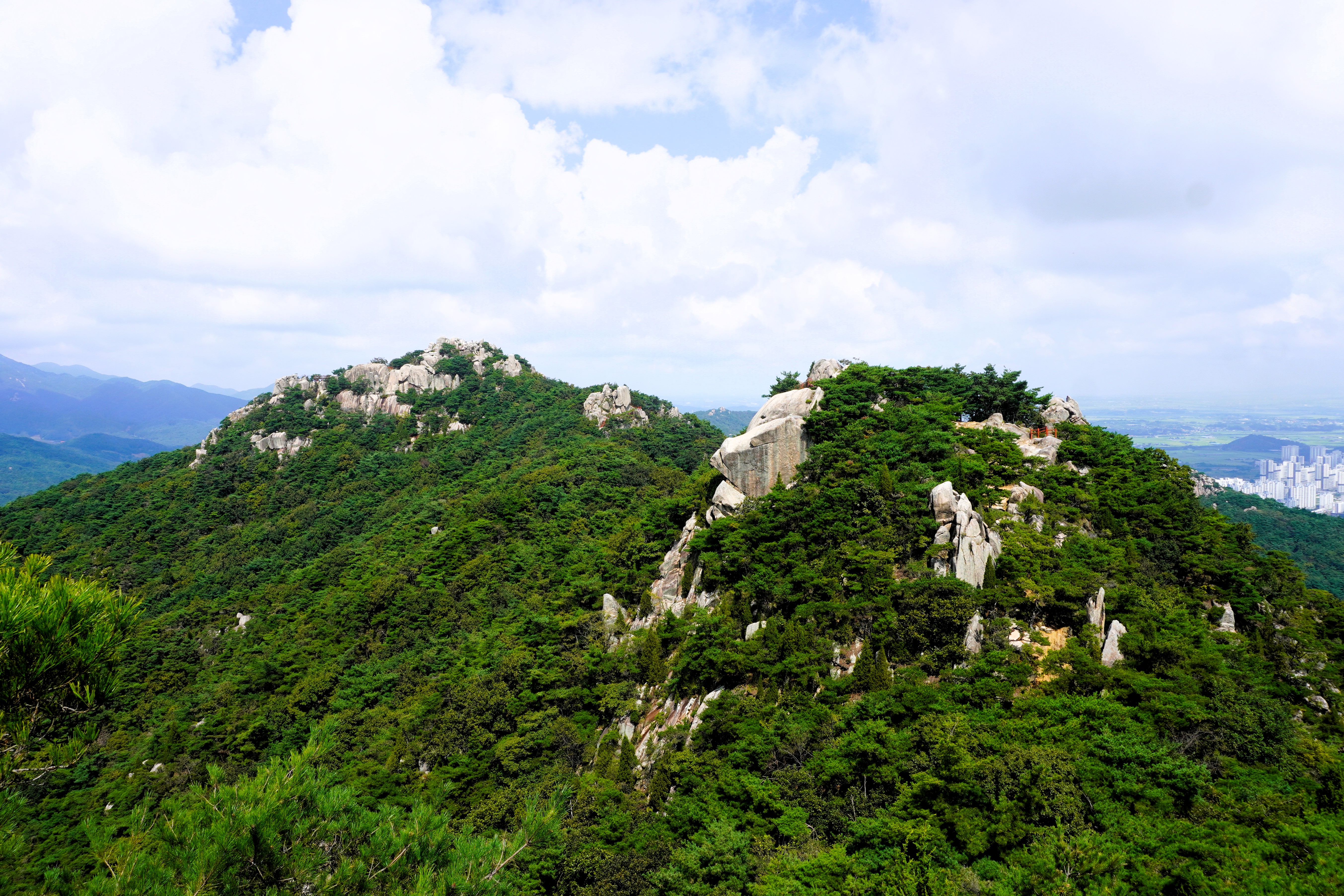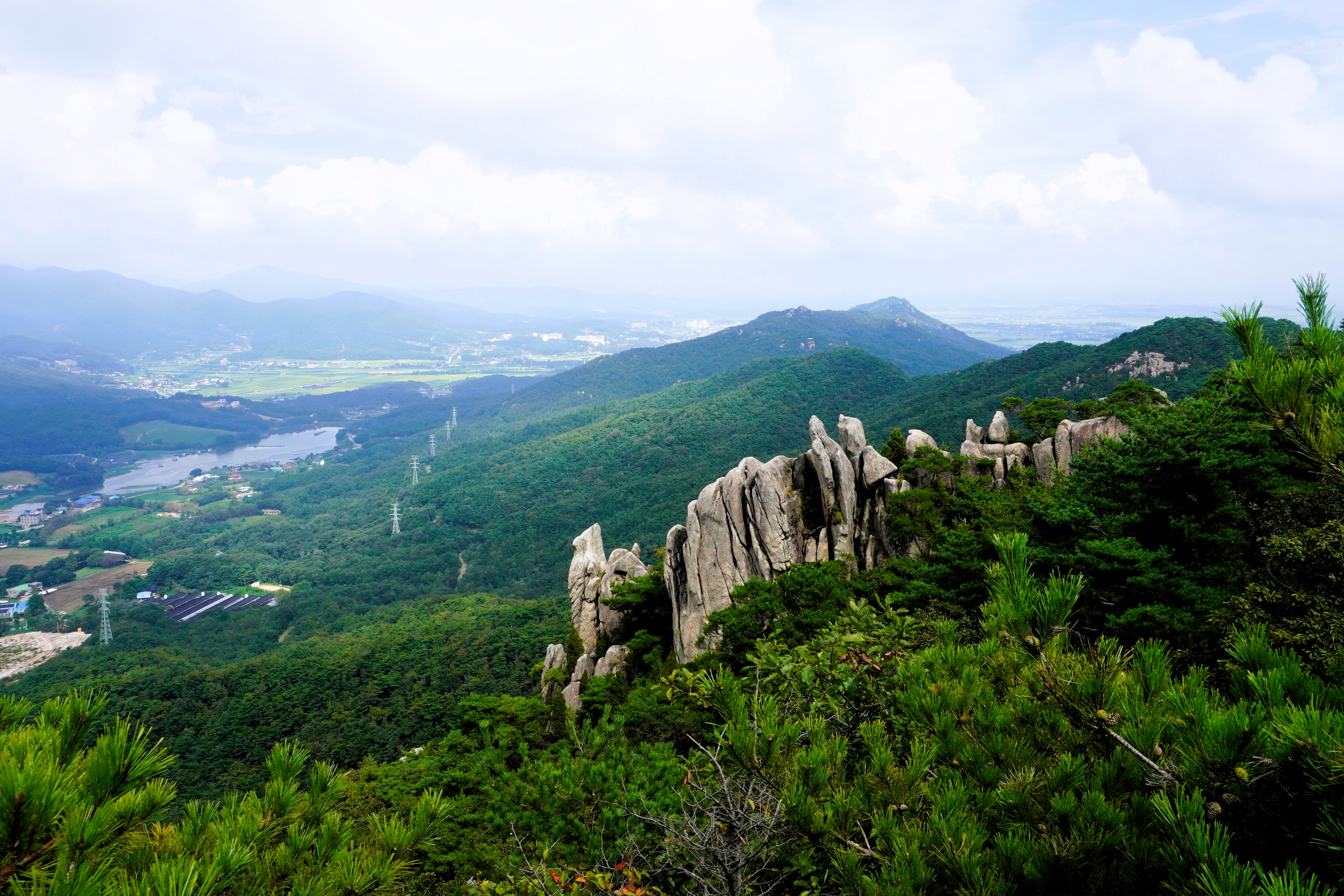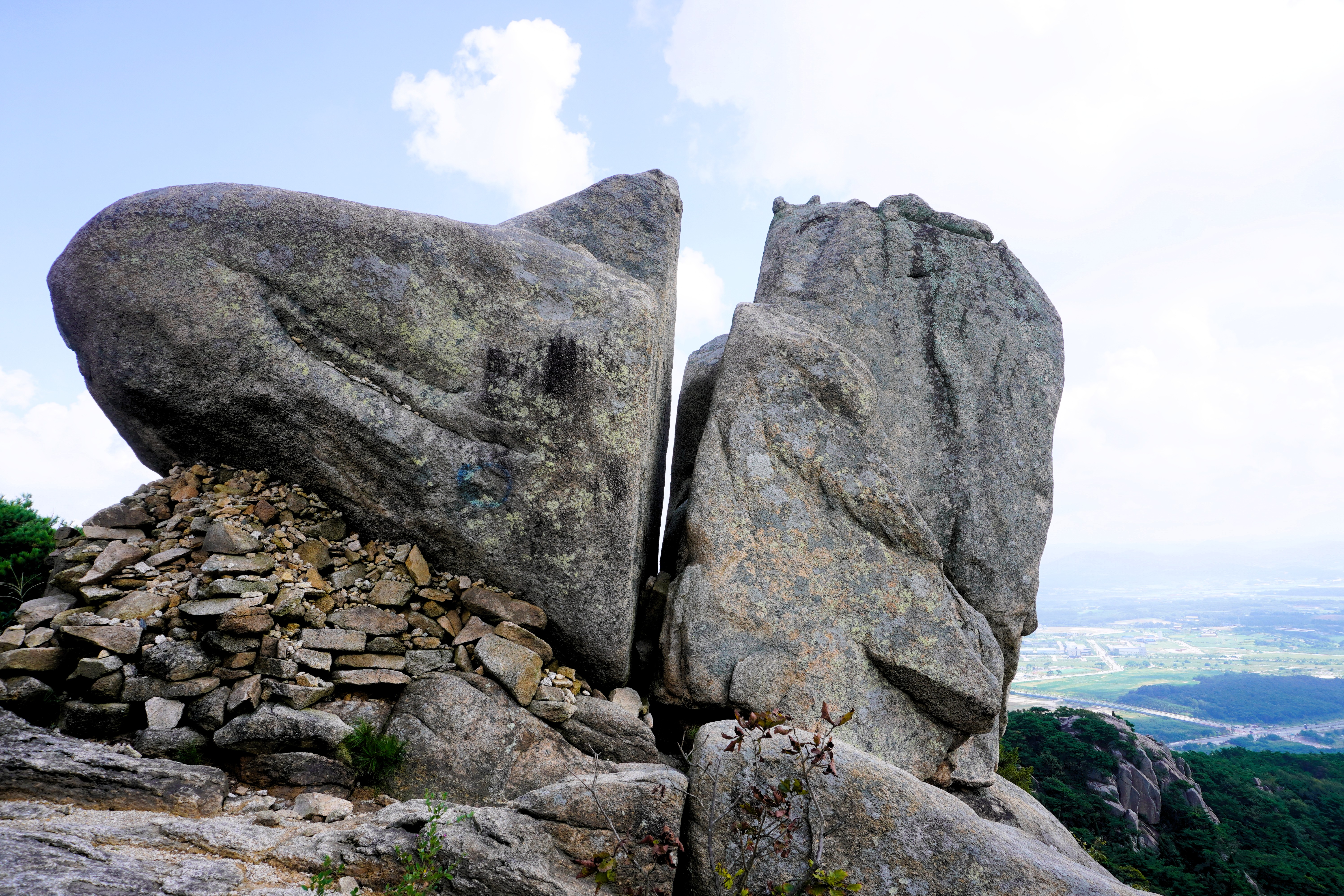 다시 악귀봉으로 오르니 노적봉과 용봉산이 가깝게 보였다. 대부분 우리나라의 노적봉은 볏짚단을 쌓아둔 형태던데... 여기 노적봉은 말 그대로 뭔 알갱이를 쌓은 것 같네...?
