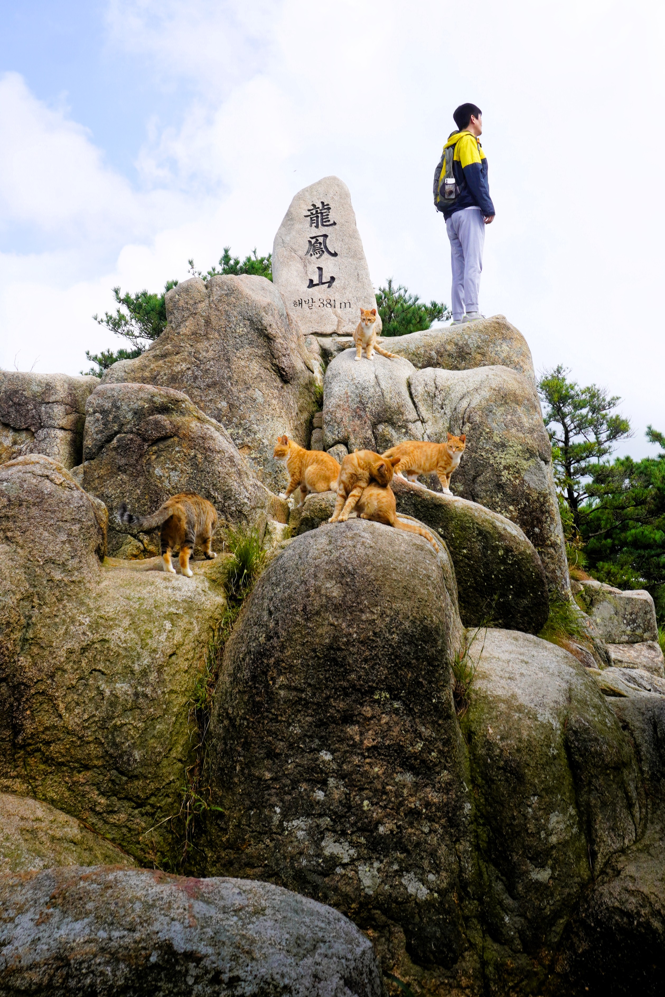 12시 15분. 용봉산 정상석 앞에 섰다. 그런데... 이 고양이들은 이곳에서 집단 서식 중인가?