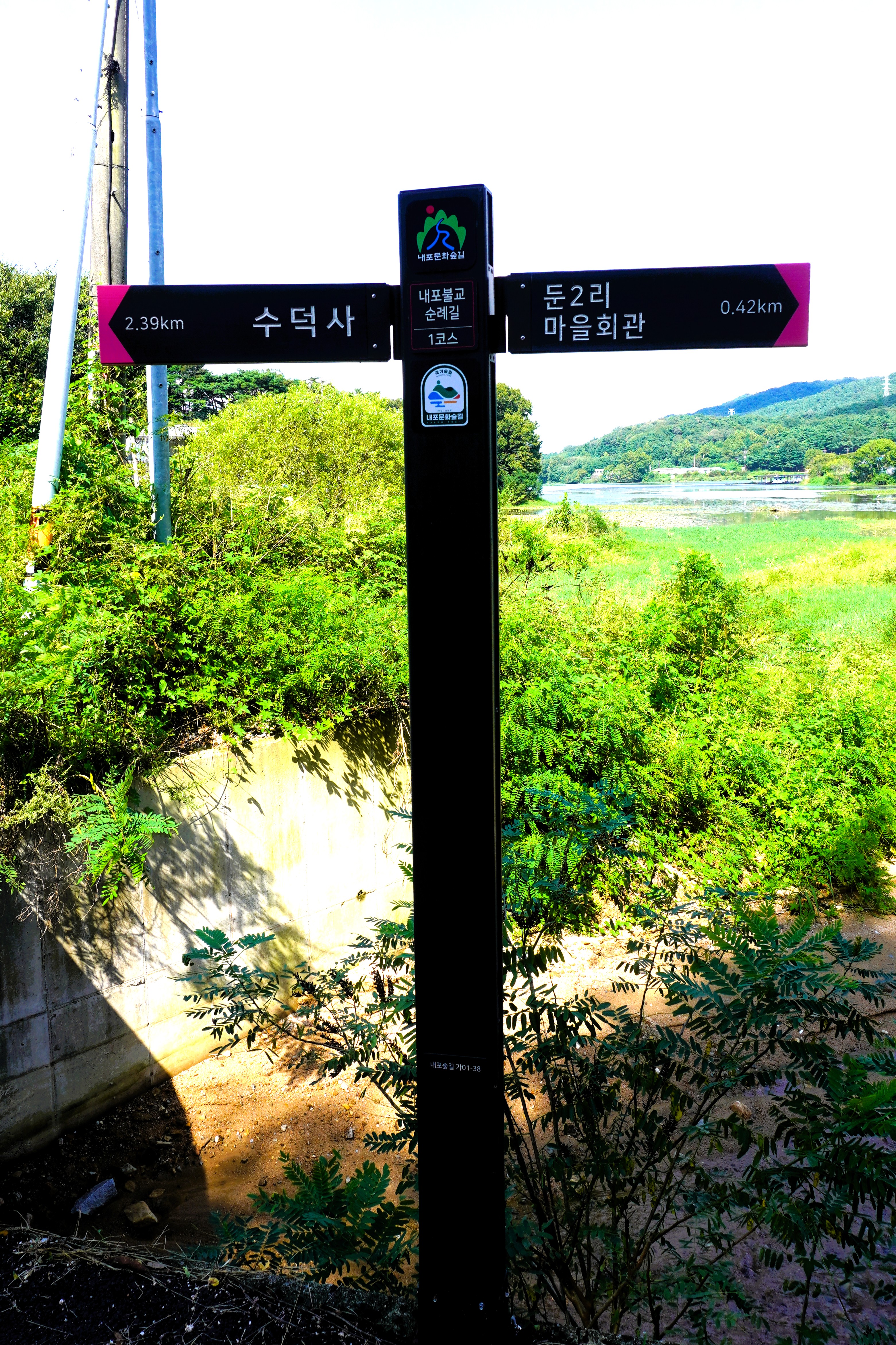 풀어내어... 갈림길이 나와도 둔리 저수지를 오른쪽에 끼고 아스팔트 길을 따라 걸으면