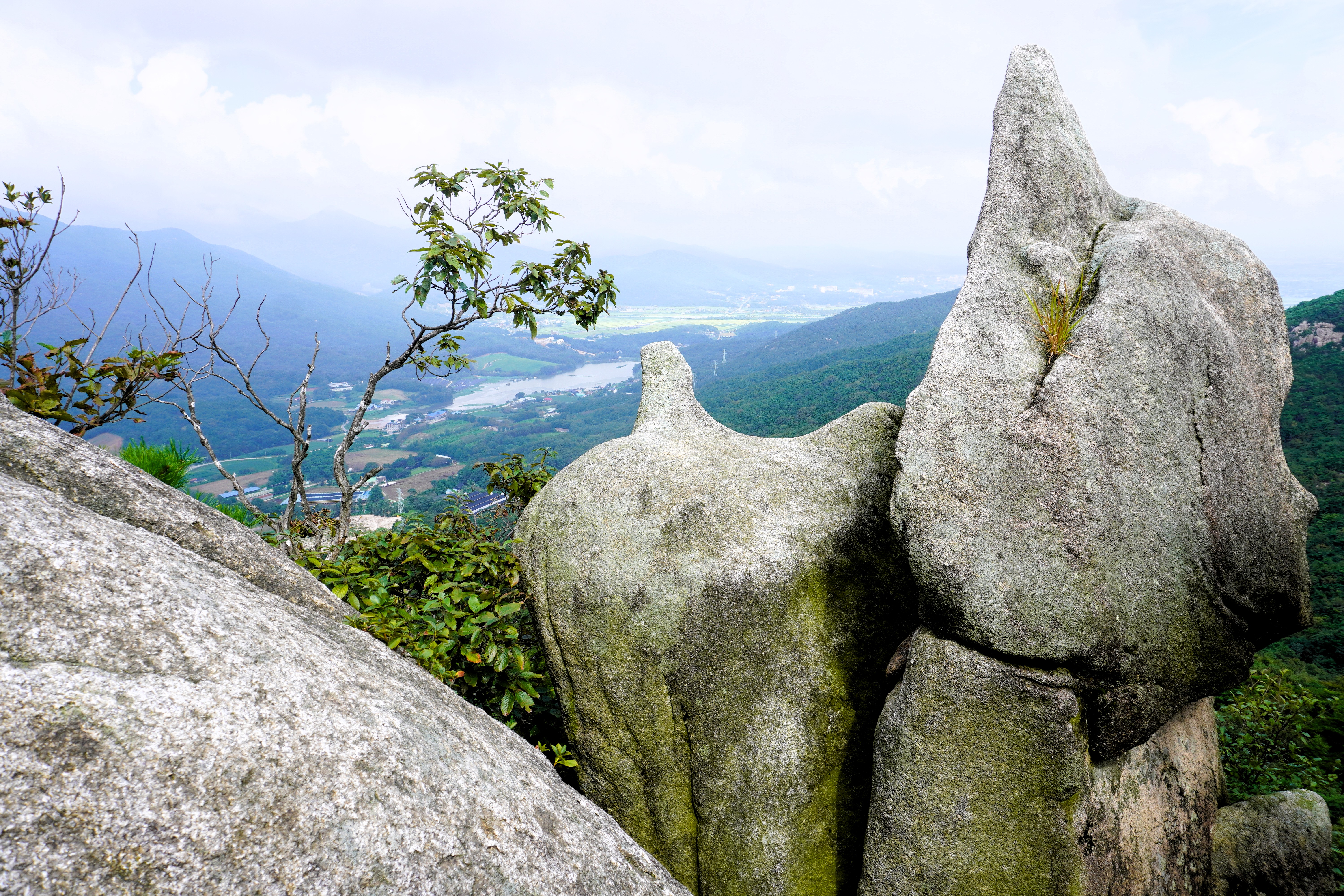 친구 재에게 정상 사진 하나 보내고... 하산을 시작했다. 덕이 깊은 사찰이 있는 곳이어선지 어째 보이는 바위들 모습도 예사롭지 않군.