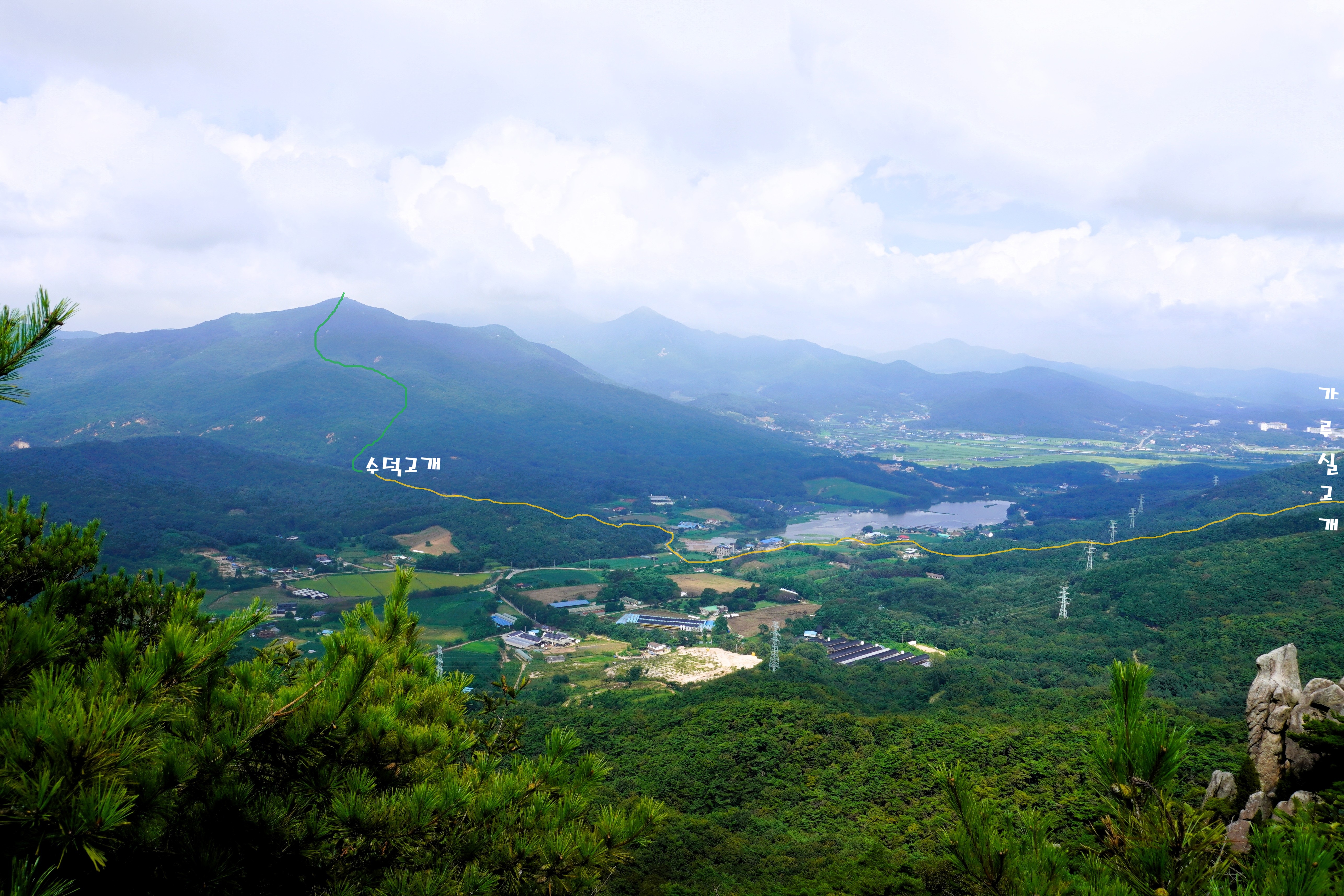 결코 다듬어지지 않은 길을 거미줄을 헤치며 수덕고개부터 걸어 오르길 대략 1시간 정도.