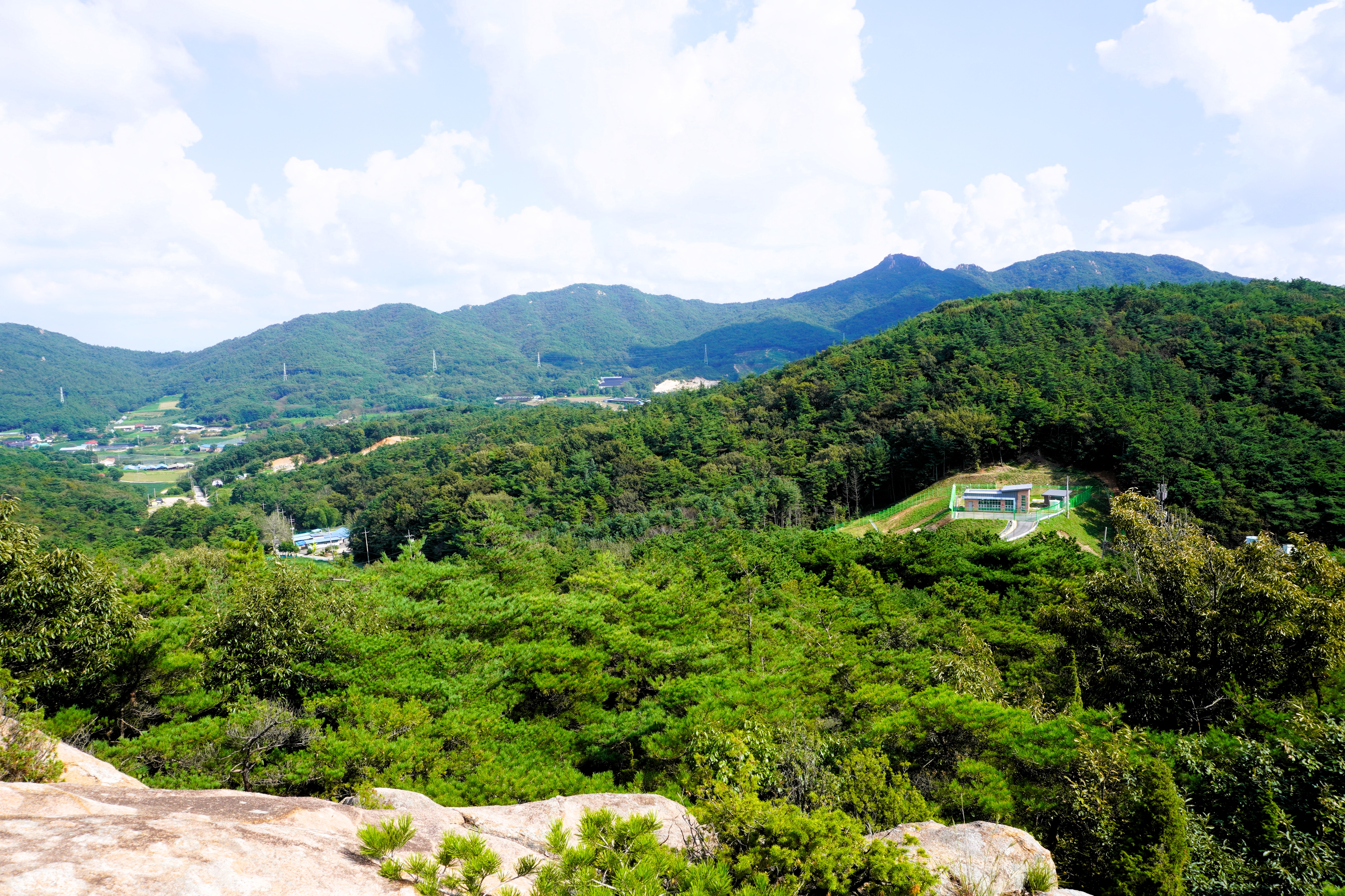 그분들처럼 지나온 용봉산을 보고 지금까지 걸어온 길을 짚어 요 아래 건물이 있는 수덕고개에 방점을 놓았다.