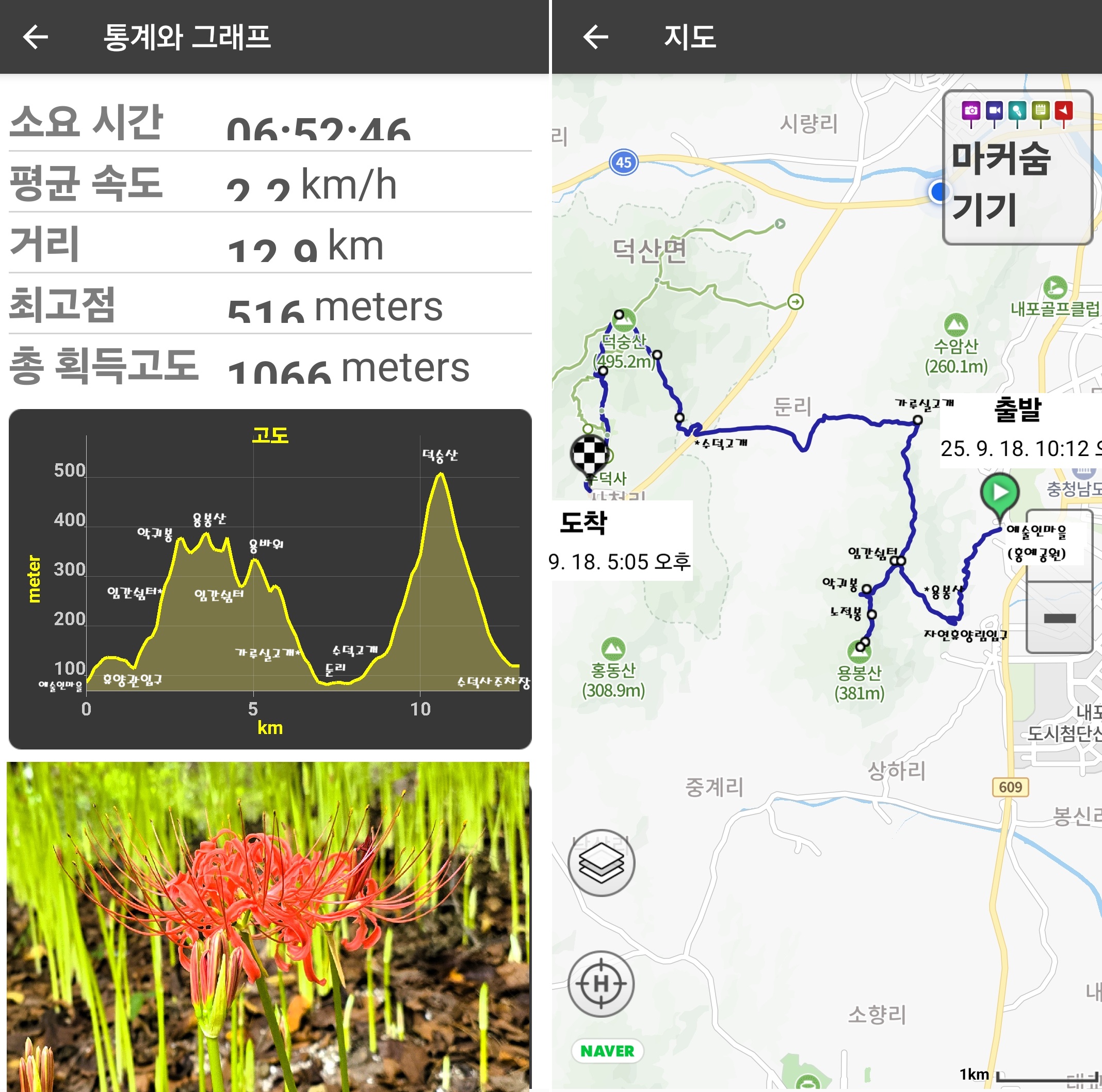 스스로 스틱을 들고 사찰을 나서고 있는데... 꽃무릇들이 마치 나에게 잘하고 있다는 응원을 보내는 것만 같아