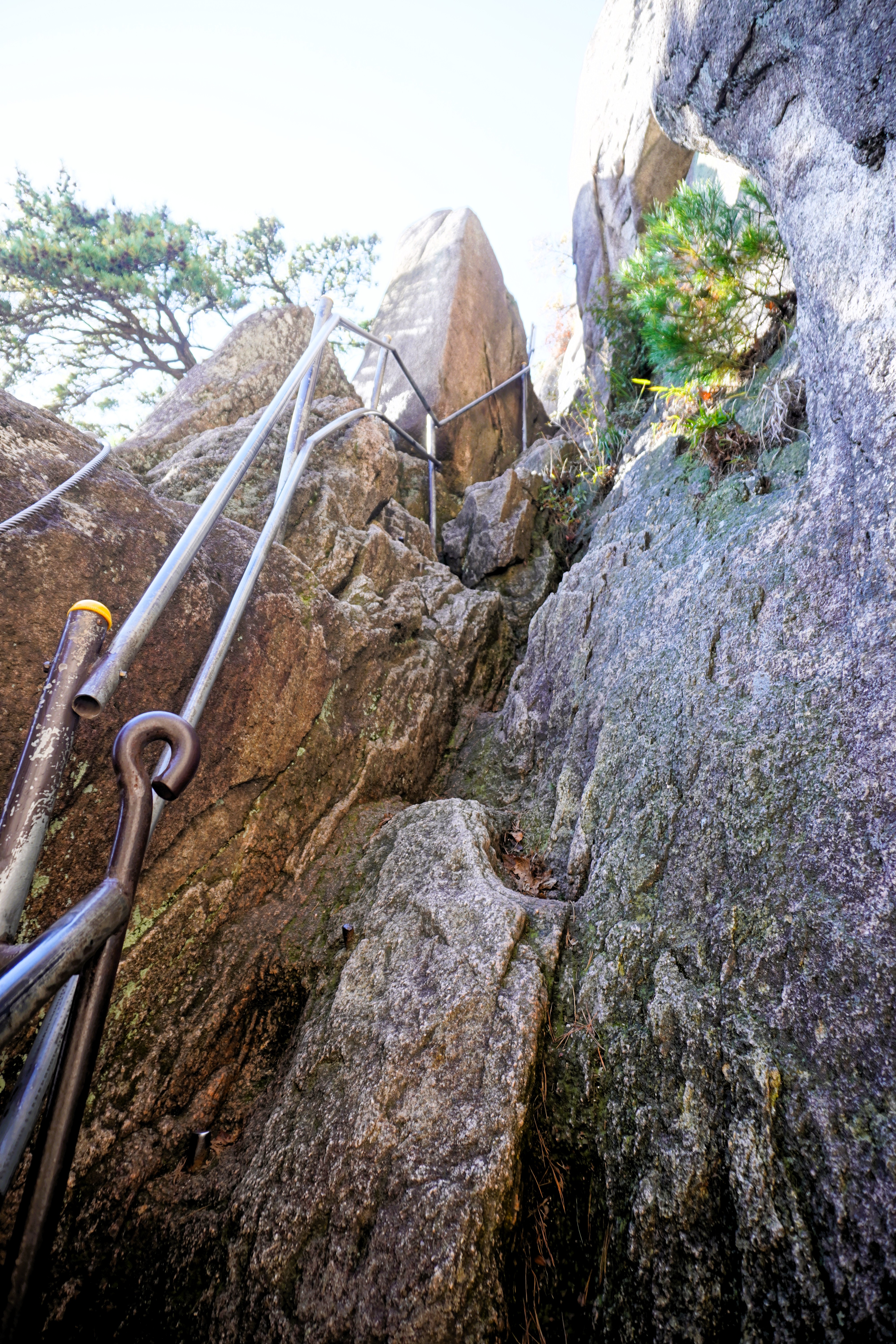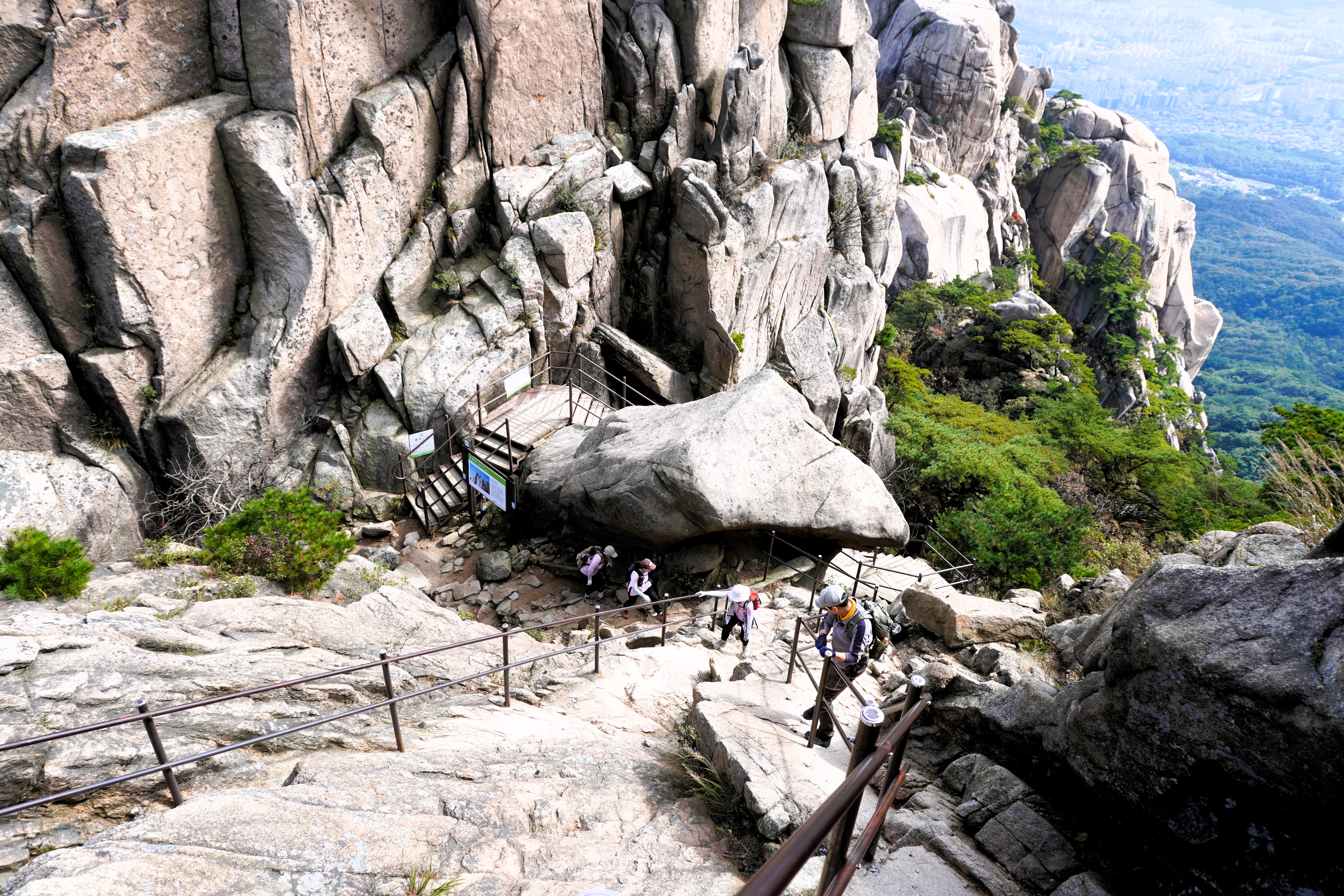 두 번째 구간도 역시 손은 가볍게 줄을 잡고 무엇보다도 발은 안전하게 디뎌서 힘을 쏟아내 올라섰다. 그리고 루틴처럼 뒤돌아 보면서 멋진 경치 감상하기. 그런데... 좀 더 오르니