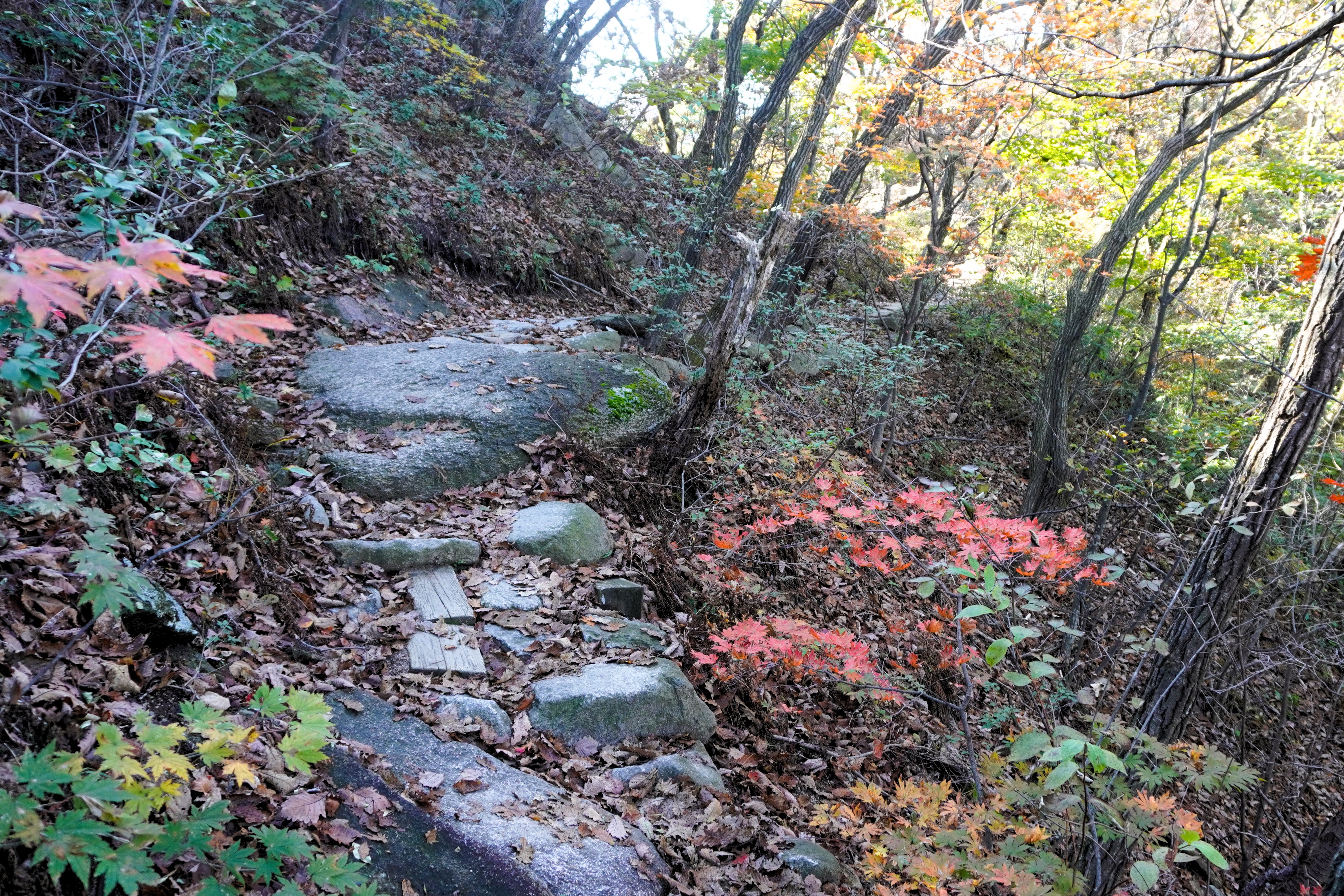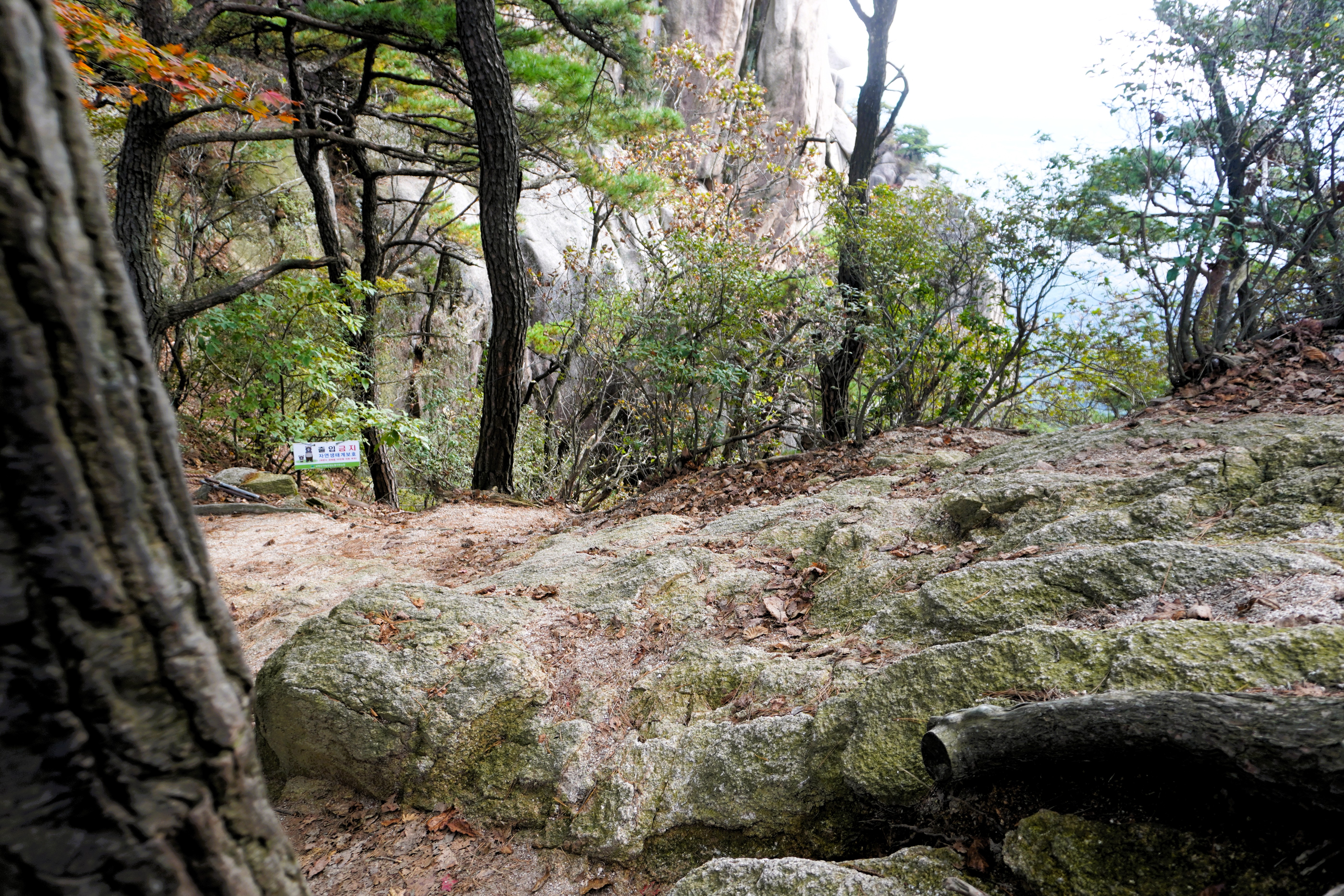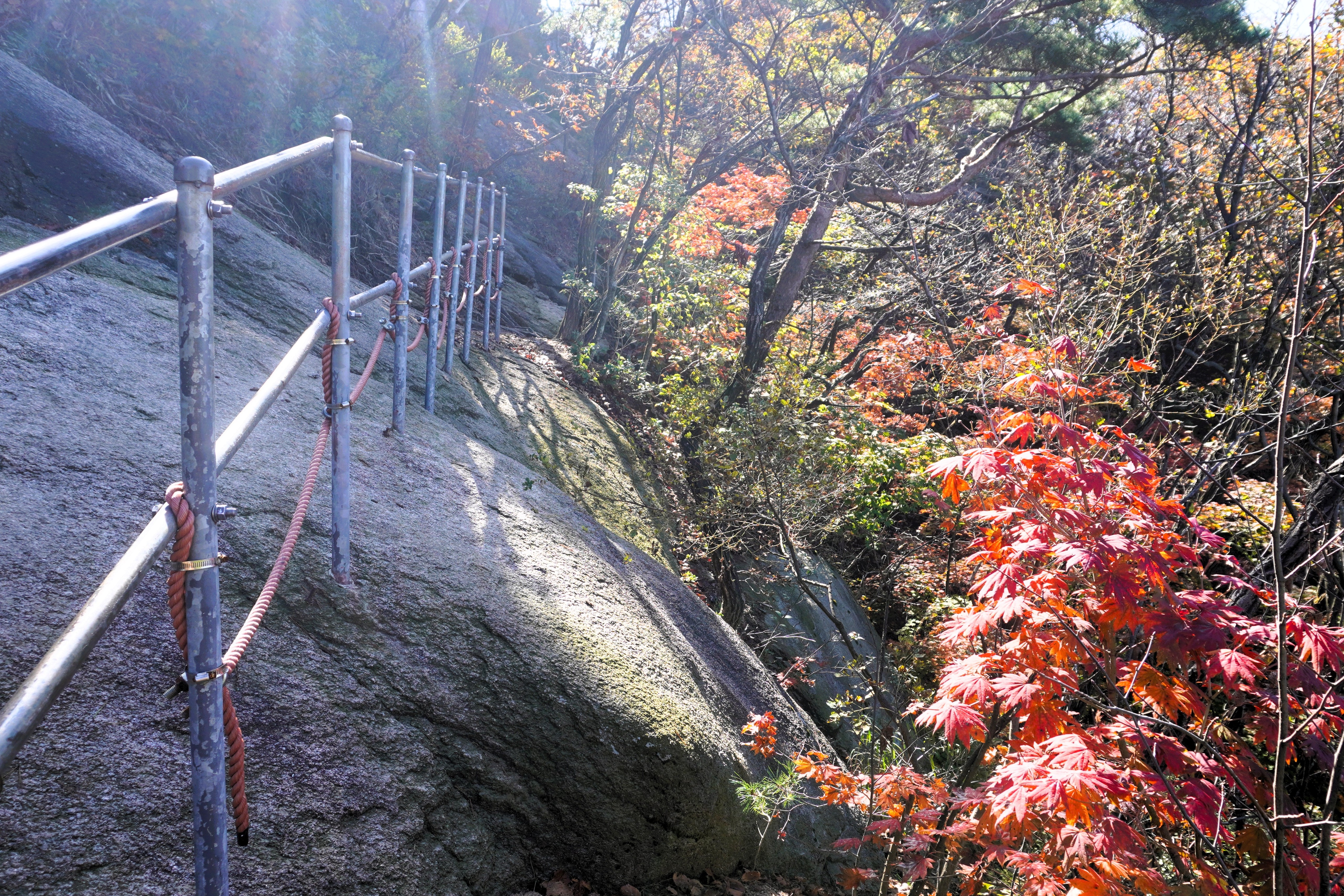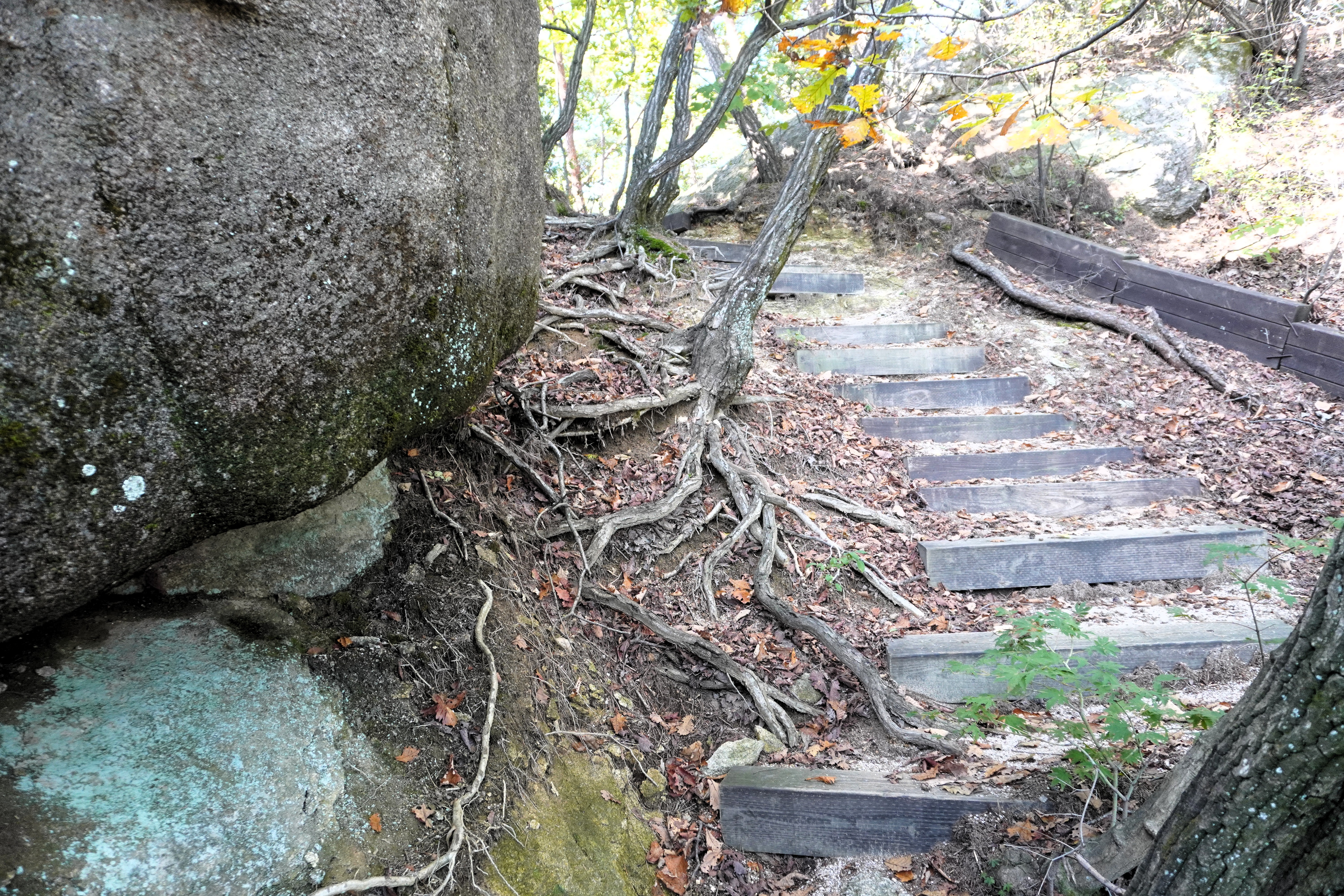 하산을 다시 시작했다. 아마도 조금 더 늦게 왔어야 화려한 단풍을 볼 수 있을 듯...?