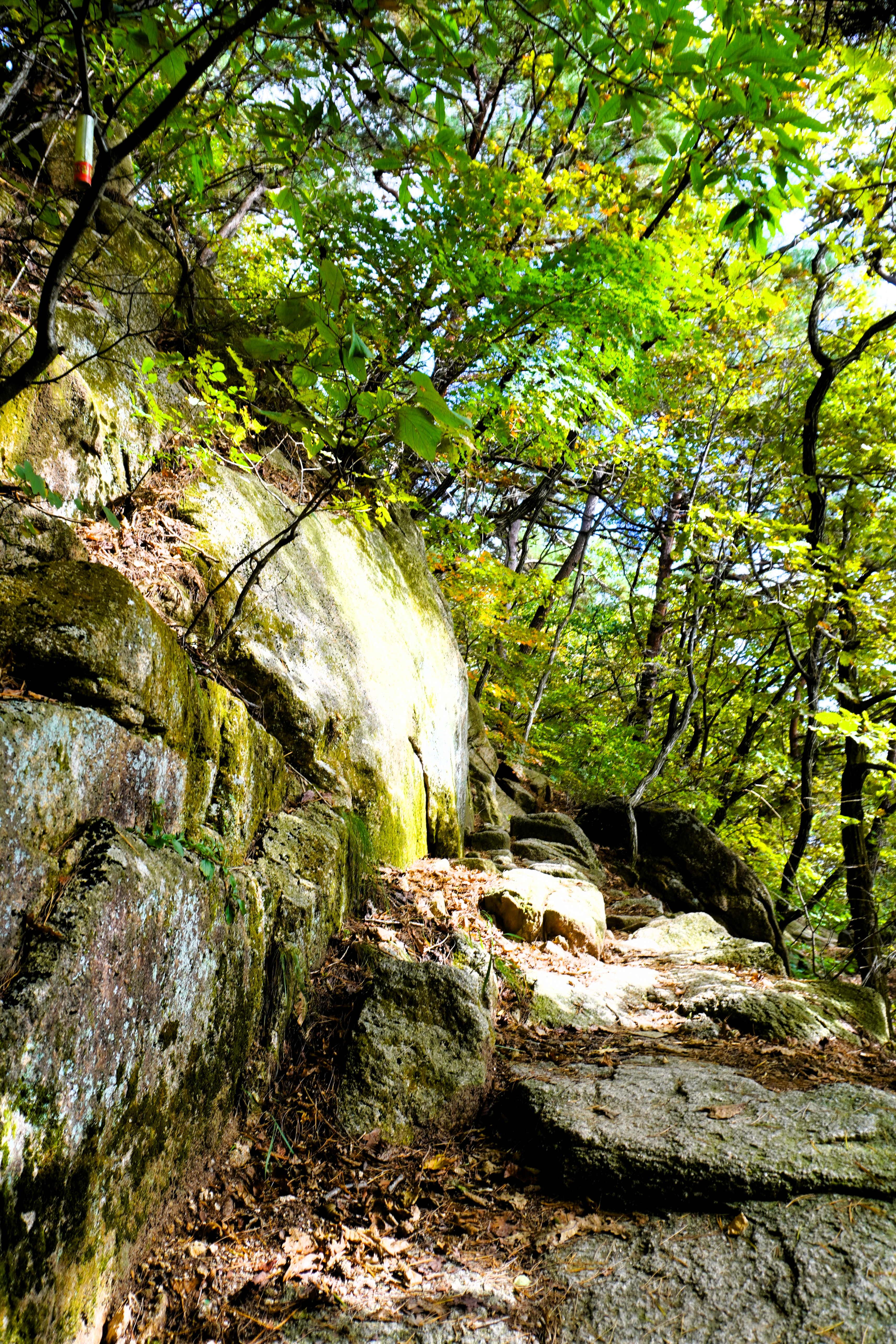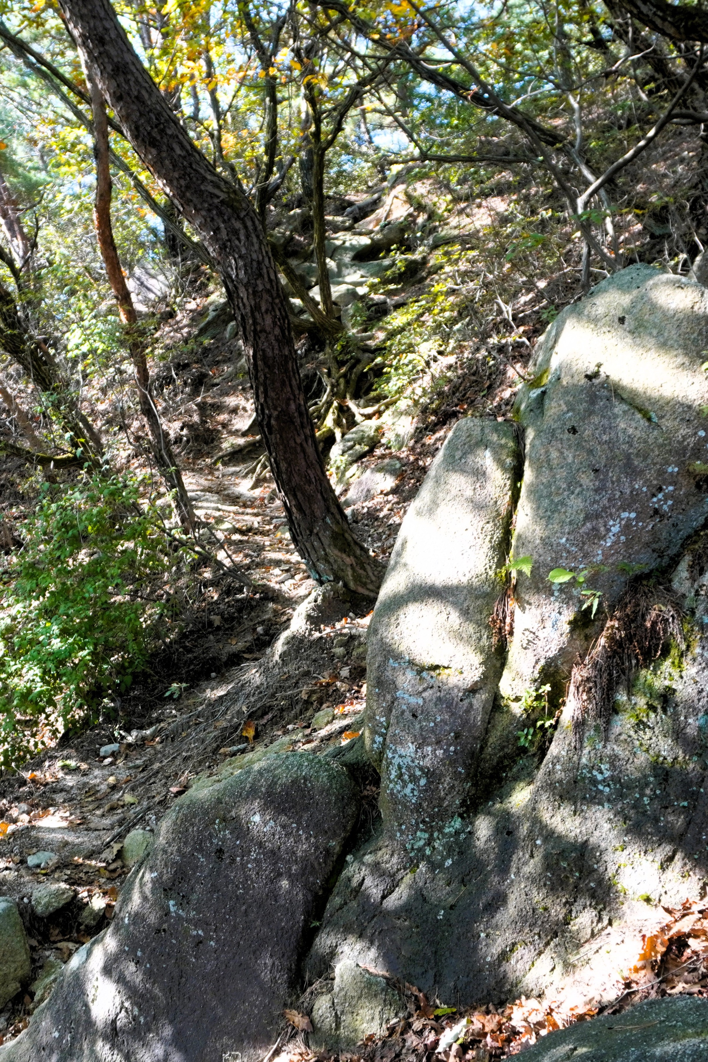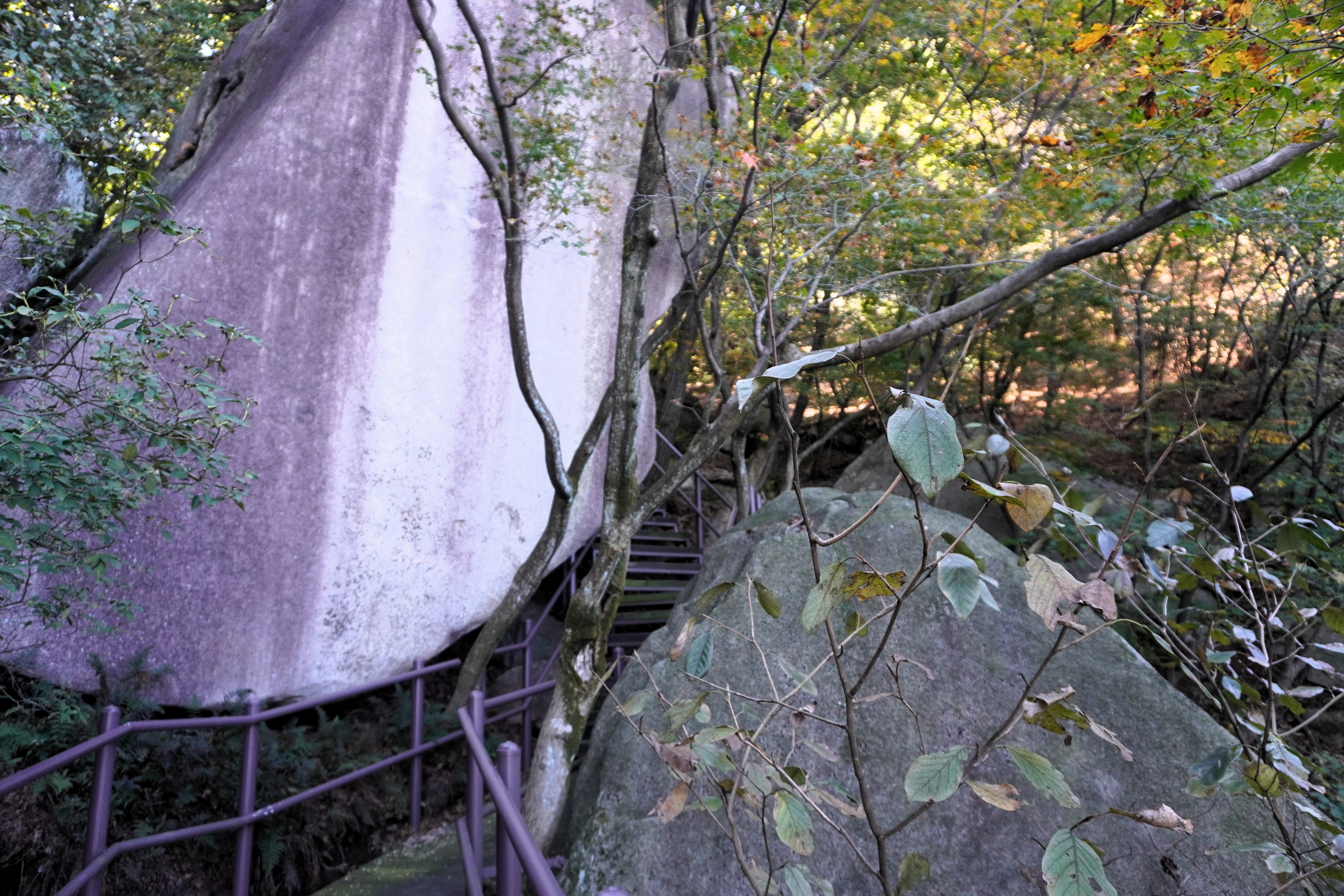 하산을 다시 시작했다. 아마도 조금 더 늦게 왔어야 화려한 단풍을 볼 수 있을 듯...?