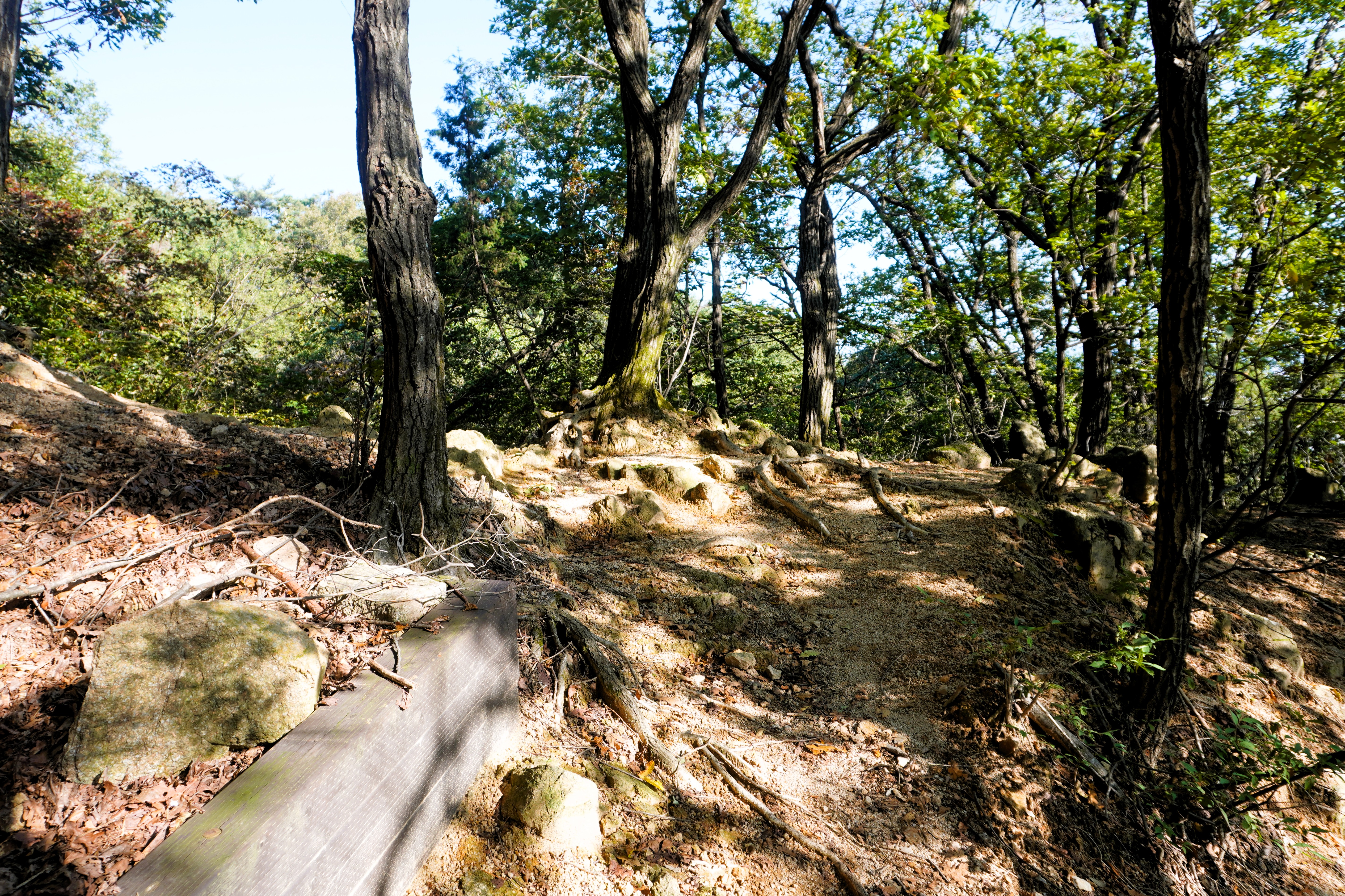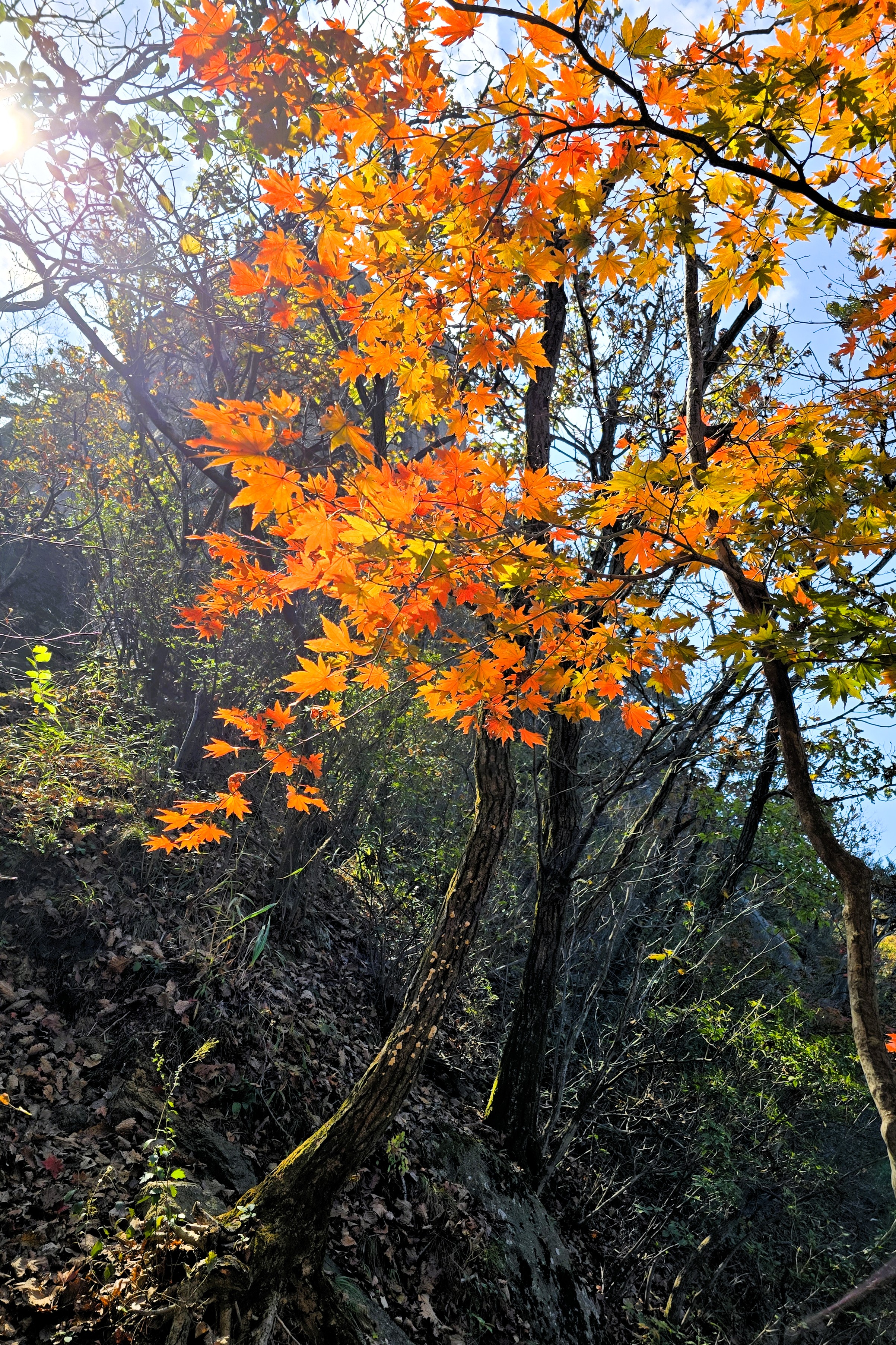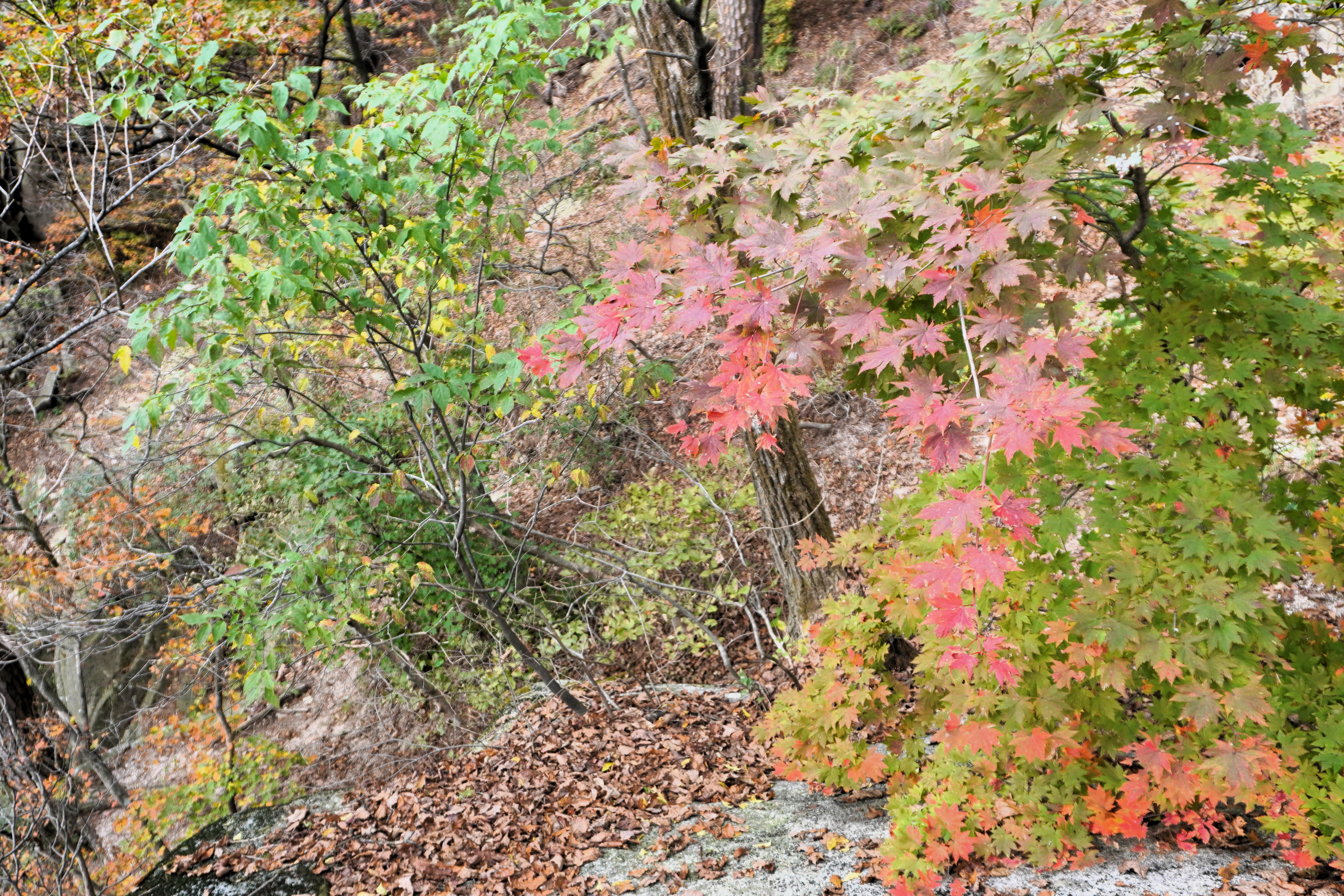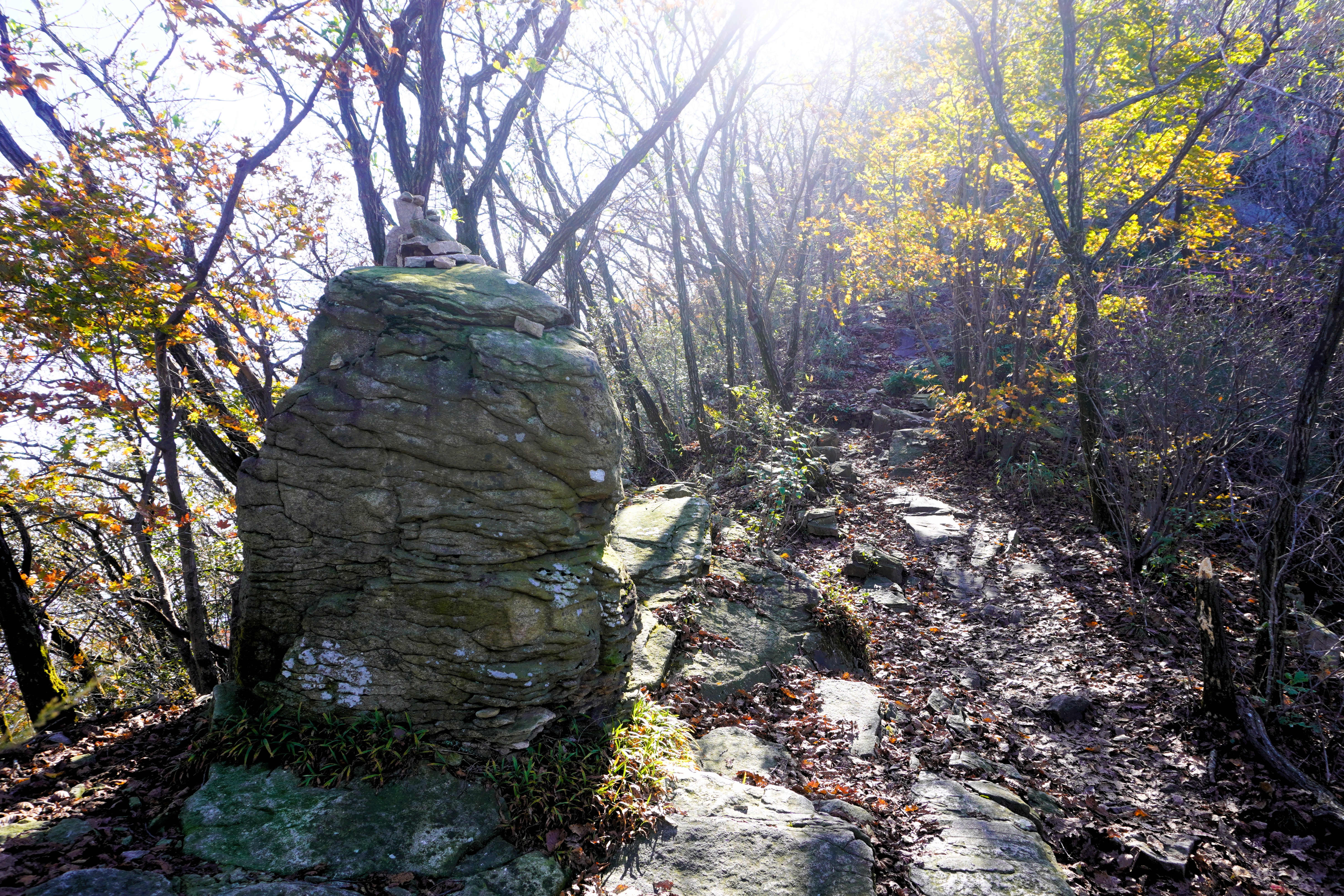 하산을 다시 시작했다. 아마도 조금 더 늦게 왔어야 화려한 단풍을 볼 수 있을 듯...?