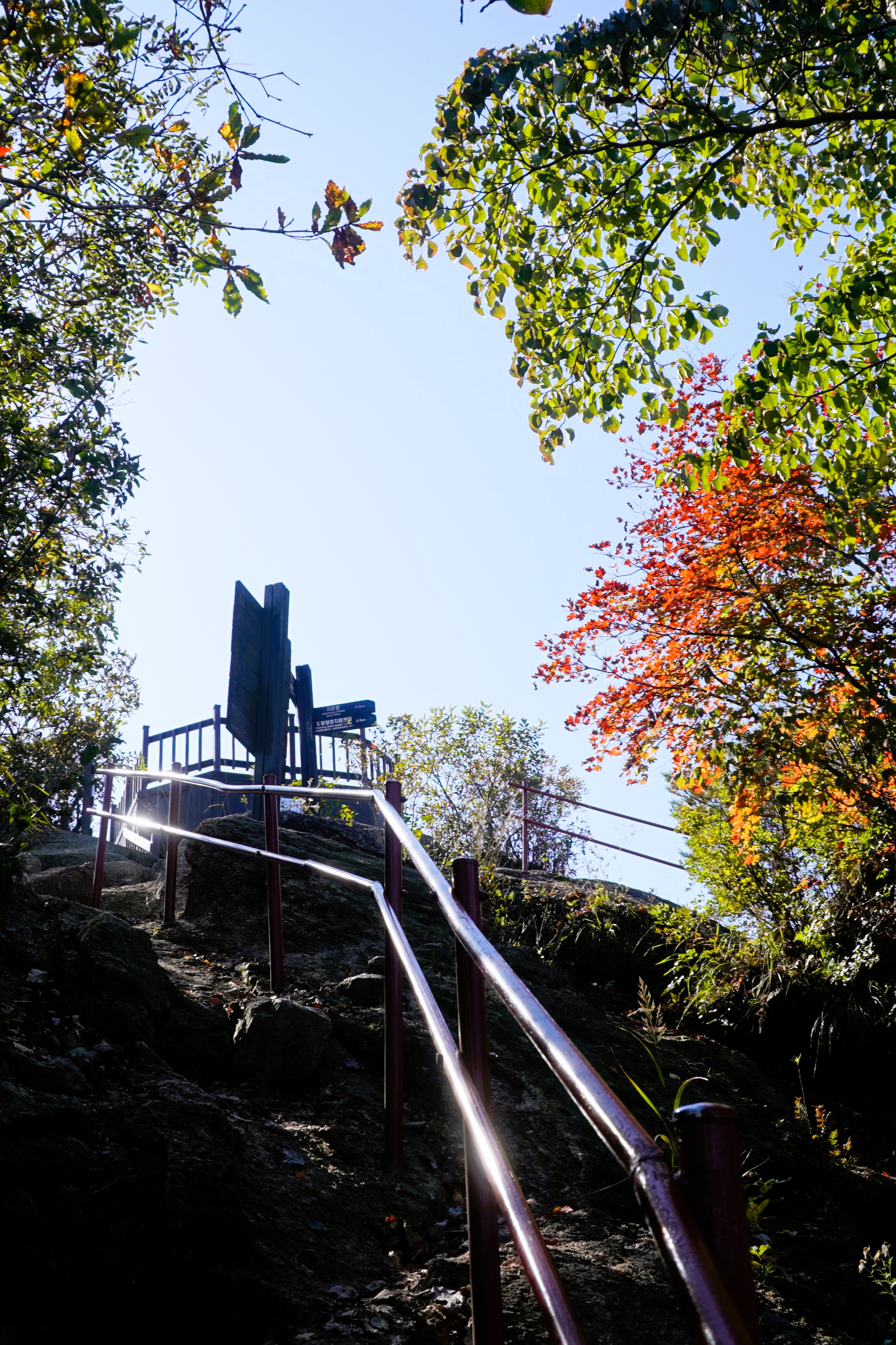 어느 정도 올라 선 것 같은데... 아직까지 선명한 단풍은 보이지 않고... 어쩌다가 이제 막 붉어지는 단풍나무가 보이기는 하는데... 그다지 만족스럽진 않다.