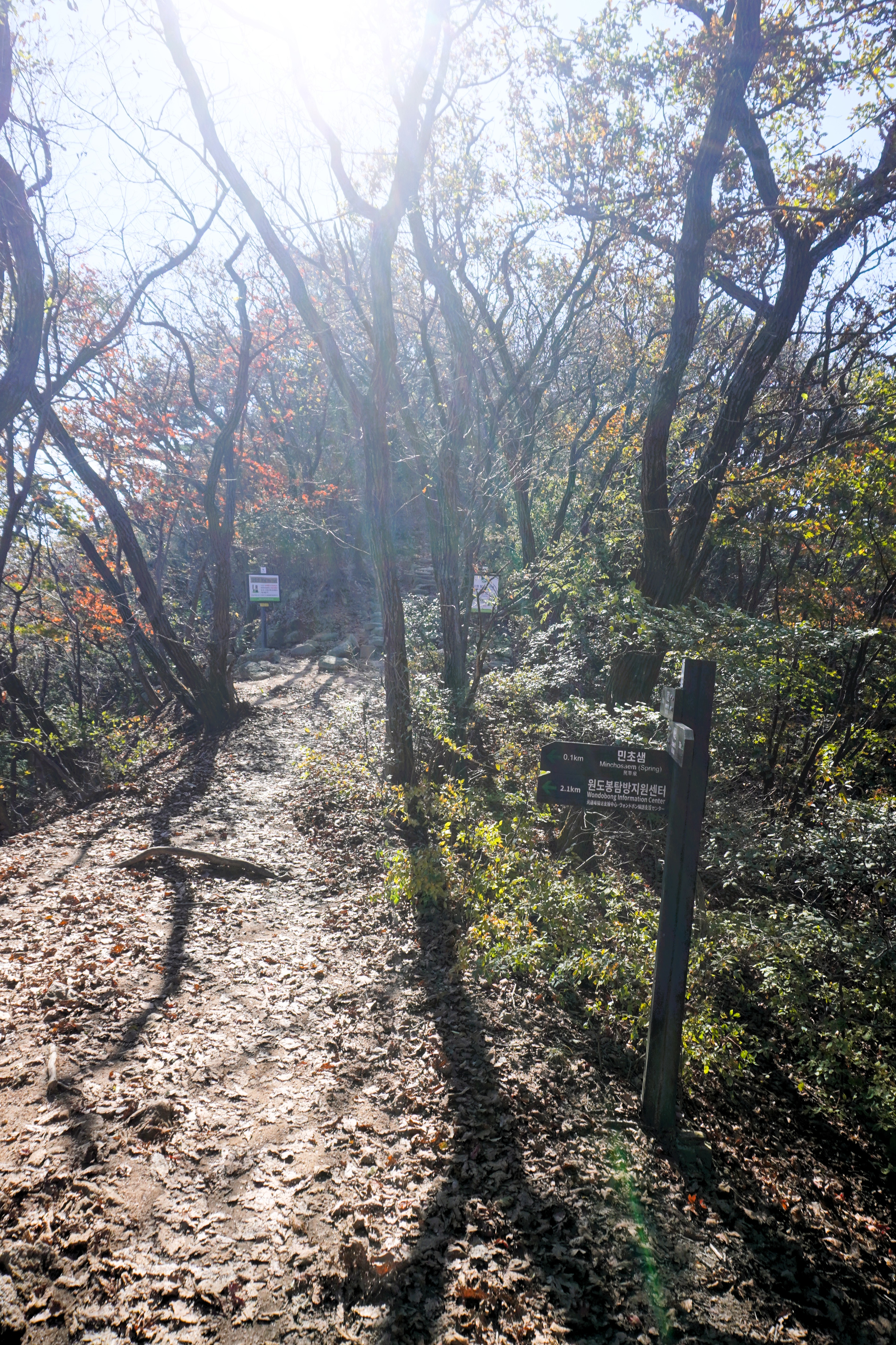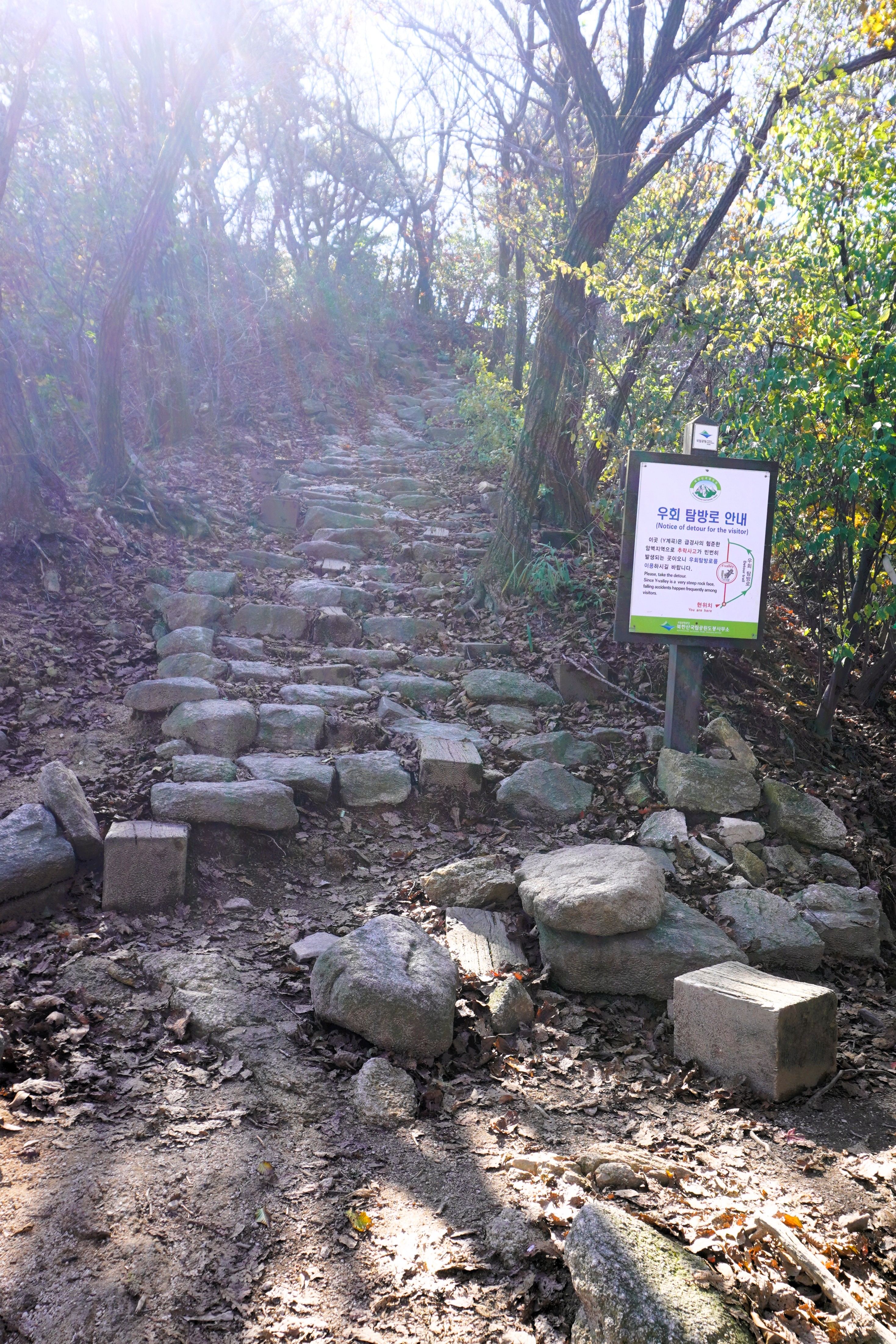 예전에 올랐던, 망월사를 거쳐 포대능선으로 가는 직진길을 버리고 오른쪽으로 난 보루길로 갈 예정이기 때문이다. 참고로 망월사로 향하는 길 도중에 있는 원도봉탐방지원센터에서도 원효사에 갈 수 있다고 한다.