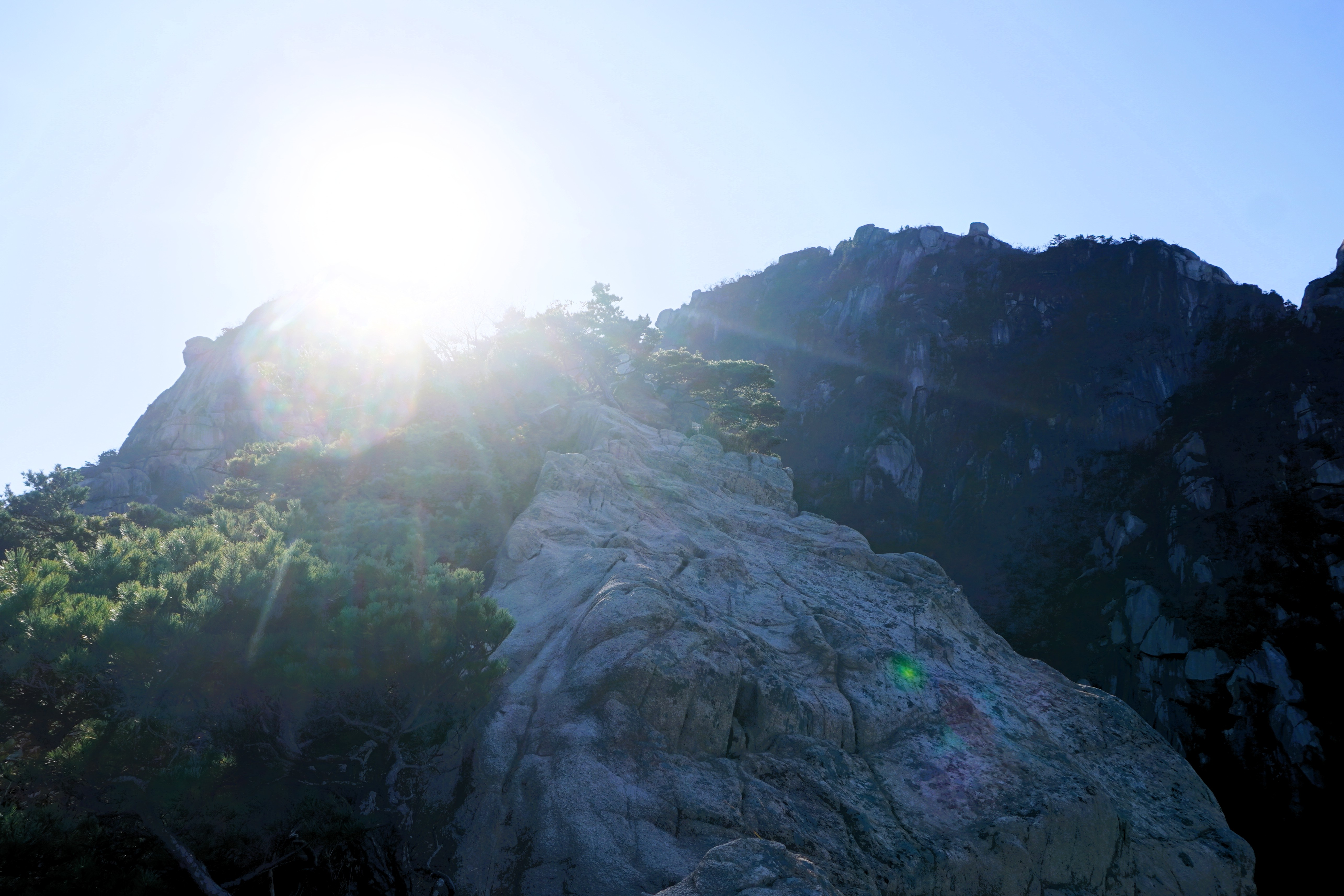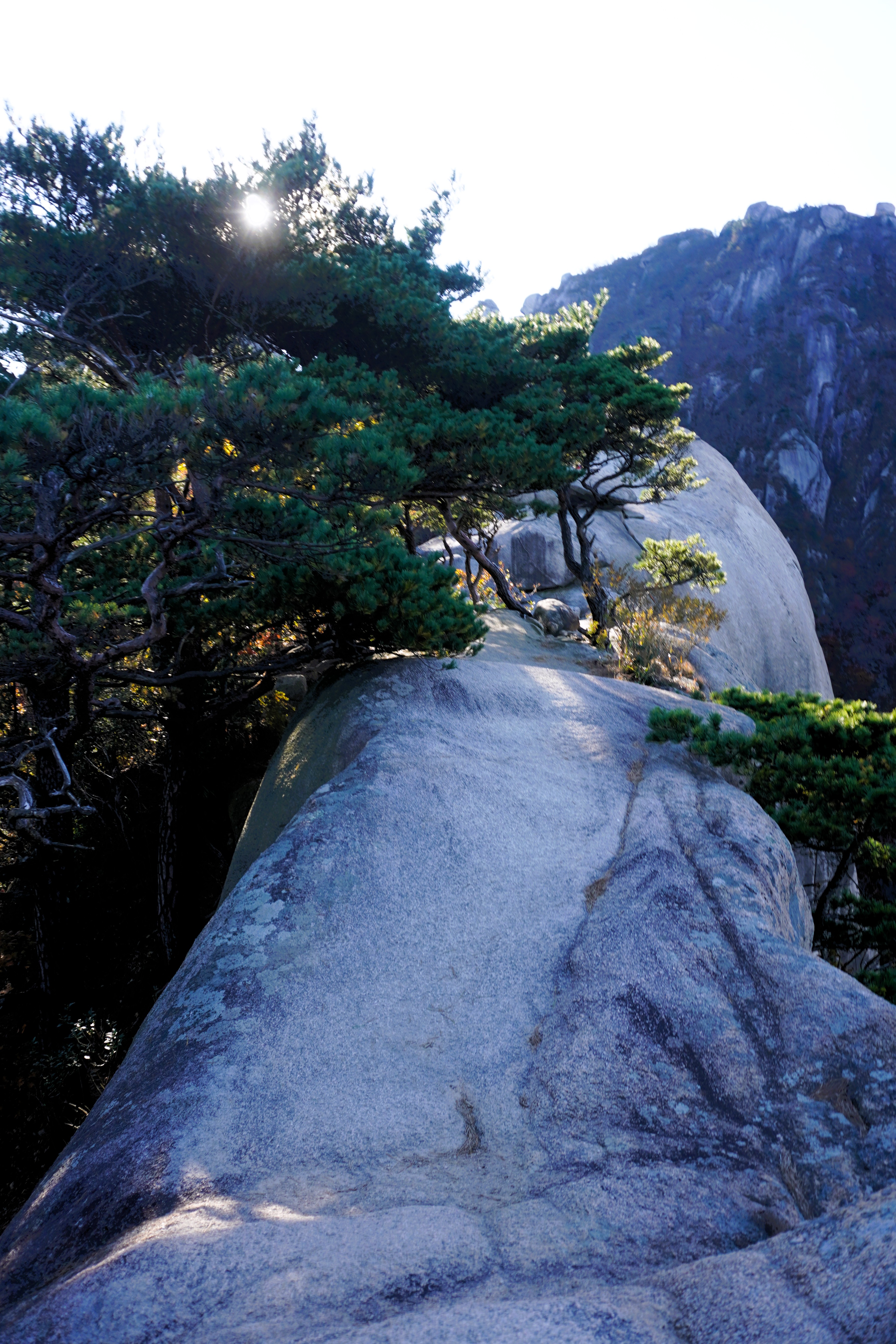 두 번째 릿지 구간을 걷기 시작했다. 우람한 바위 옆을 살짝 기대기도 하고
