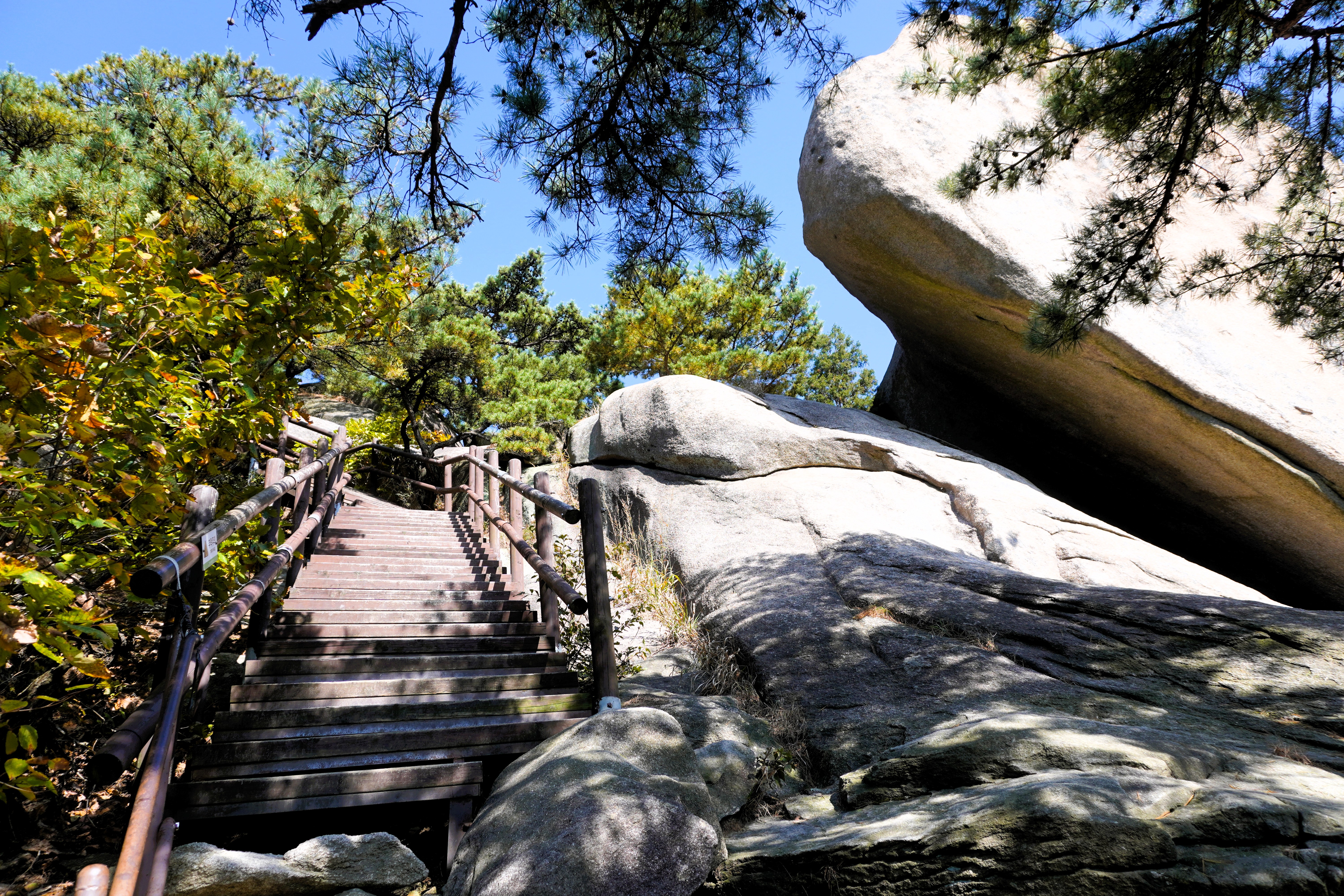 오르다 쉬고 또 오르고... 그렇게 30여 분 헉헉 거리며 오른 끝에 드디어 데크 계단에 발을 들이고 인수봉과 백운봉 사이의 좁은 문을 통과해서
