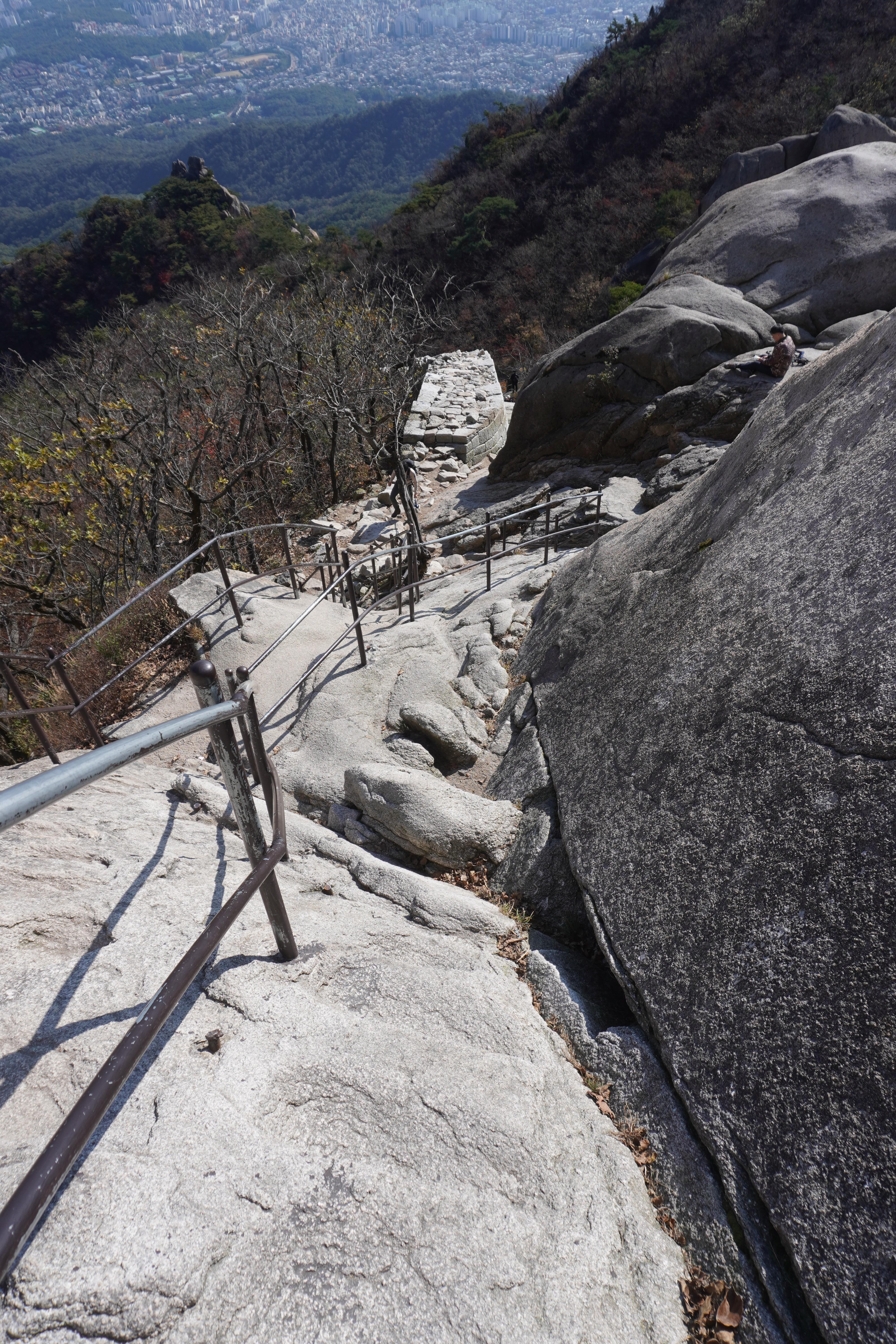 다시 하루재로 내려와서 도선사 주차장 방향으로 내려가는데... 가파른 돌길이라서 조심조심 10여 분 정도 내려가