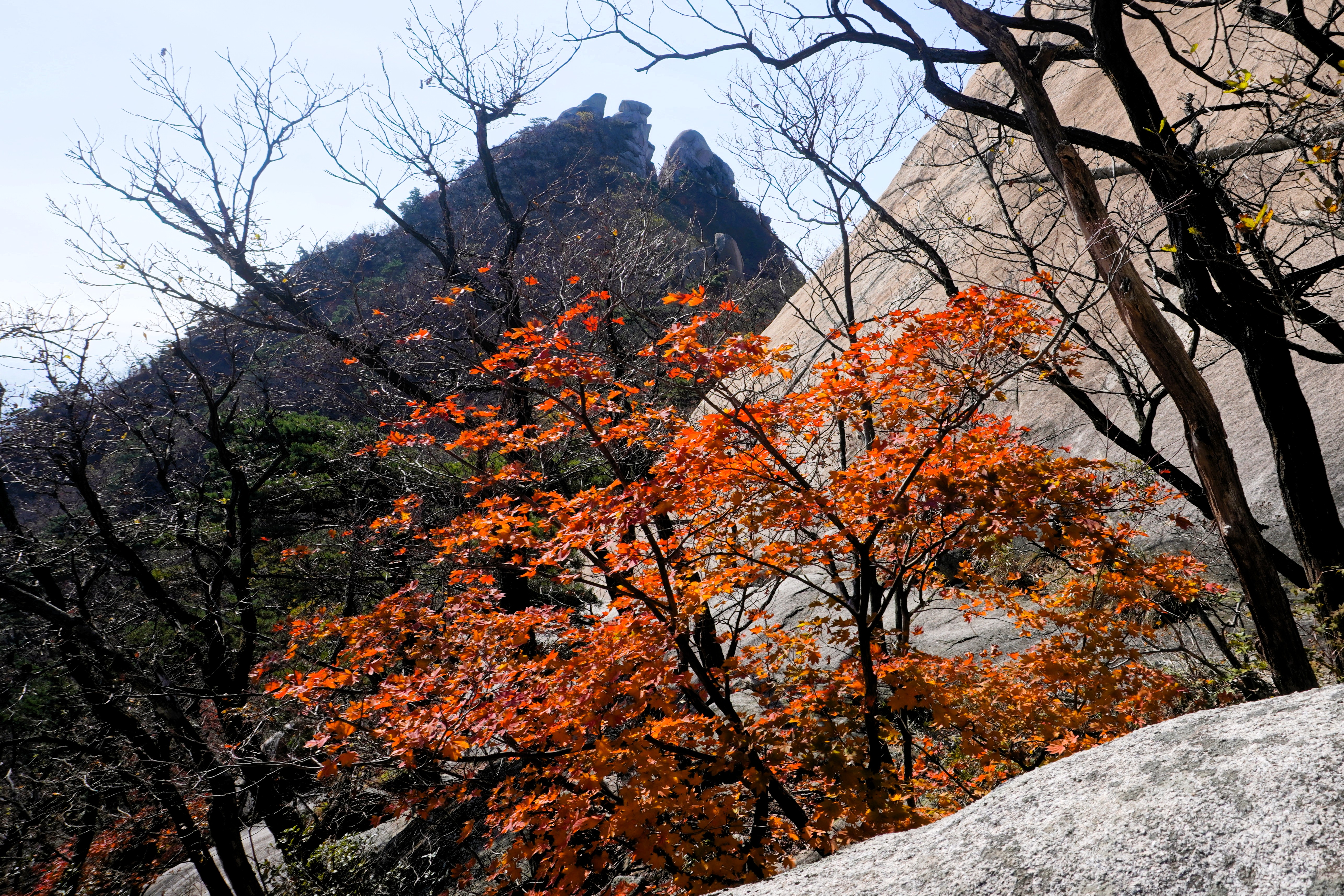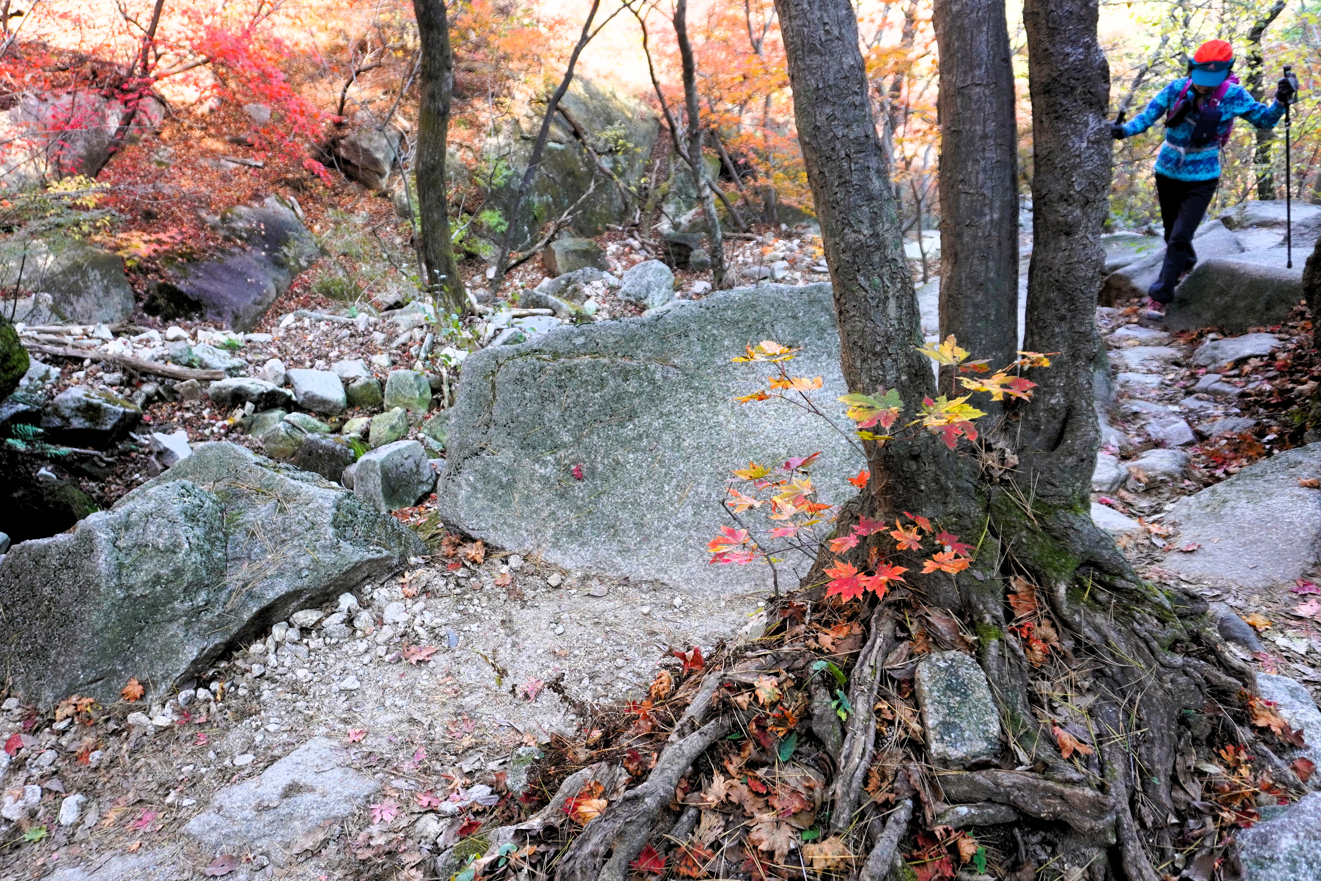 마당바위로 향하는데... 단풍철 이곳을 지날 때마다 매번 화사한 단풍을 보여줬던 길이다. 올해도 역시 멋진 단풍을 보여주기는 하는데... 어쩌다 두세 그루가 보이는 정도 ㅜㅜ.