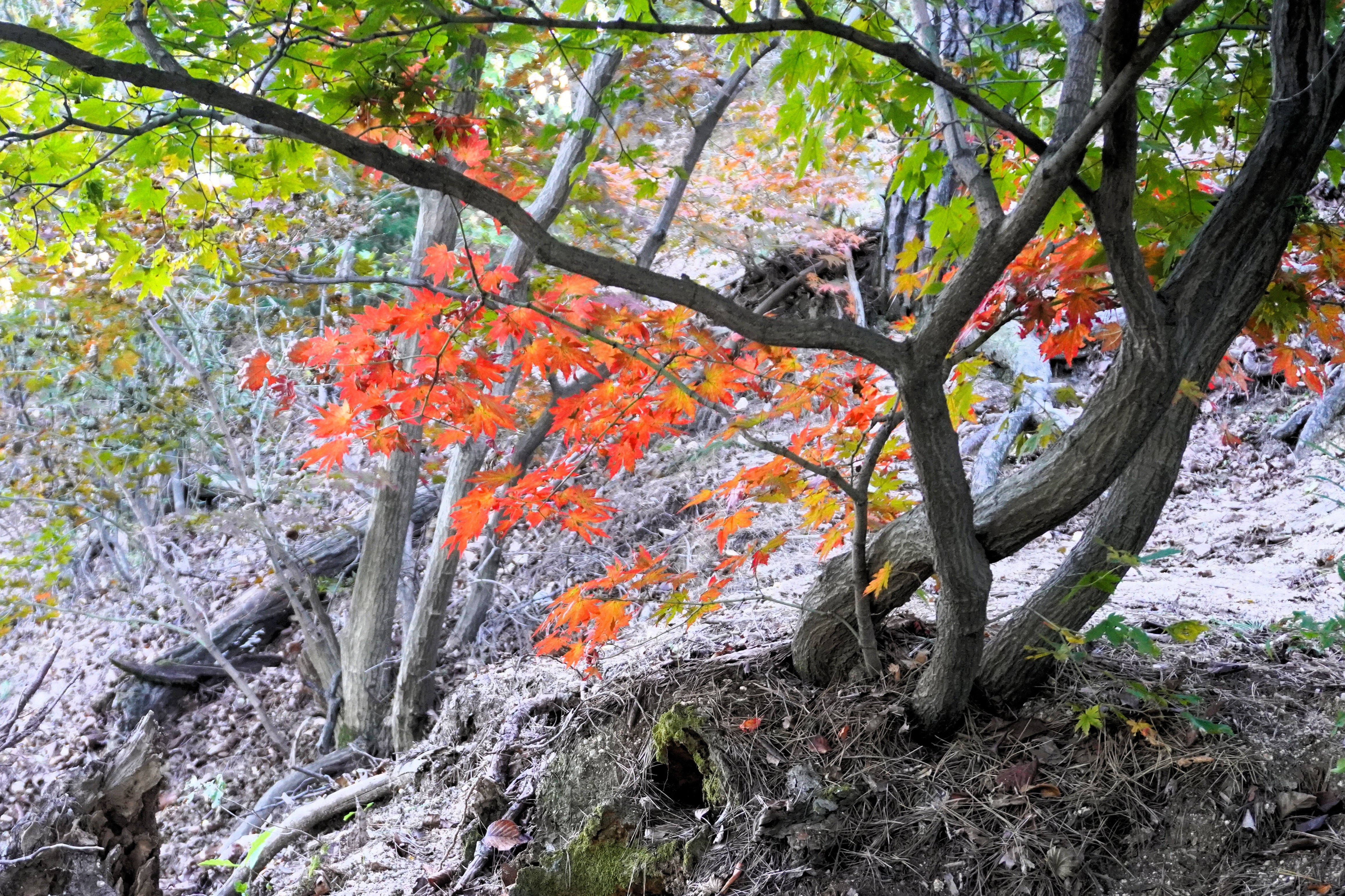 오른쪽으로 이어진 내리막길로 한 5분 정도 내려서는데... 화사한 단풍이 곳곳에 있어서 이제부터는