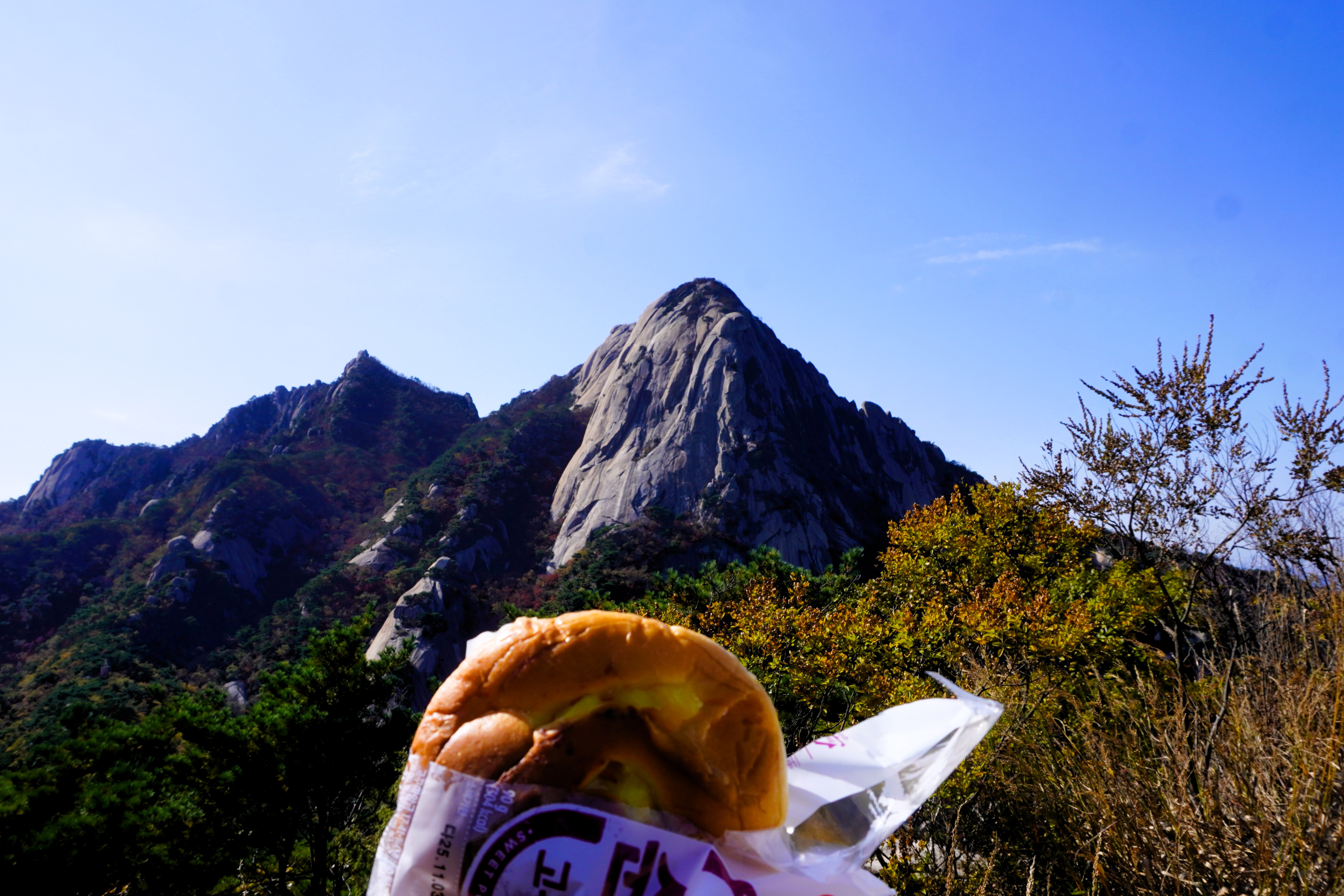 8시 42분. 인수봉, 숨은벽 그리고 백운봉이 보이는 봉우리에 올랐다. 밤골지킴터에서 대략 40분 정도 오른 것 같다. 잠시 그들을 바라본 뒤, 살짝 내려섰다가