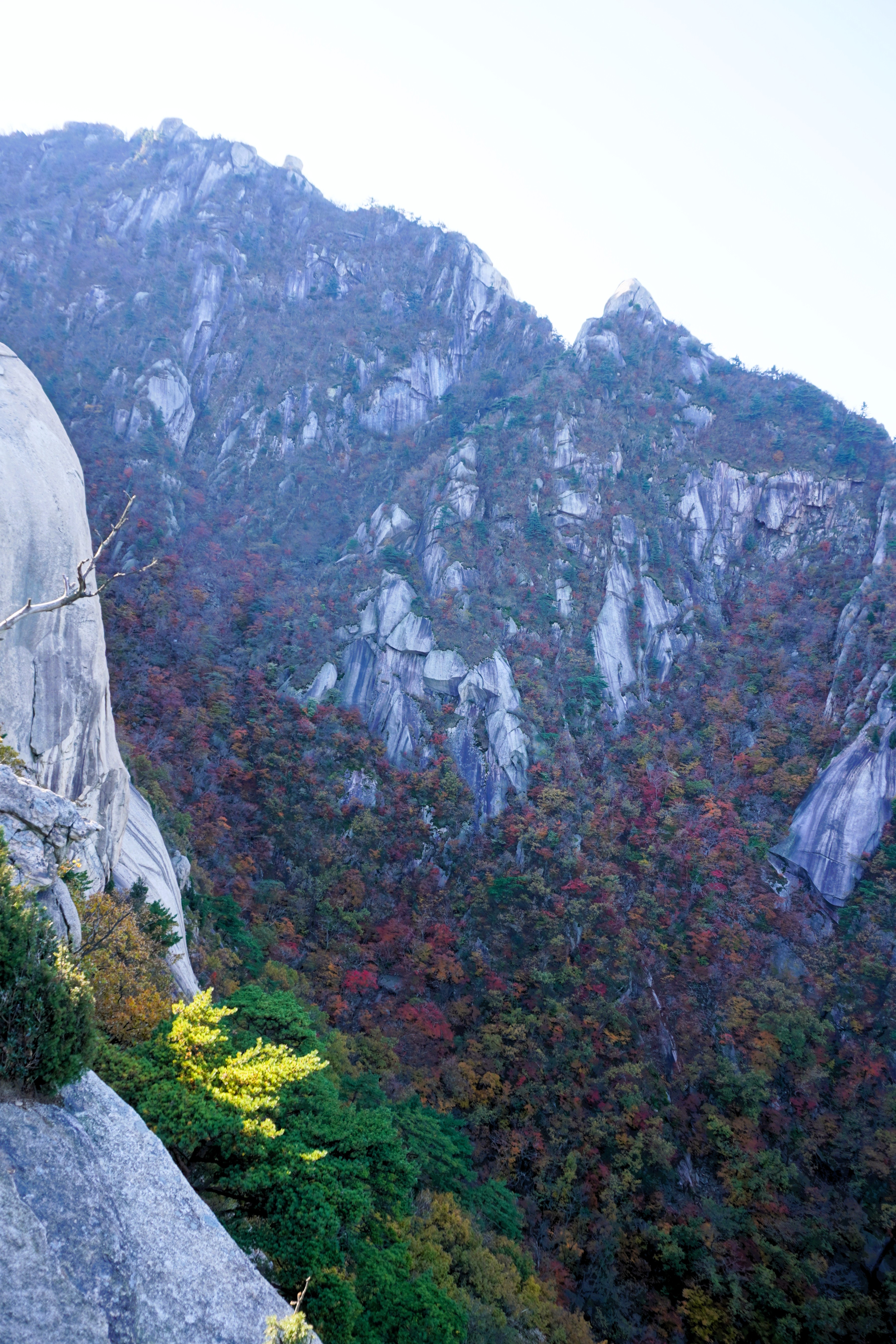 안테나봉으로 향했다. 오른쪽 협곡 건너편의 파랑새능선 아래로는 울긋불긋한 단풍이 화려해 보이는데...