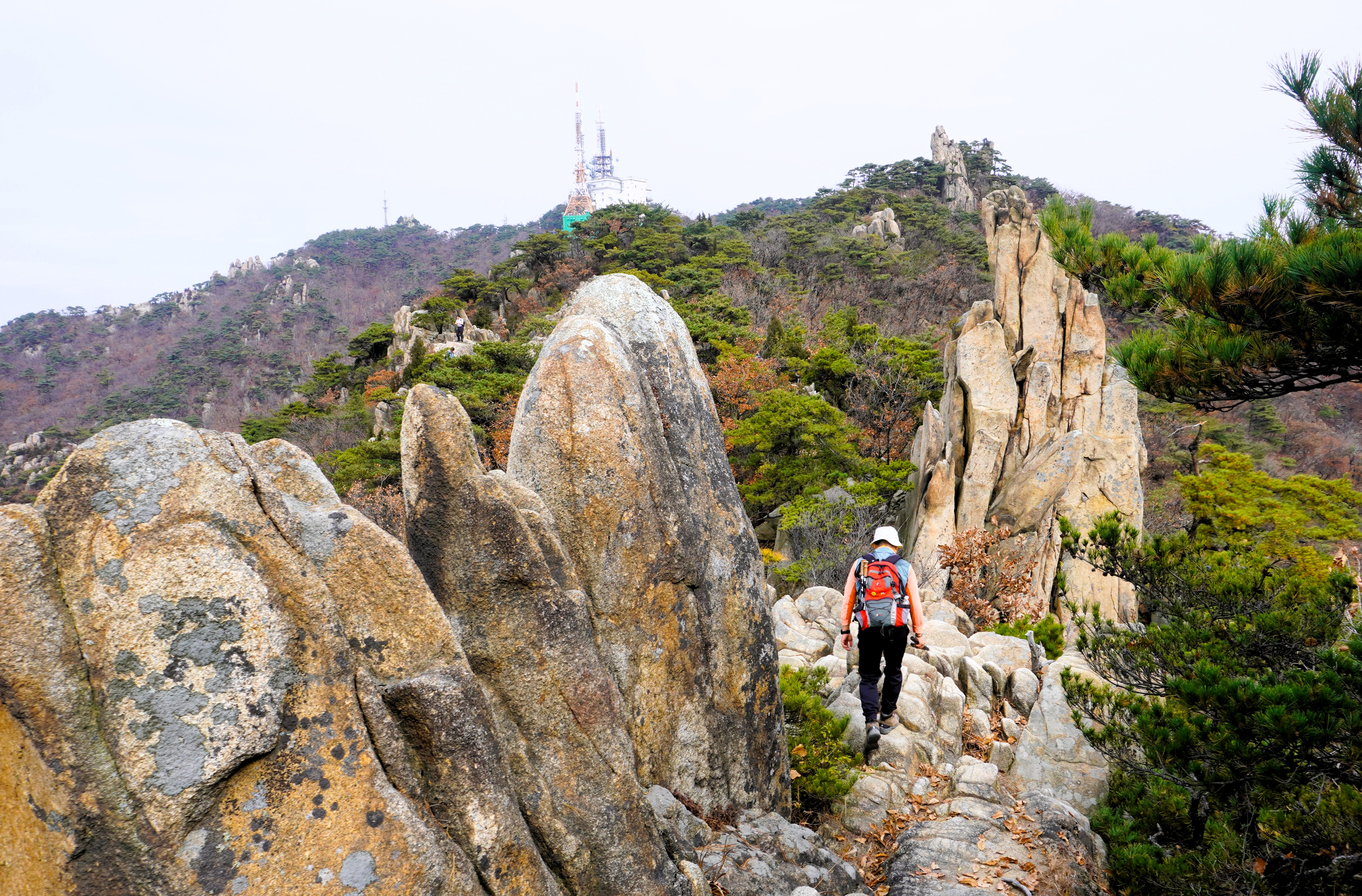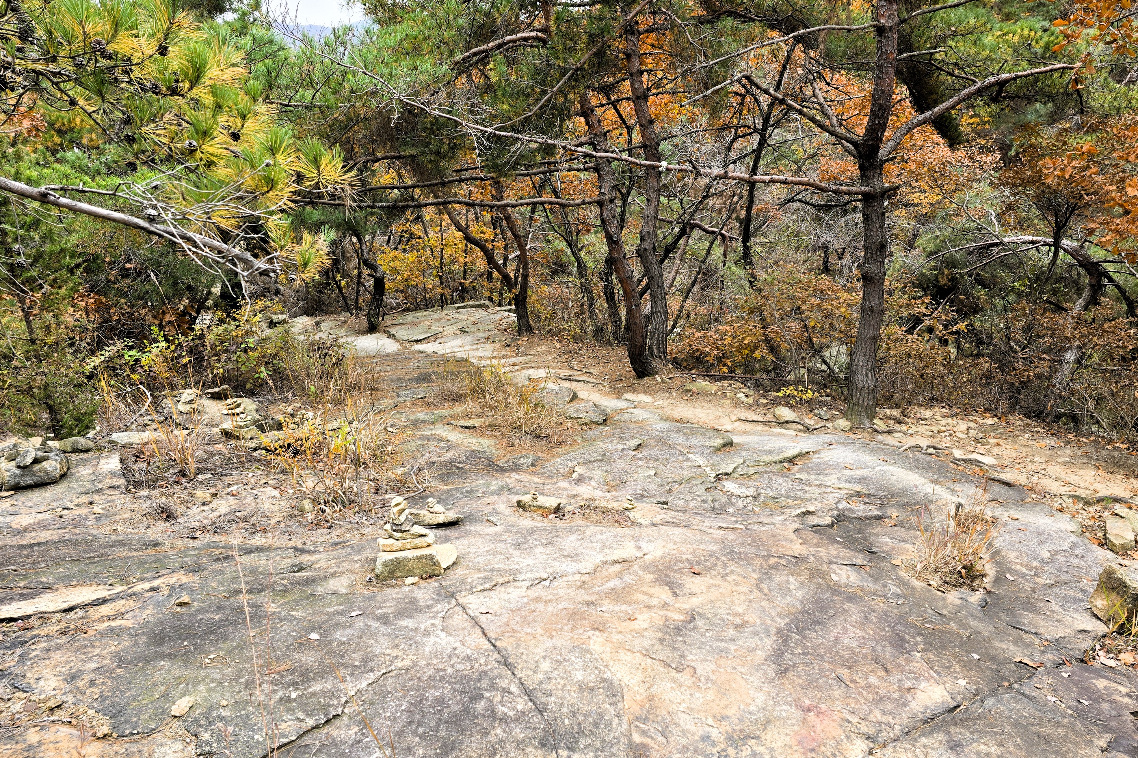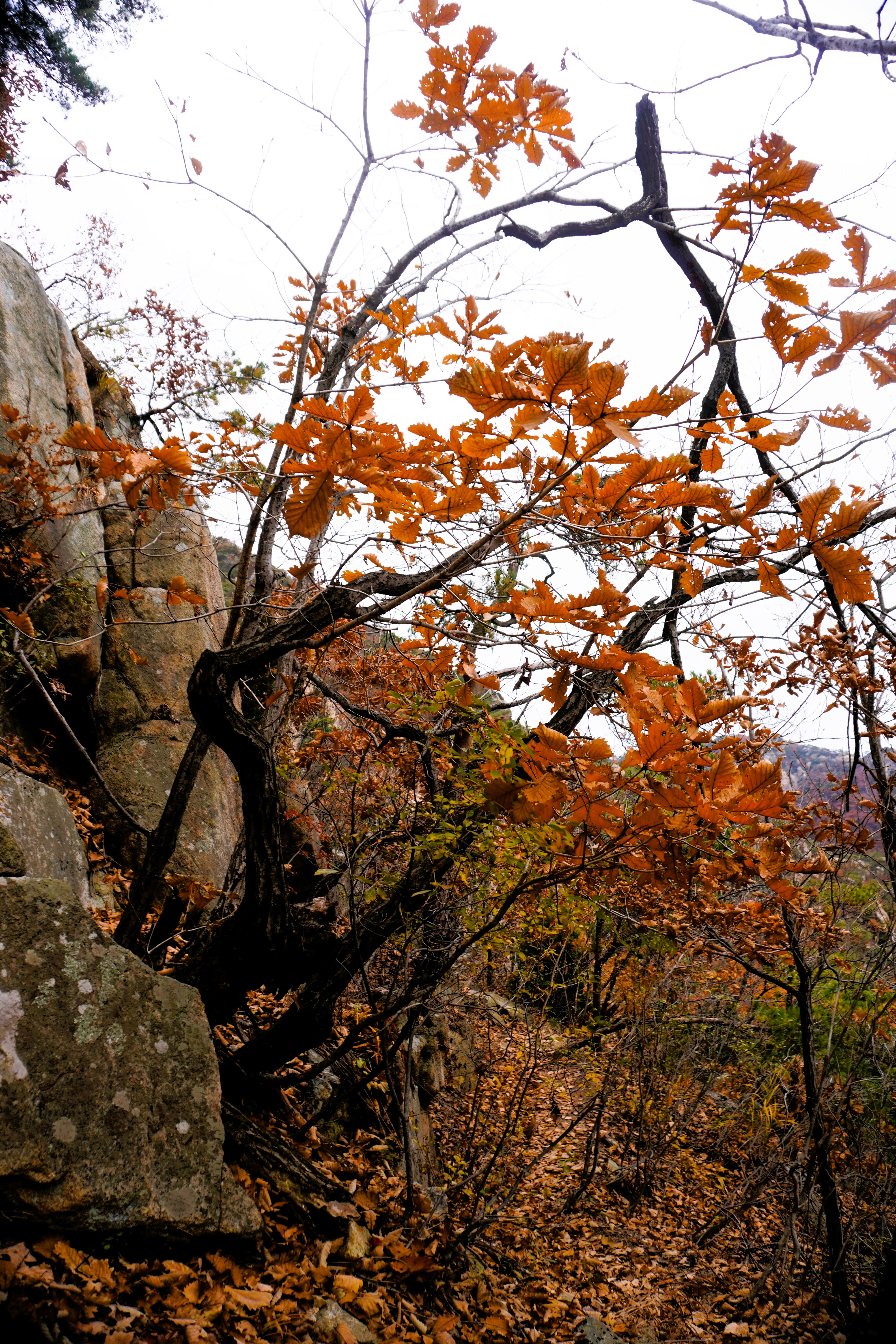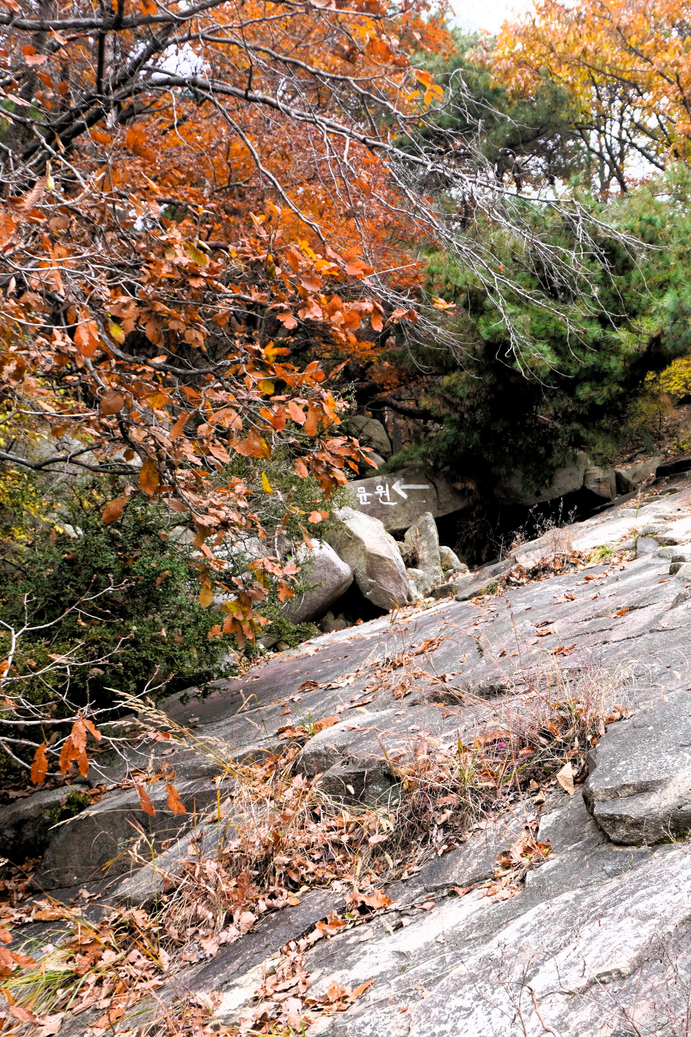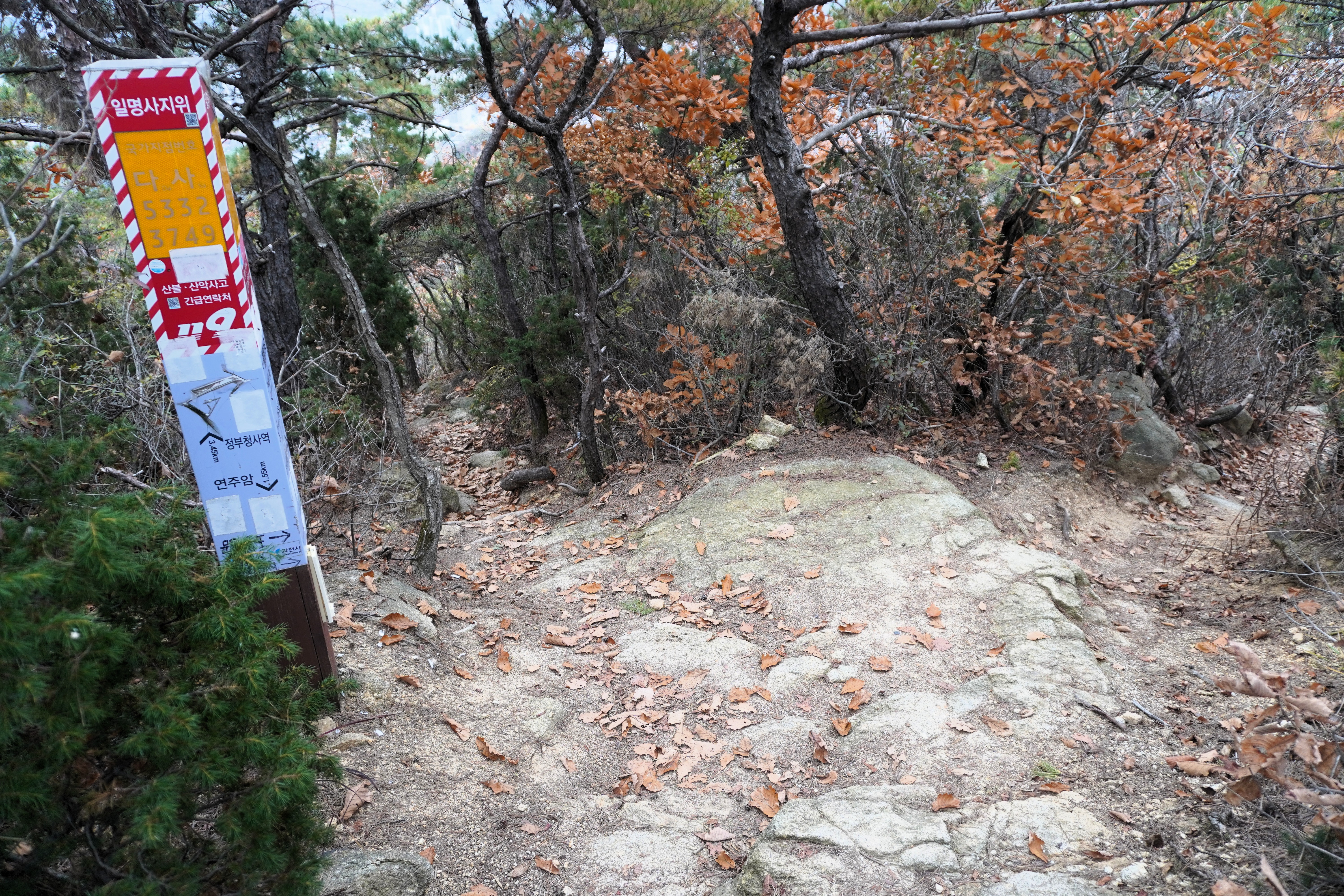 낙엽으로 덮인 가파른 마사토길을 오르고 이번엔 두 손 두 발을 모두 사용해 조심스럽게 암릉길도 오른다.
