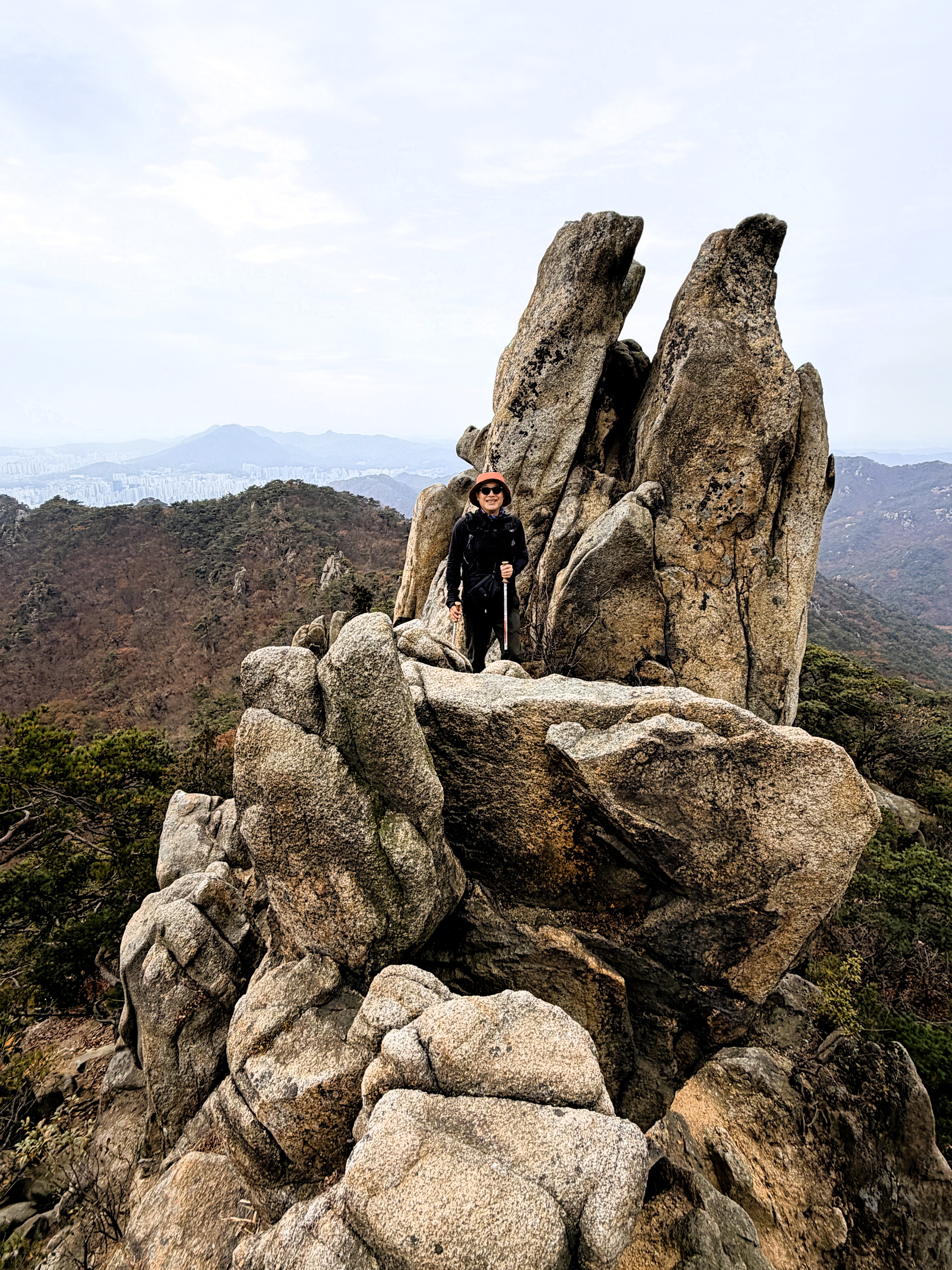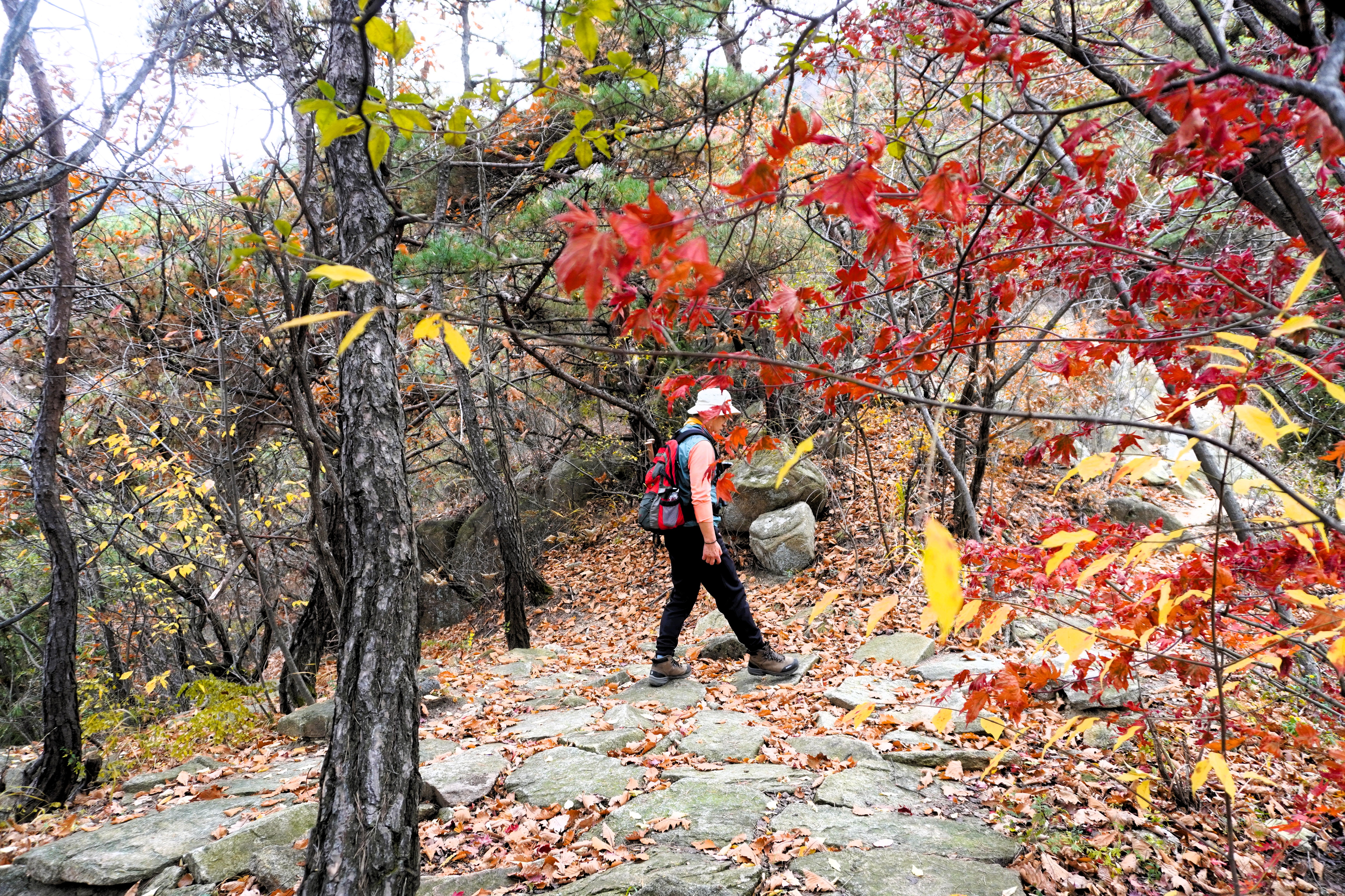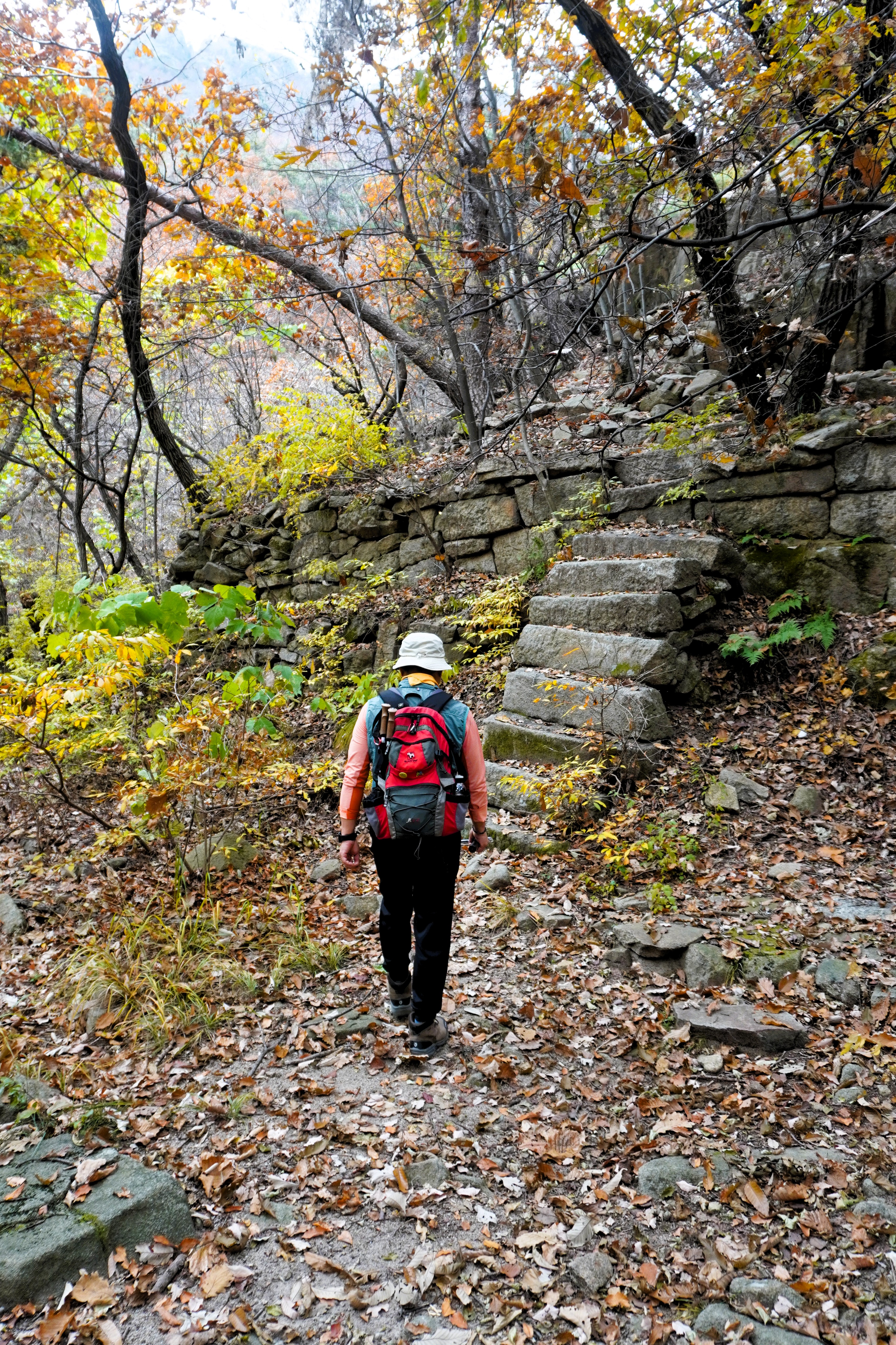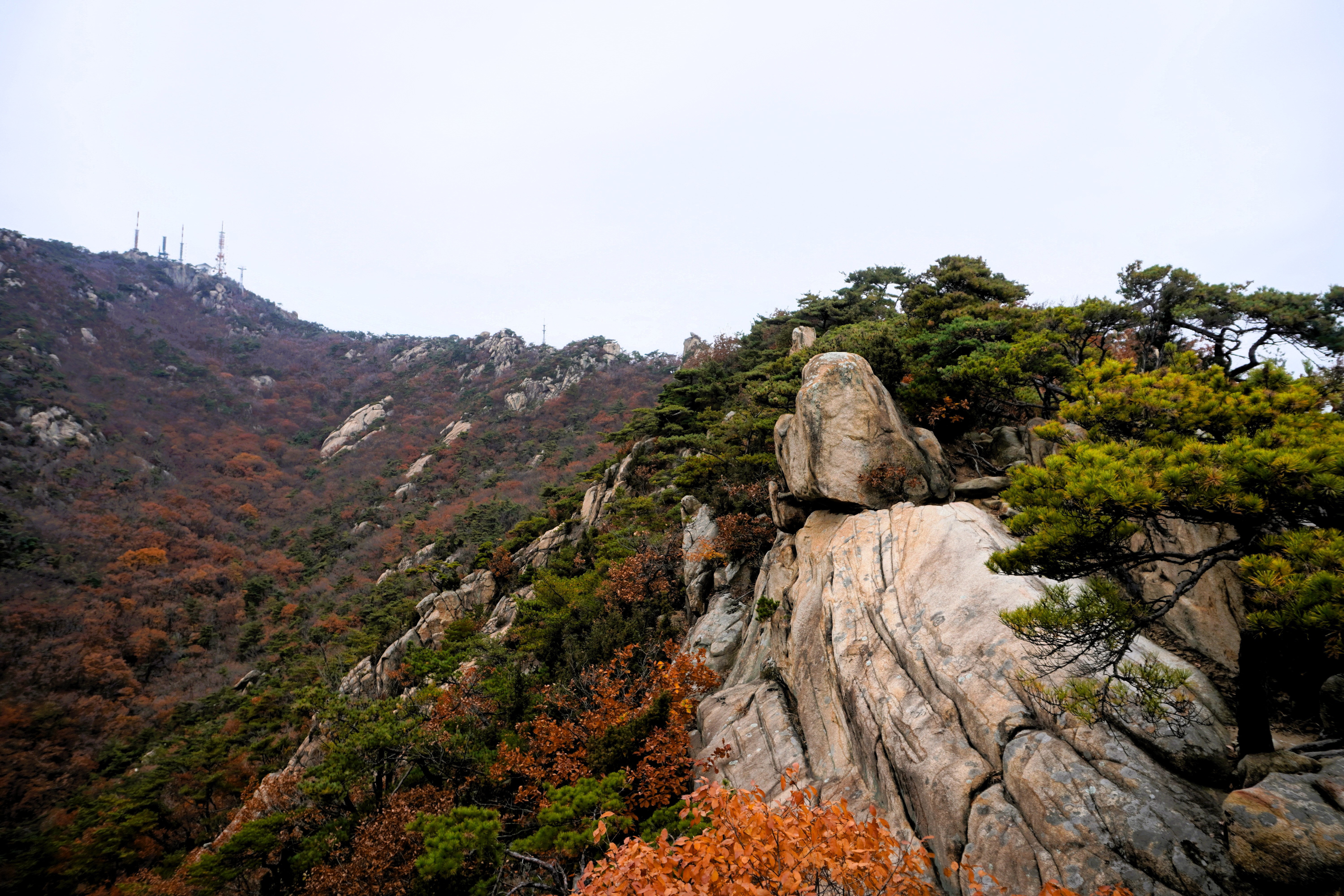 낙엽으로 덮인 가파른 마사토길을 오르고 이번엔 두 손 두 발을 모두 사용해 조심스럽게 암릉길도 오른다.