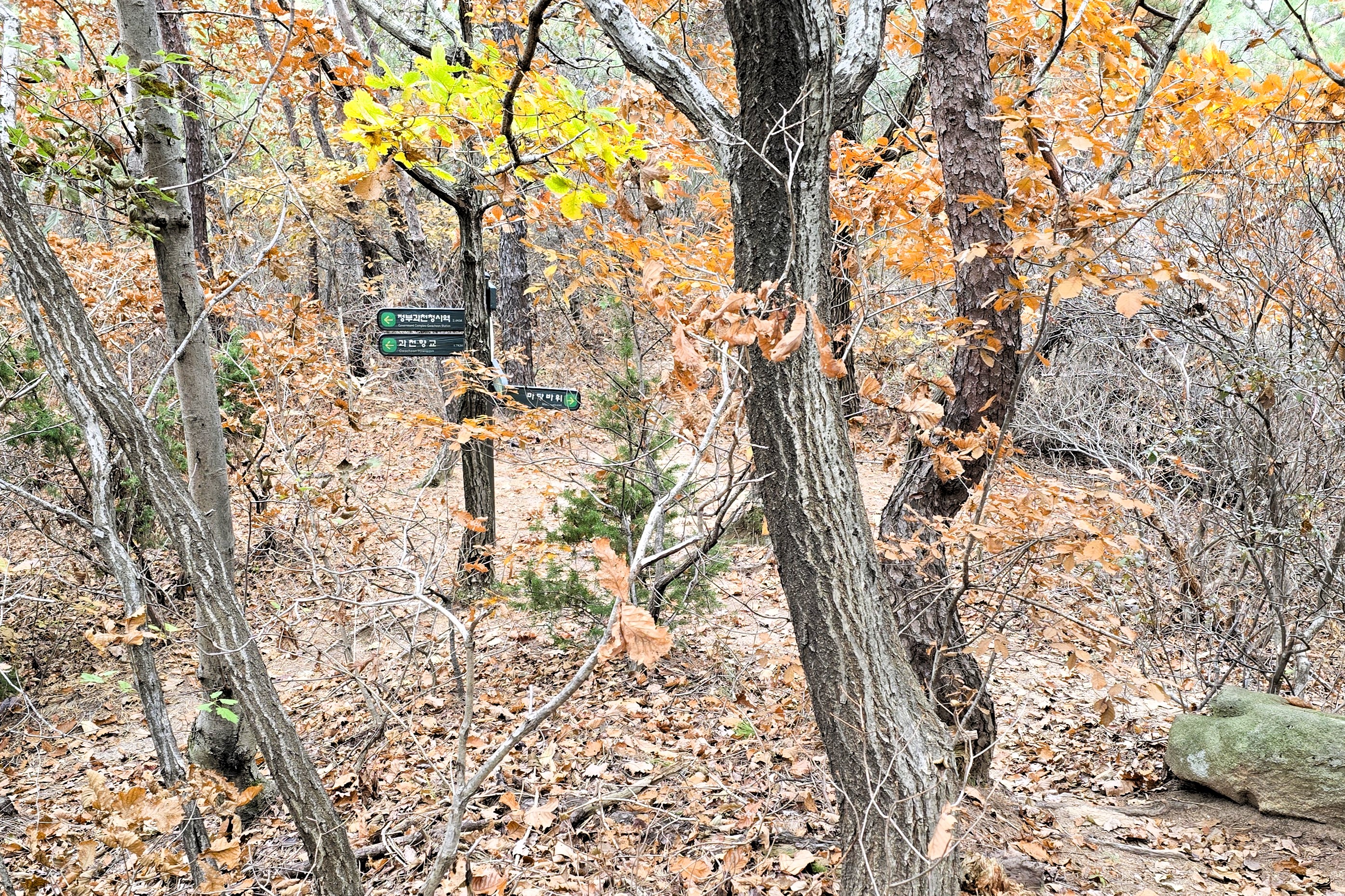 오른쪽으로 우횟길이 있지만 바위로 곧장 올라가 소나무 뒤에 있는 개구멍으로 통과하는 재미가 많아 놓치지 않고 지나는 곳이다.