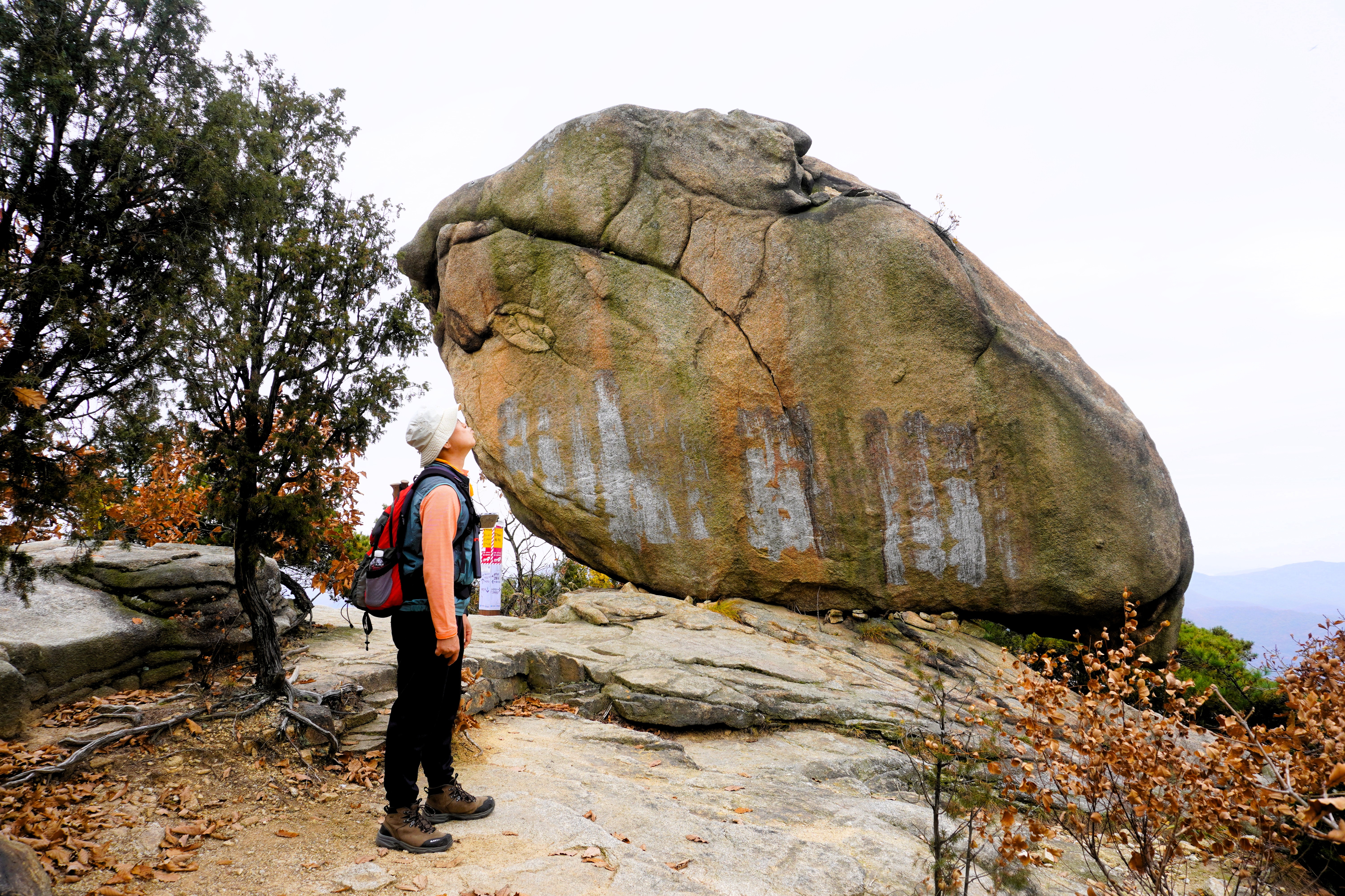 중간 빈 공간이 있지만 마치 업힌 듯한 바위를 자세히 보고