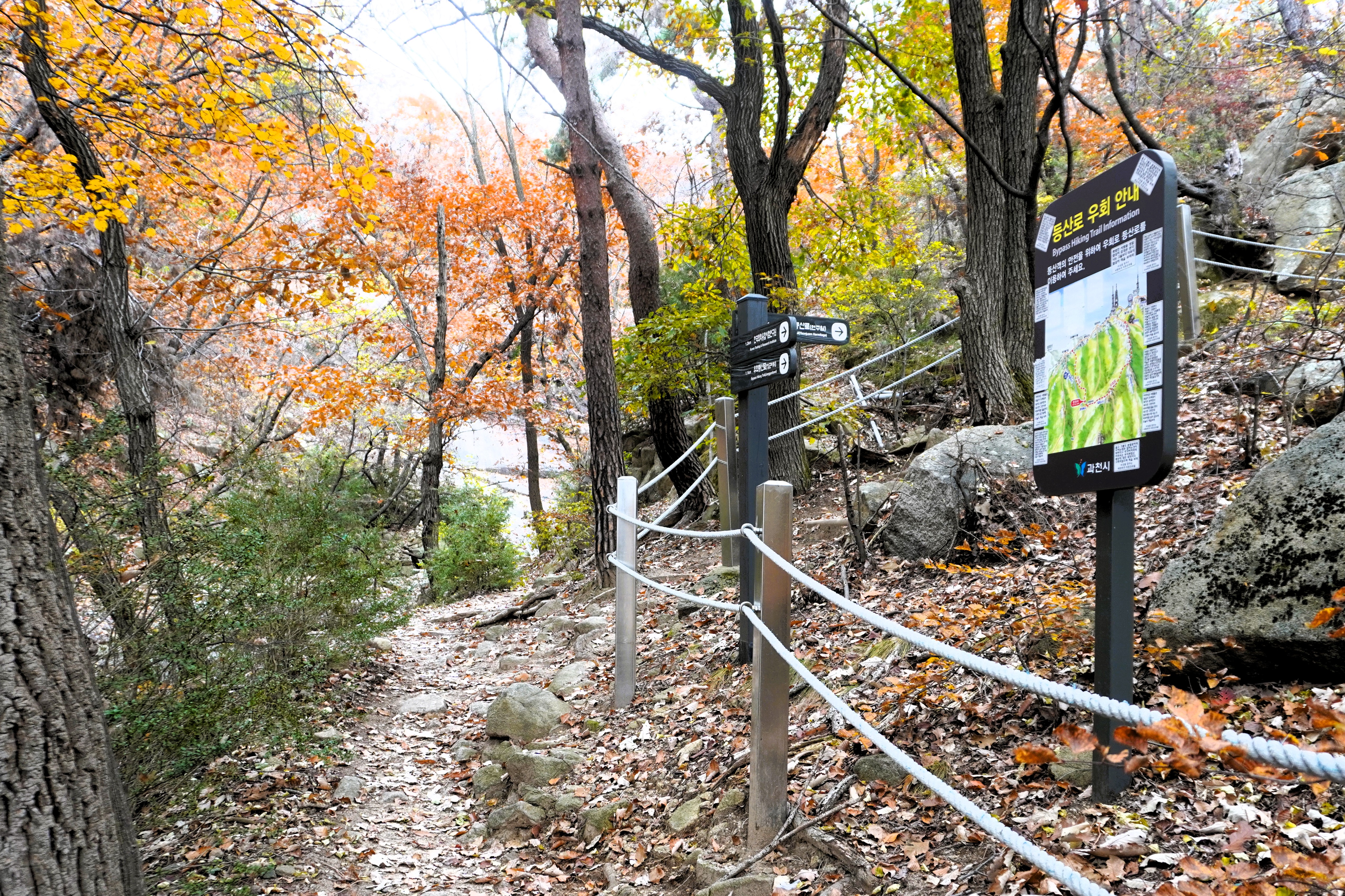 10시경. KTR 앞 길가에서 친구 환이와 만나 산행 채비를 하고 용운암 입구로 들어선 시간이 아마 10시 15분쯤? 관악산 둘레길을 만나