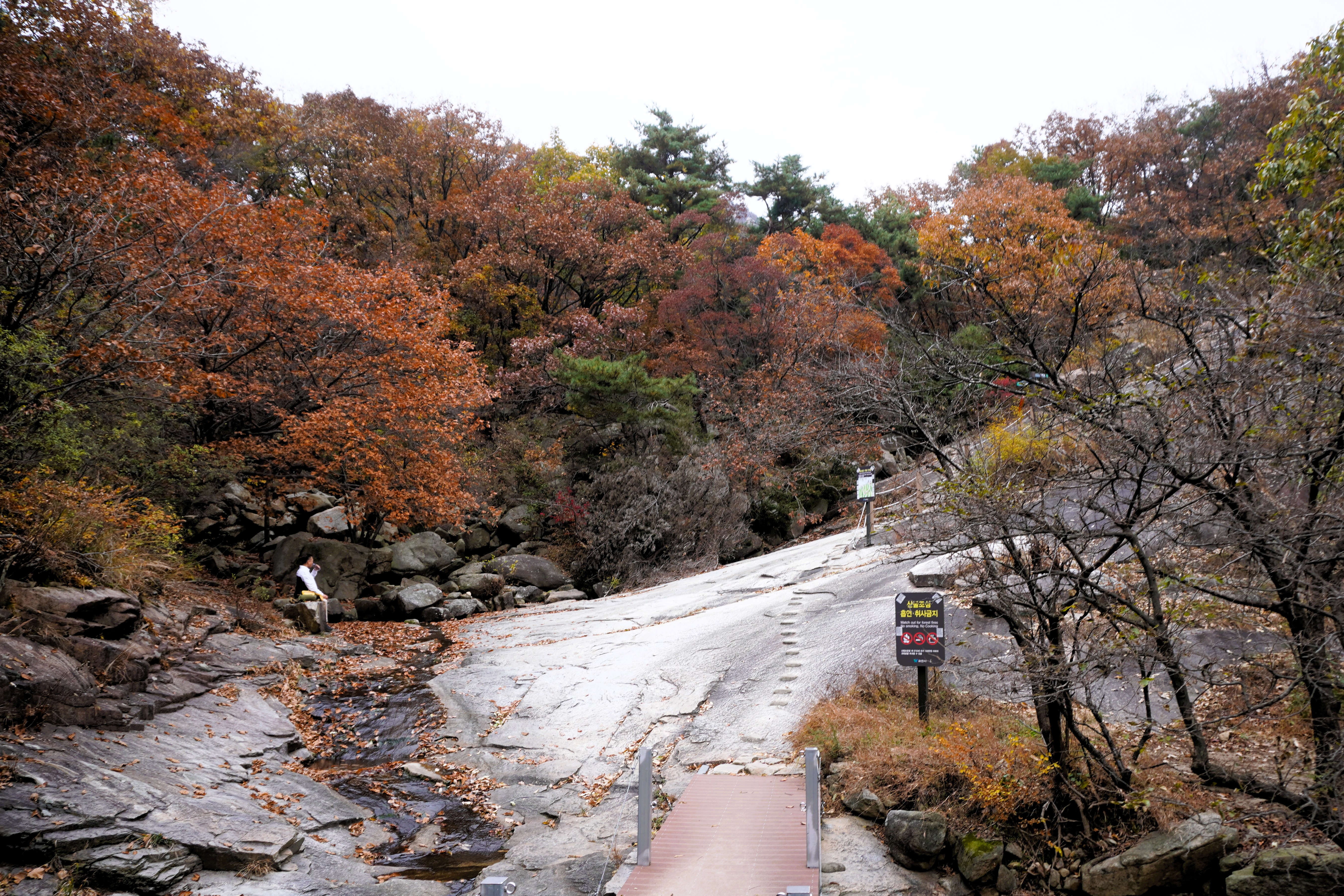 오른쪽으로 20m 정도 걸어가 문원계곡을 건너고, 그 계곡을 따라 문원폭포로 가면서 본격적인 산행을 시작한다.