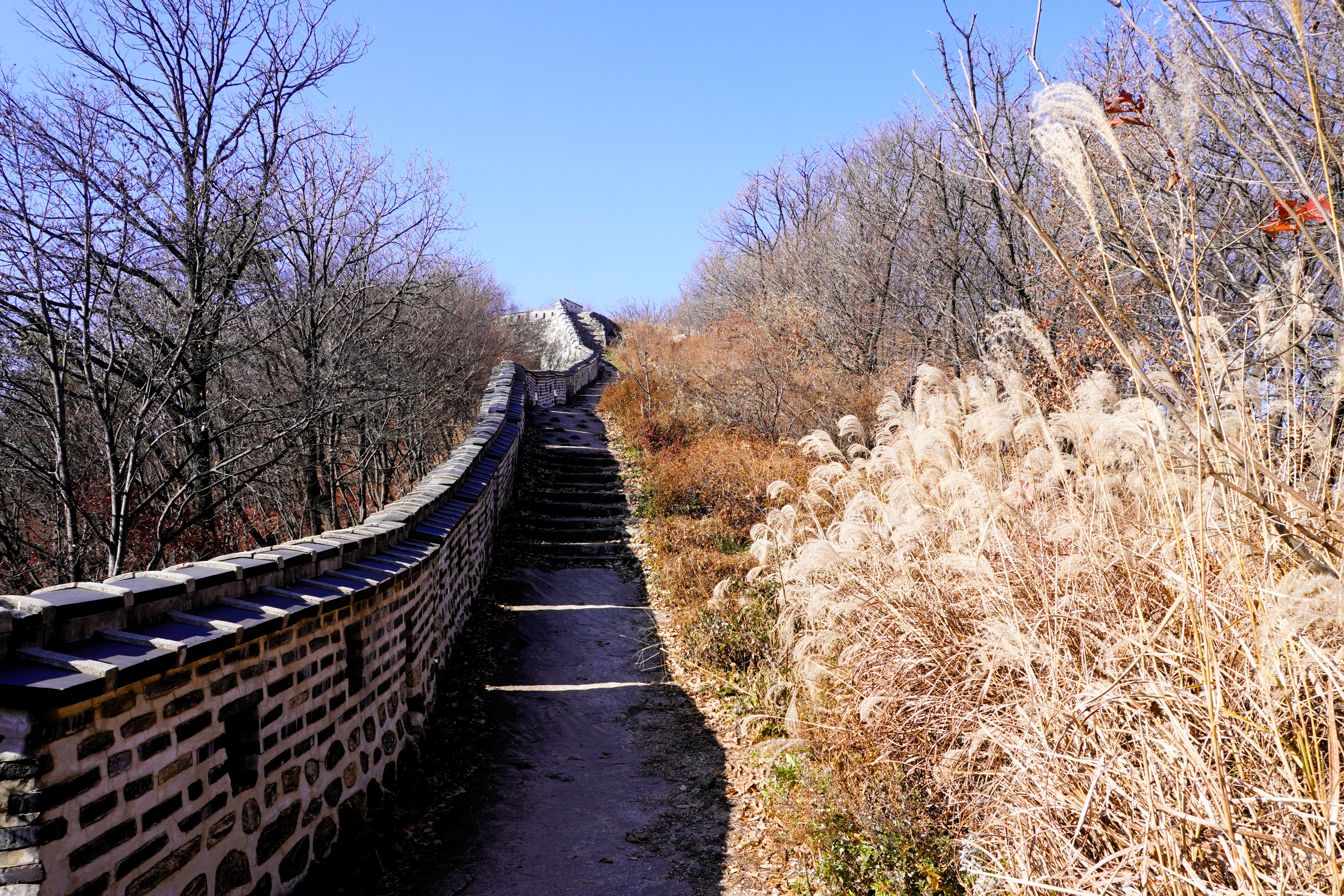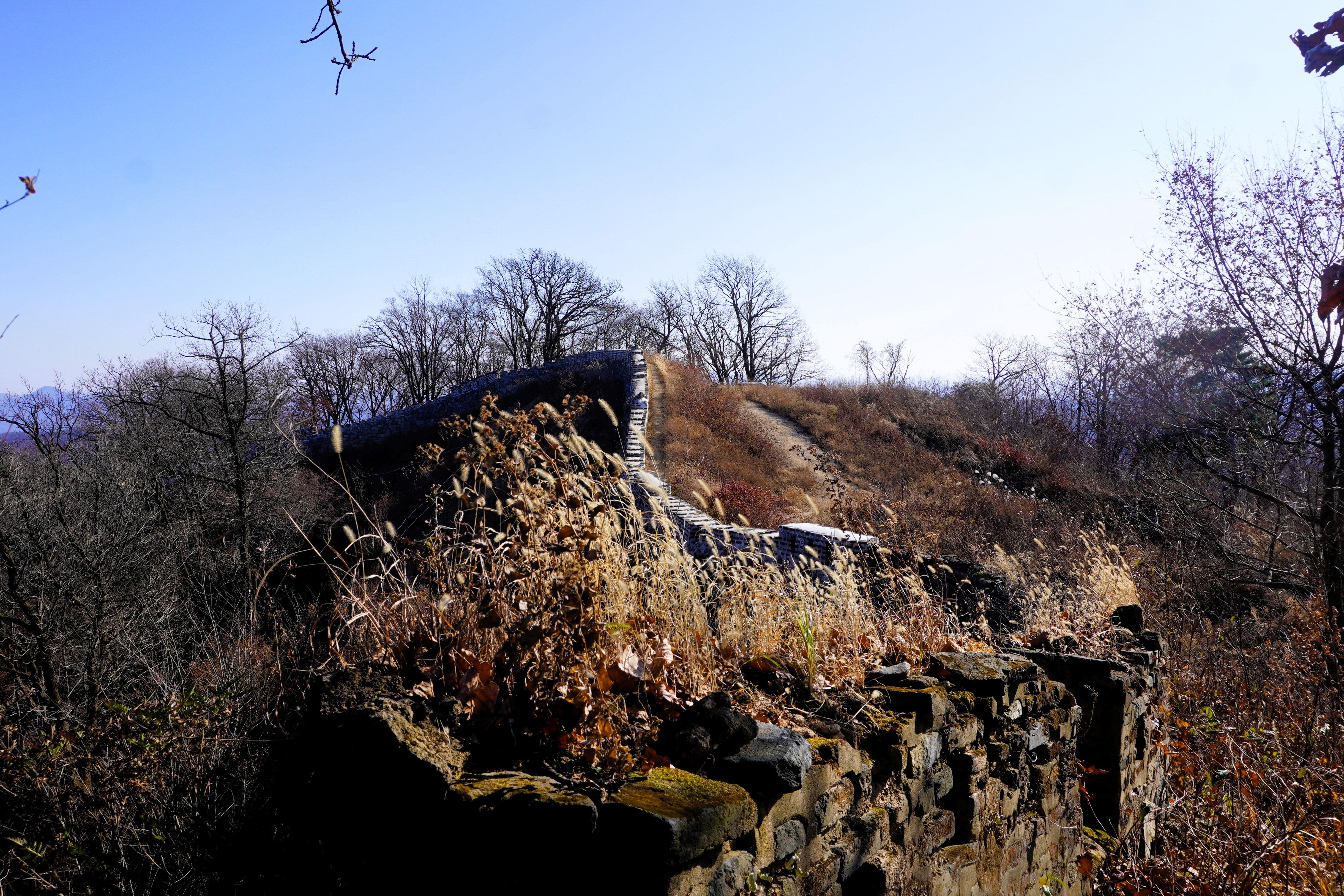 이제부터 완만하고 평탄한 성곽길. 하얀 억새꽃을 감상하는 등 만추의 풍경을 즐기면서 걷는데... 가만, 억새꽃이 거의 다 떨어졌는데...?