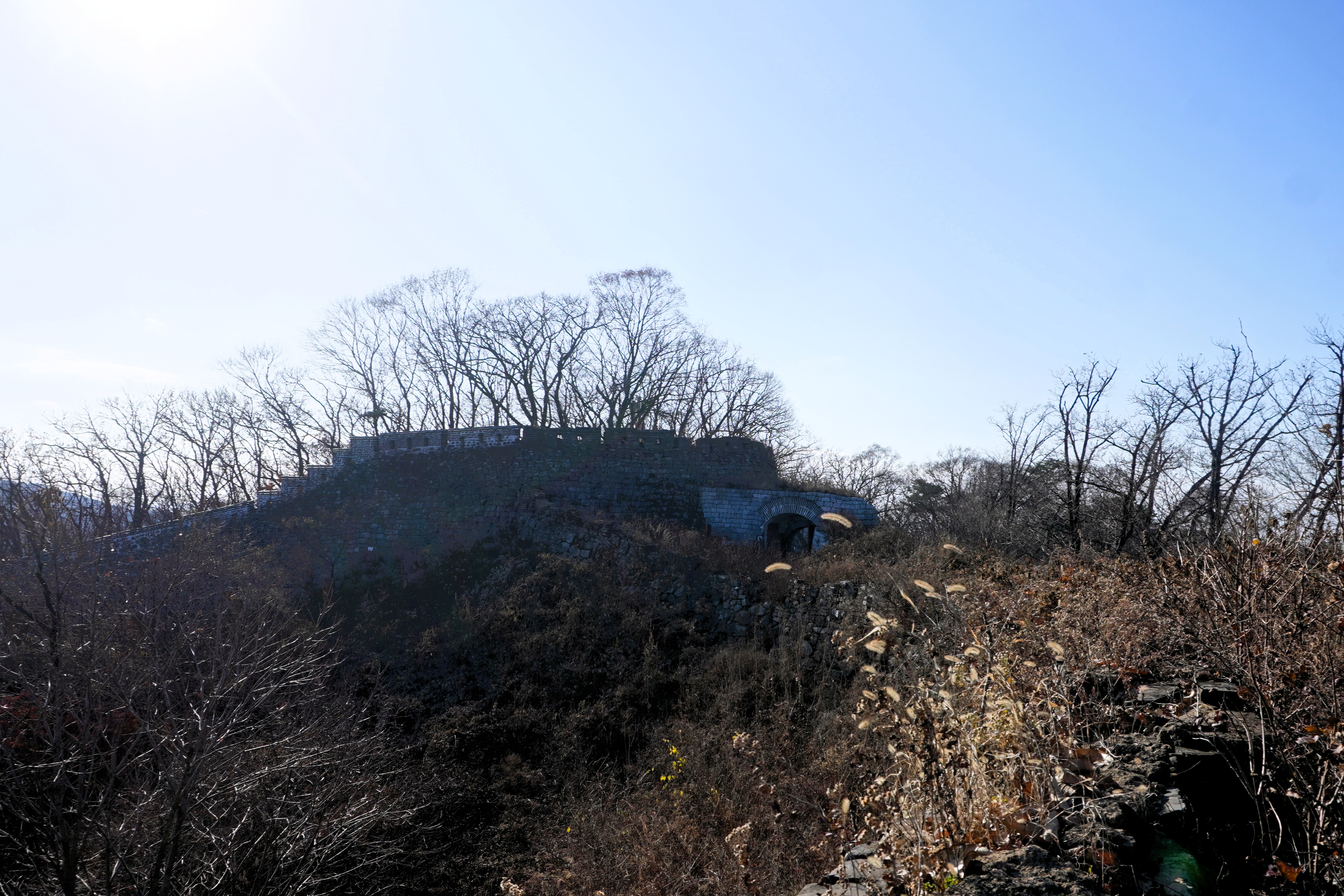 끙끙대며 오르고 있으니 점차로 몸에 열기가 더해져서 좀 전까지 몸 안으로 침습하던 추위를 단박에 물리치고 잰걸음으로 이 오름의 끝인 10 암문 위로 올라간다.