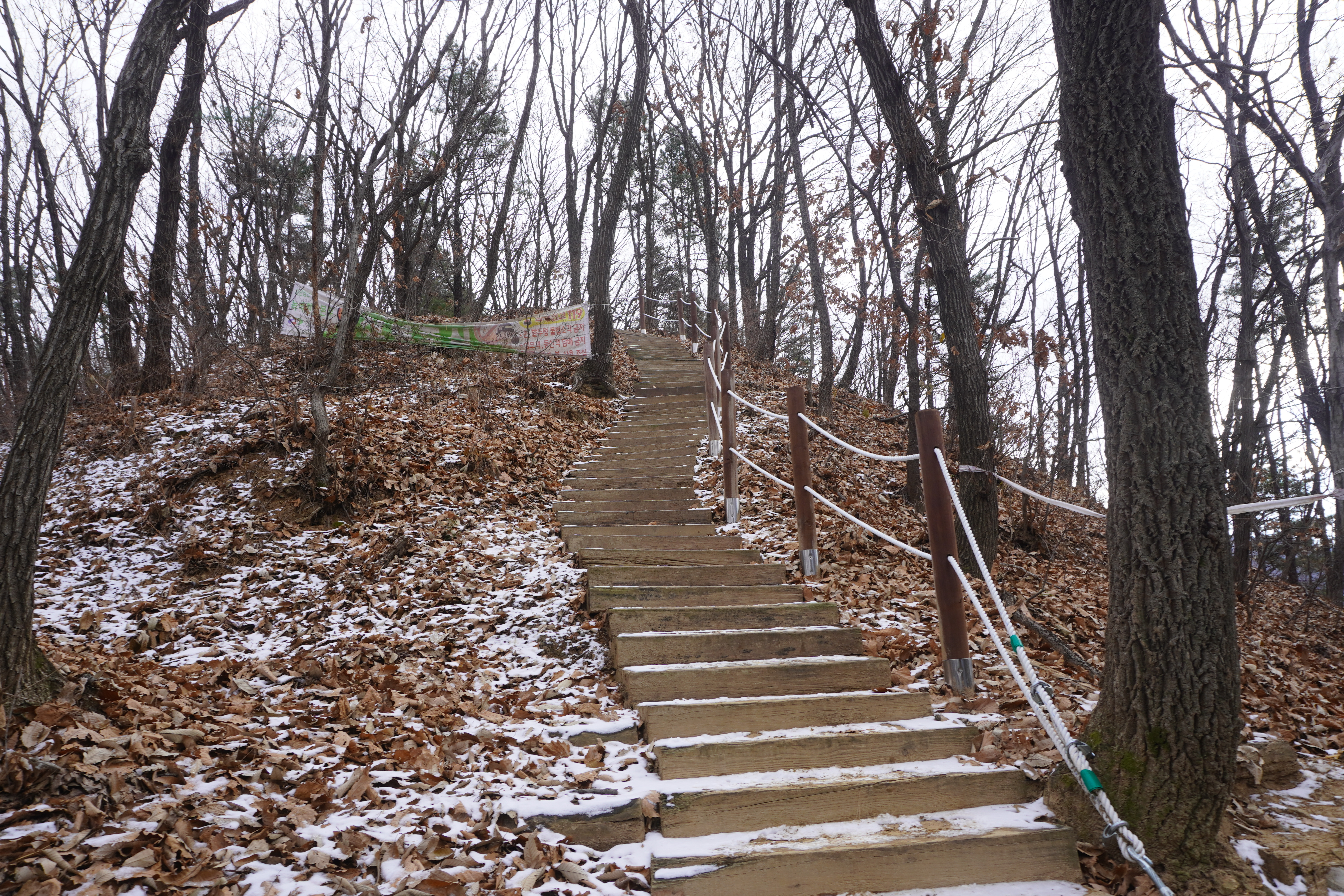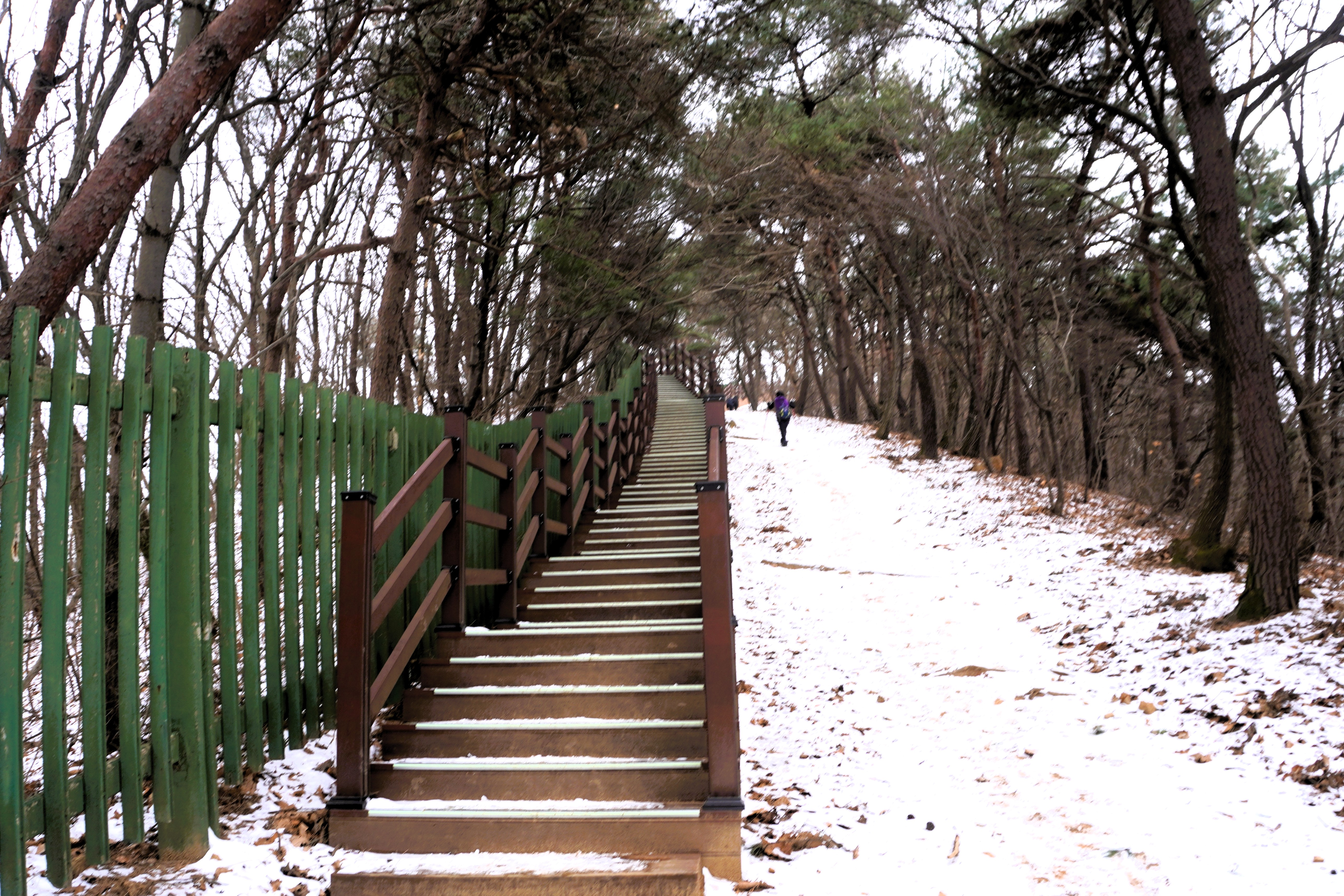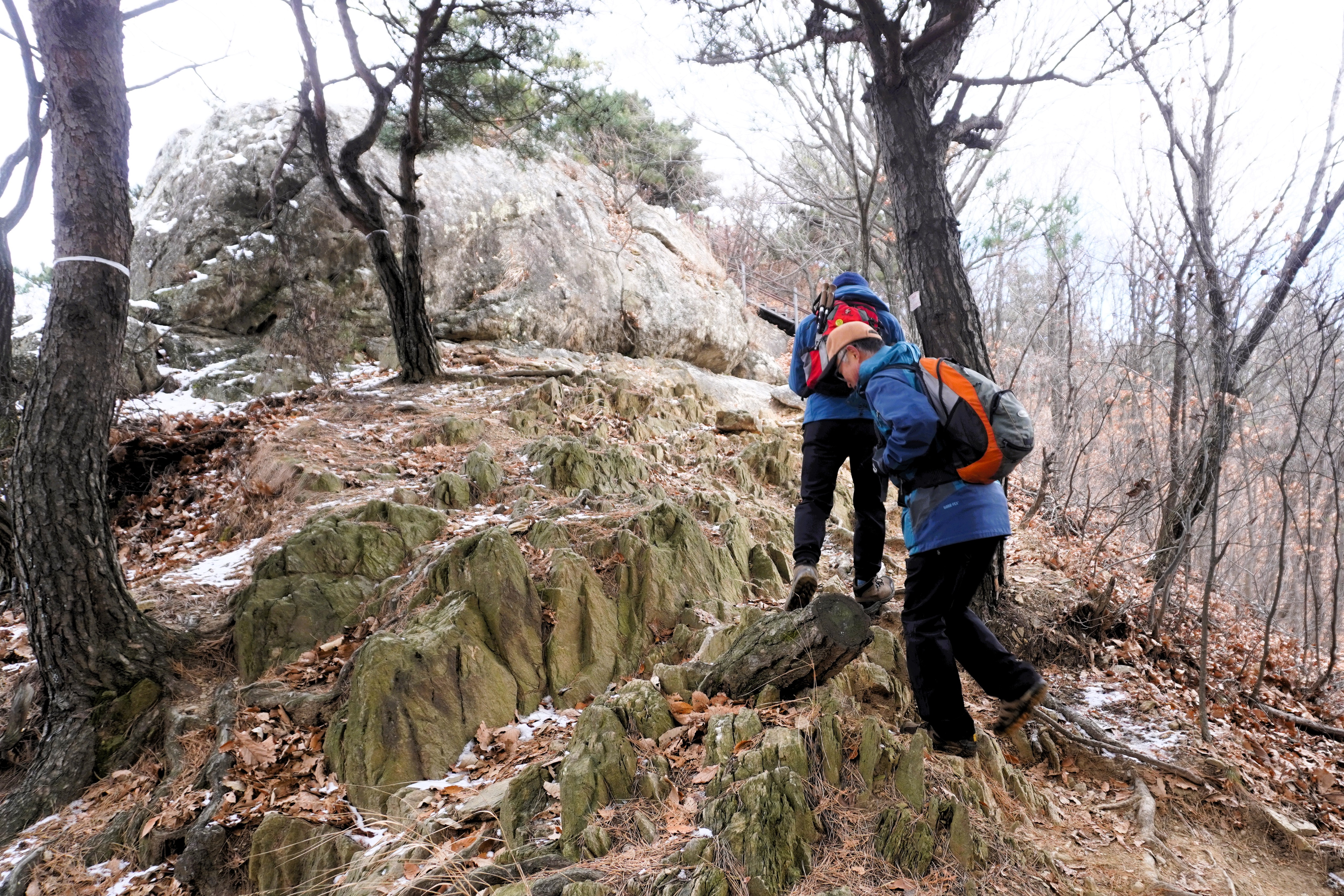 지금 정도면 몸에 열기가 올라 춥지 않아야 하는데... 친구 화니는 손이 시린지 여전히 손을 겨드랑이에 끼고 산행중이다.