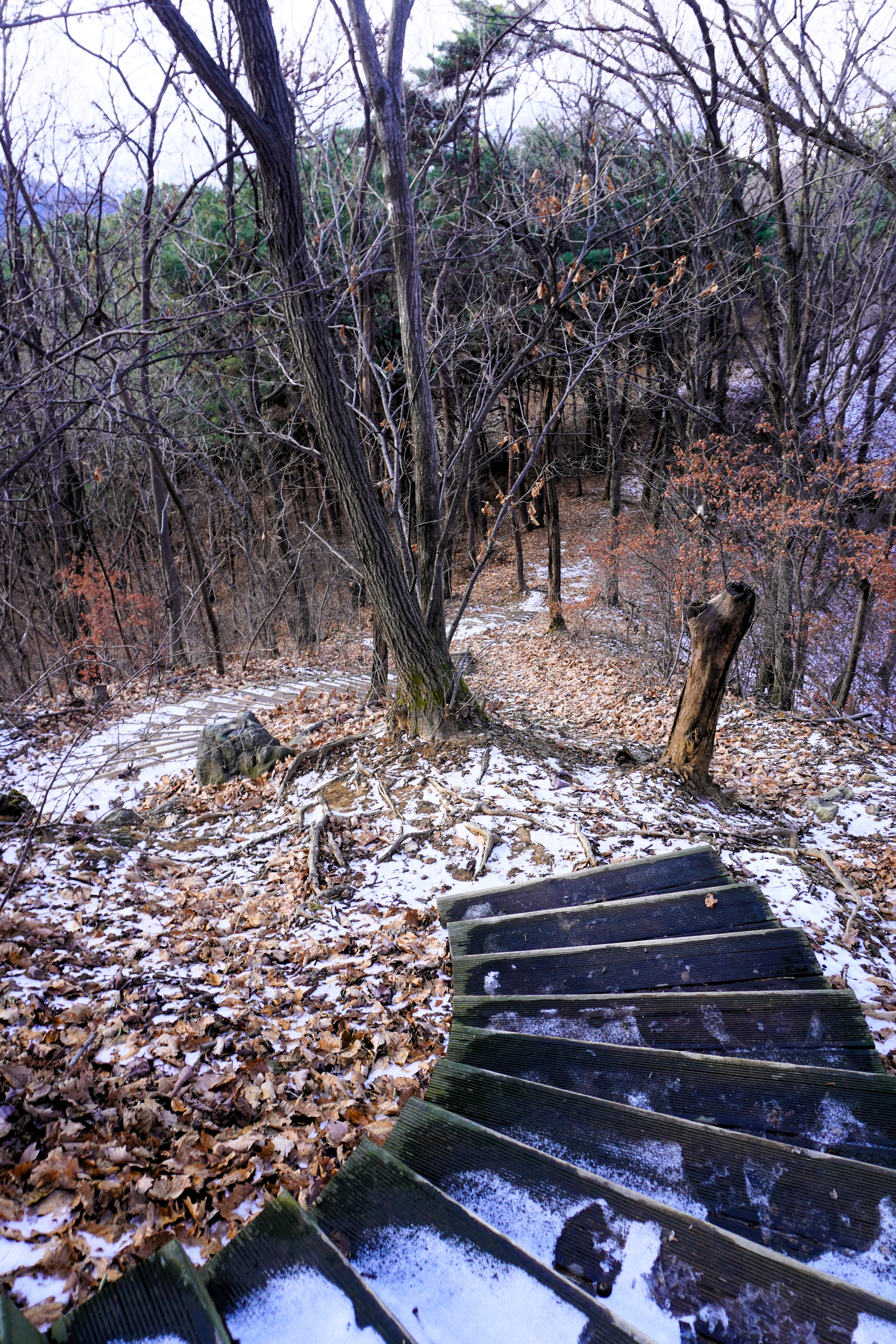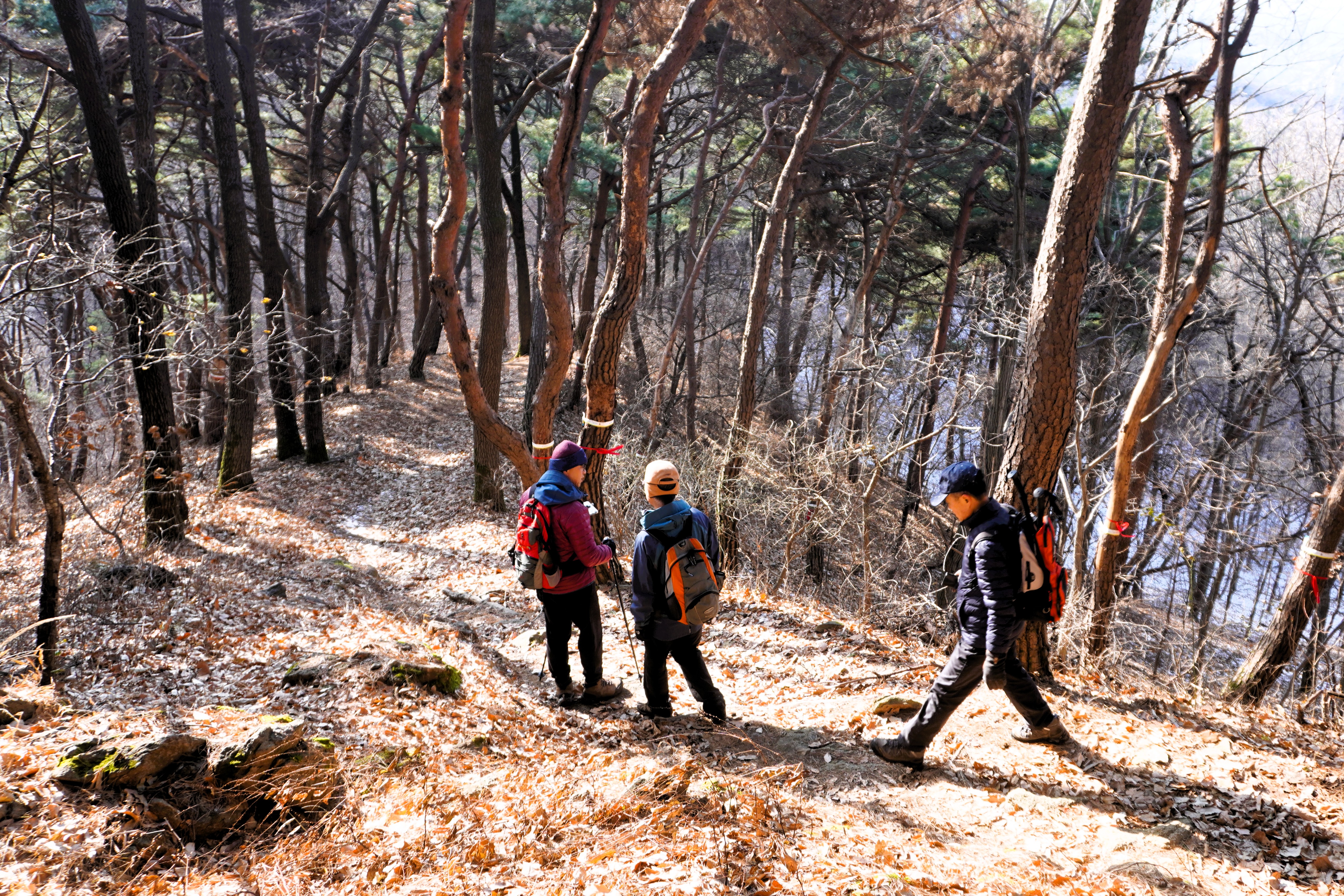 가파른 내림길도 빼곡히 서 있는 소나무들도... ㅋㅋ 내려간다는 베이스 때문인지 멋지게만 보였다.