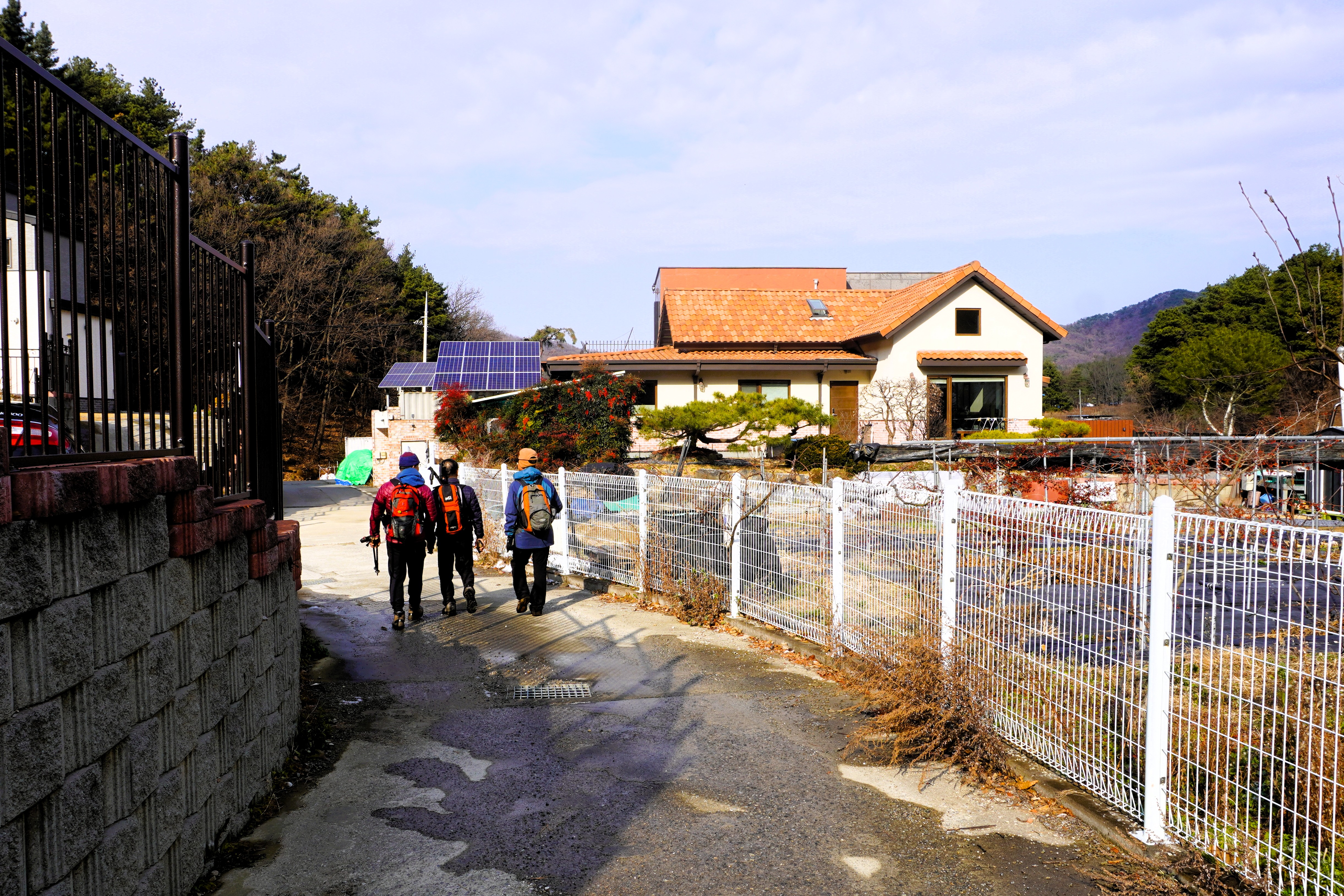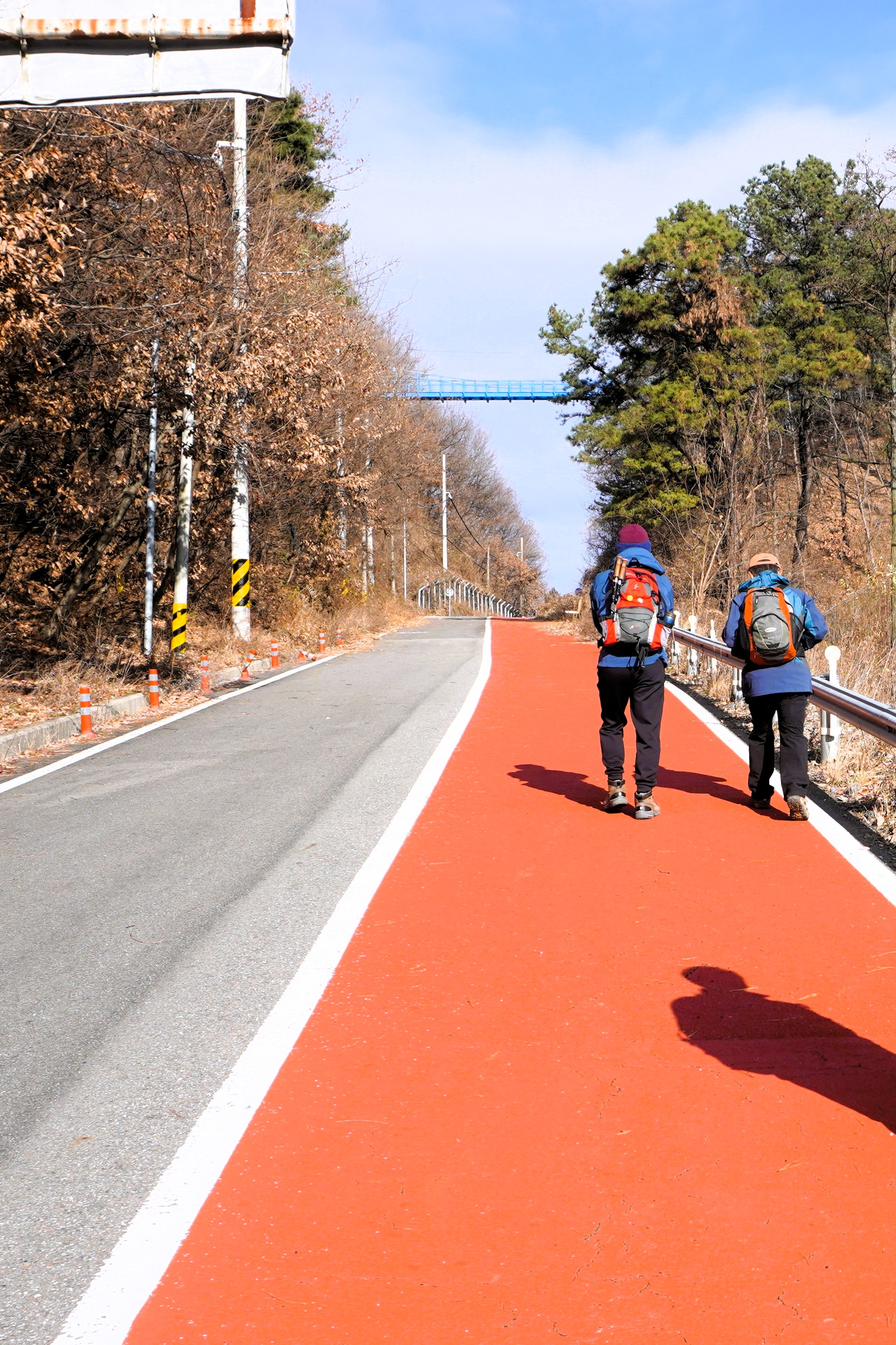 태조호 둑으로 가기 전, 오른쪽으로 난 계단에 오르고 큰 찻길을 따라가다가 두 도로가 시작되는 지점에서 길을 건너 옛길(작은도로)을 따라 걷는다.