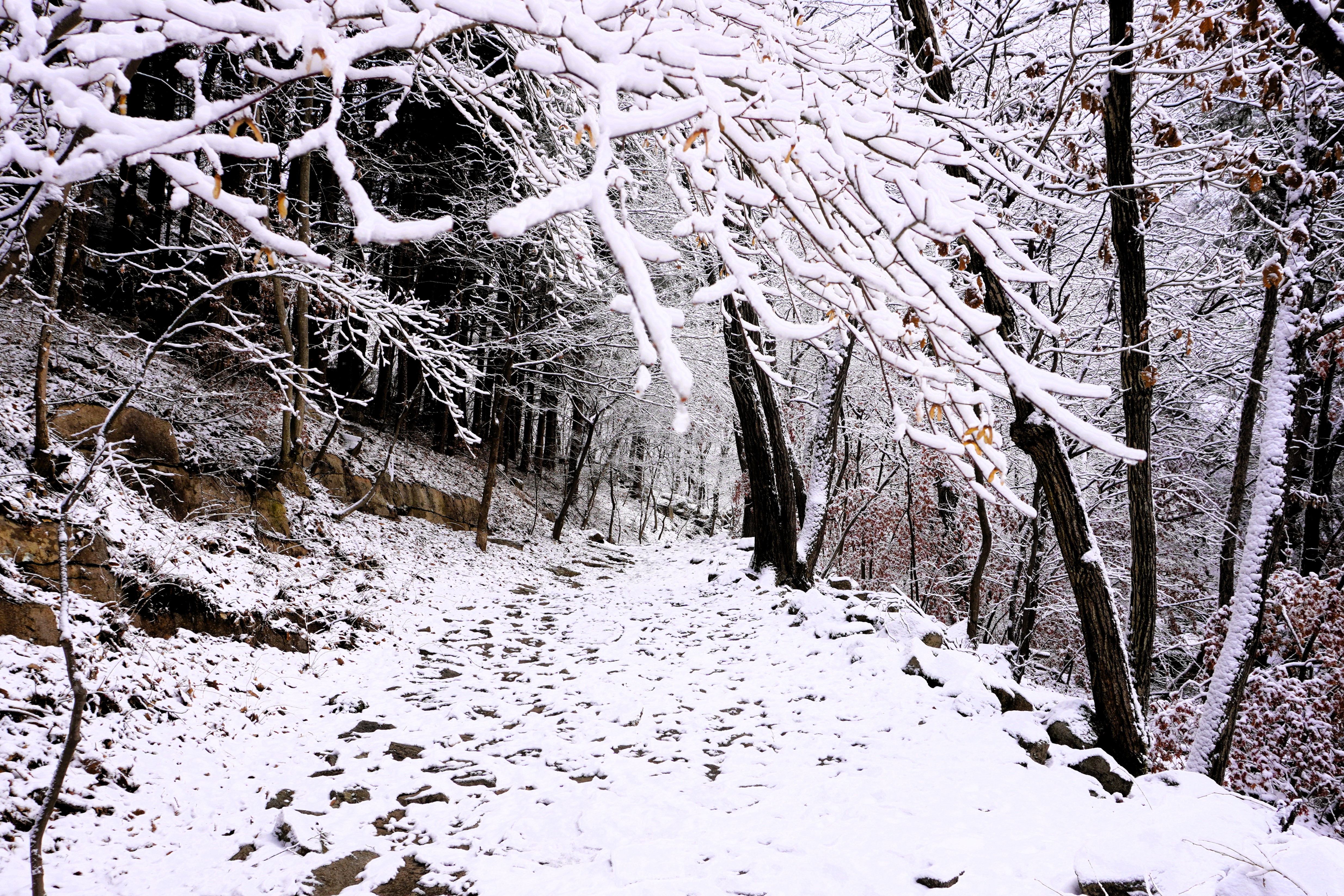 계곡을 두고 계곡을 따라 오르는데... 어제 내린 눈이 제법 쌓여 있어서 눈길을 걷는 맛이 났다.