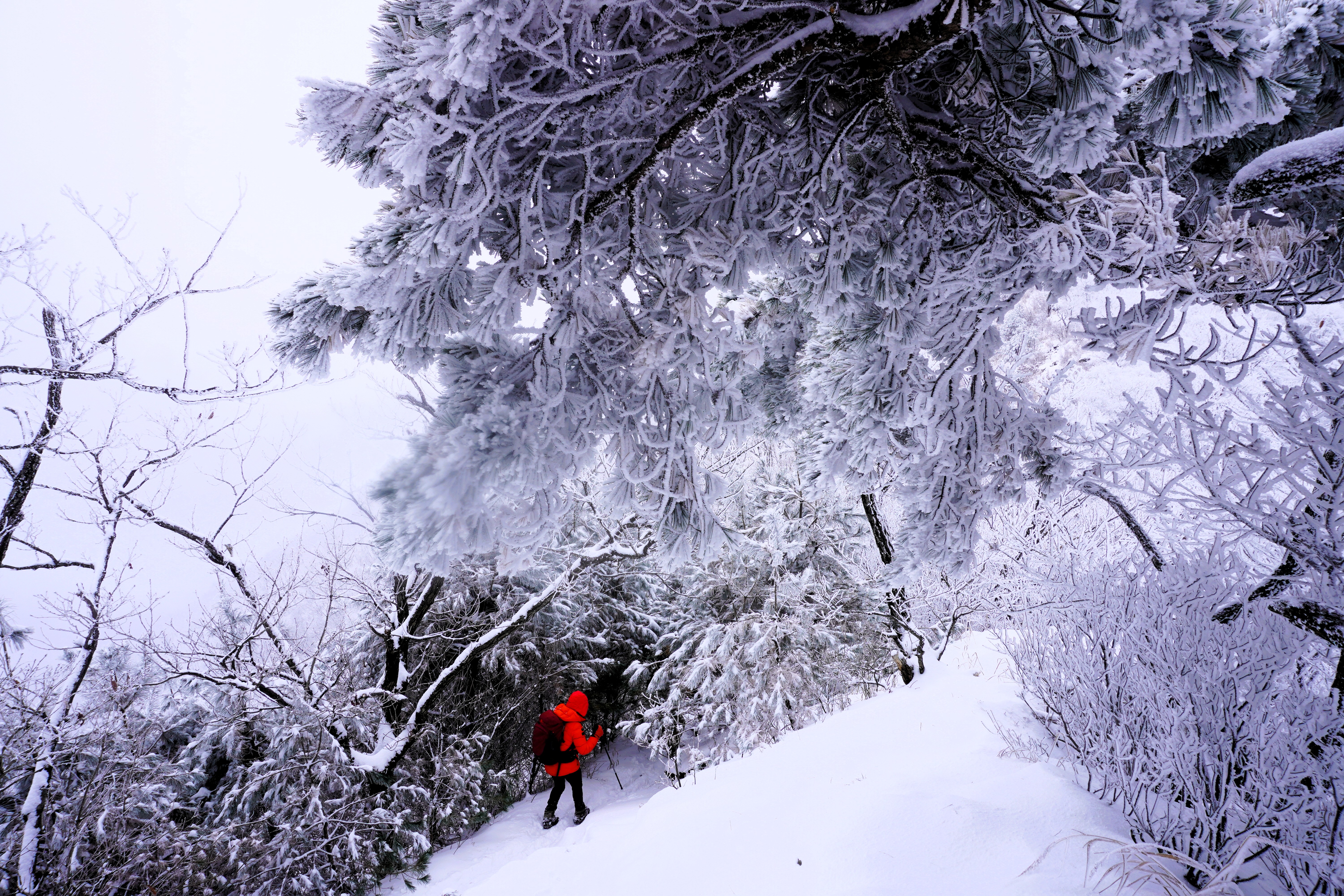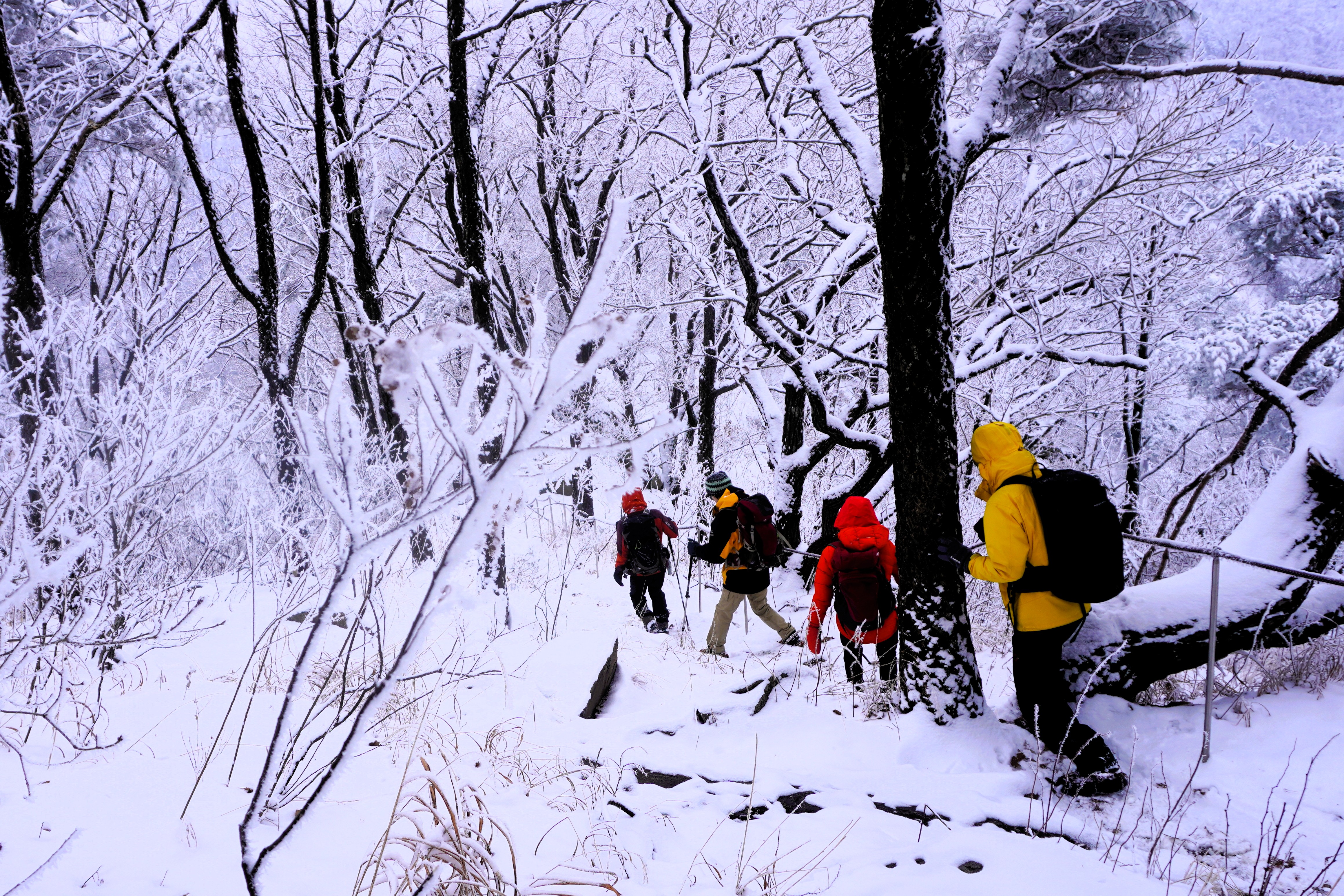 이 적당한 추위와 눈이 만든 작품들... 와~~ 눈잎으로 치장한 나무들. 적당한 상고대와 어우러져 완전 설국을 이루고 있다.