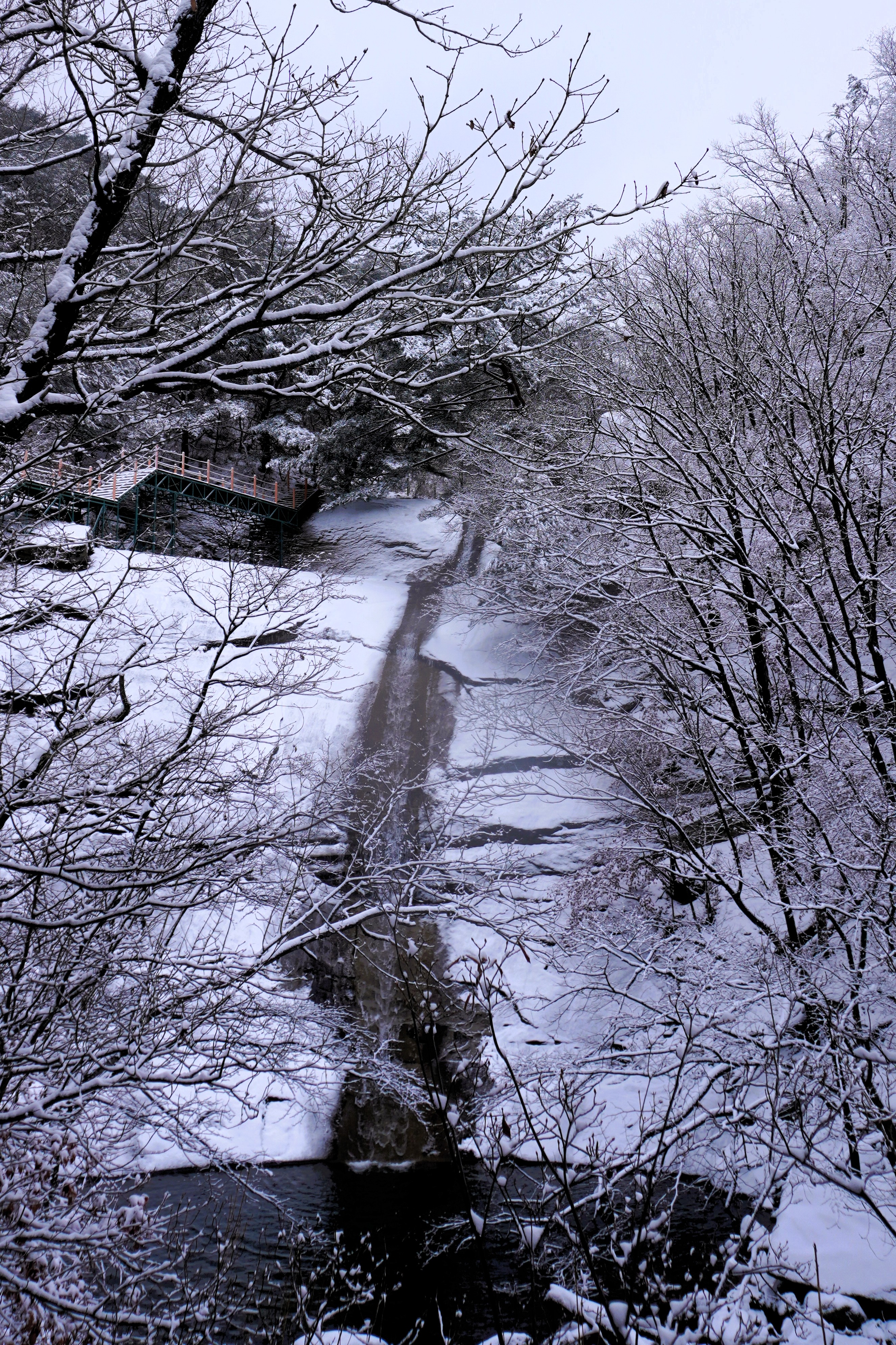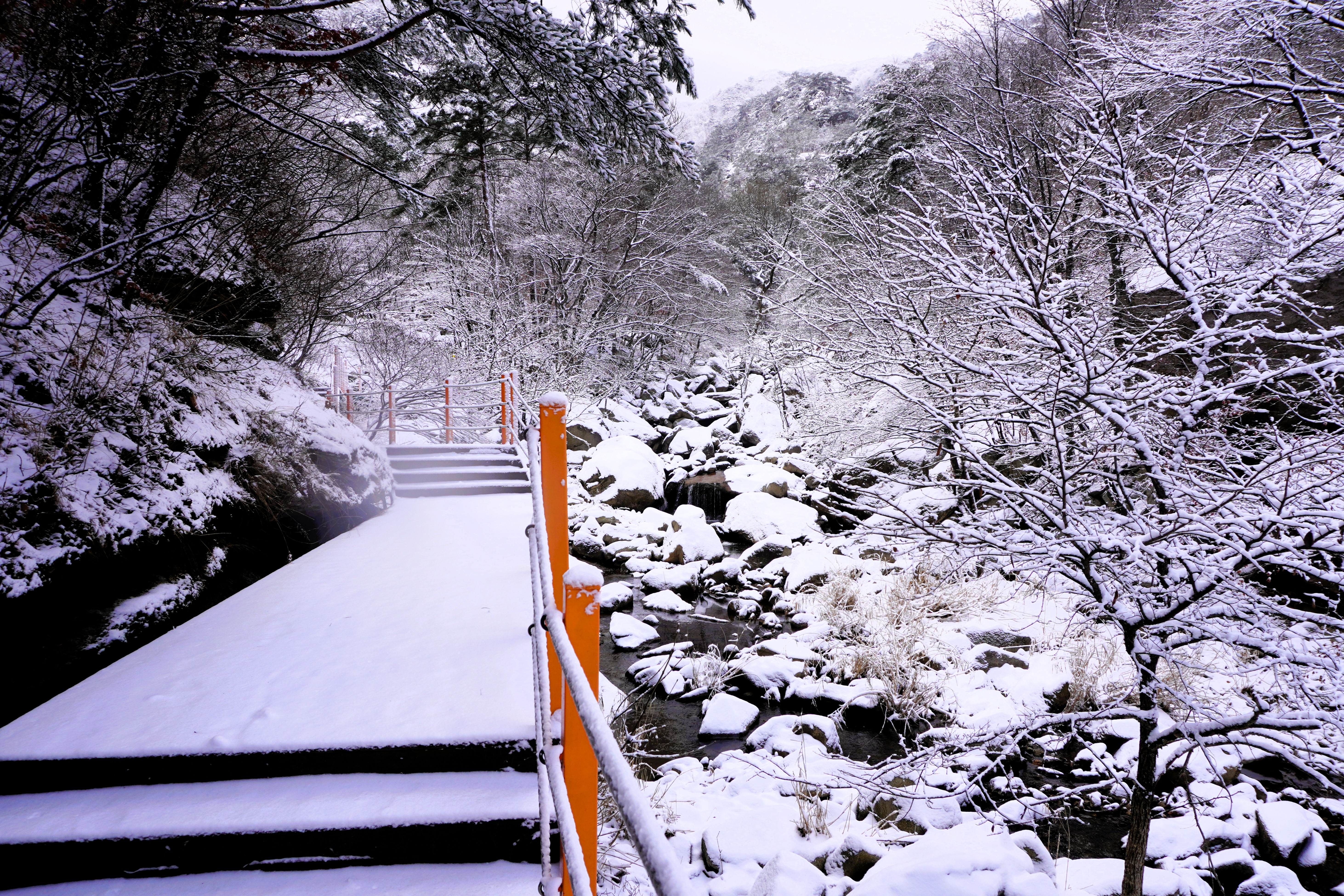 계곡에 있는 흐르는 물과 돌들 위에 쌓인 흰 눈이 멋져서 한 컷!! 이 정도의 큰 계곡이라면 분명 이름이 있을 텐데... 지도를 검색한 결과 구천동계곡인 것 같다.