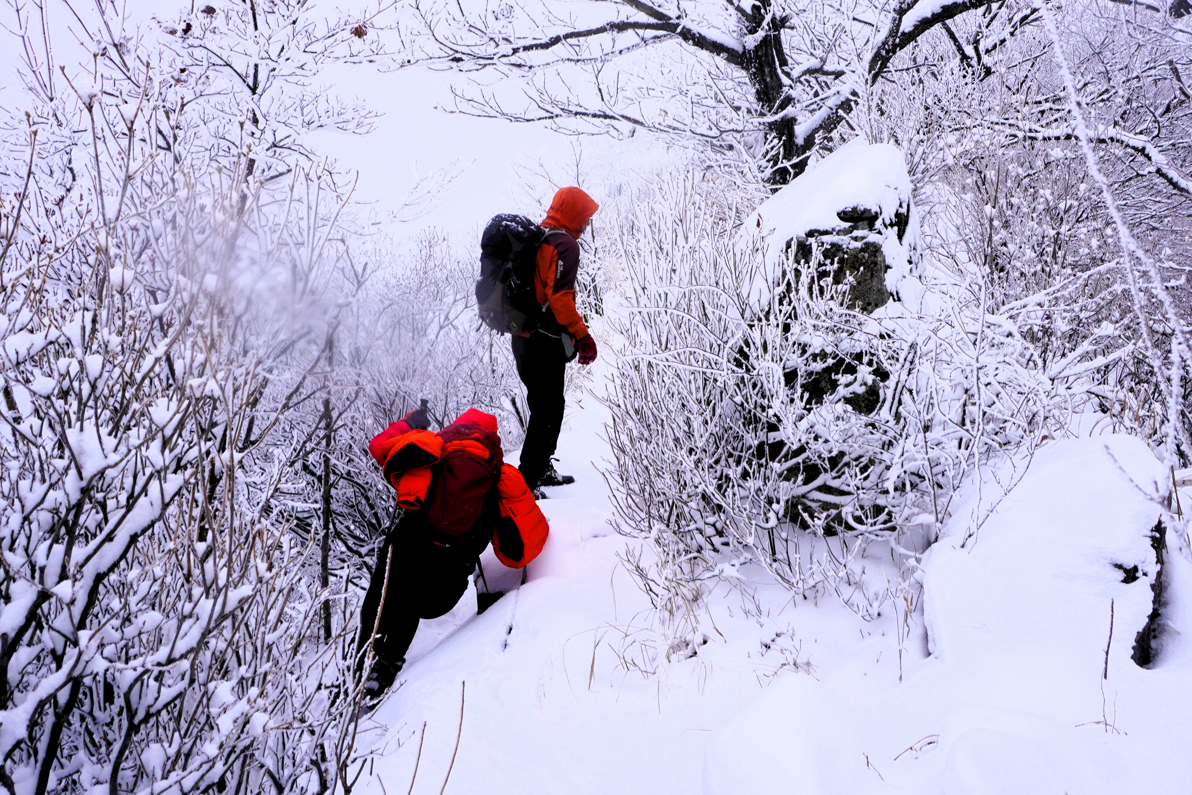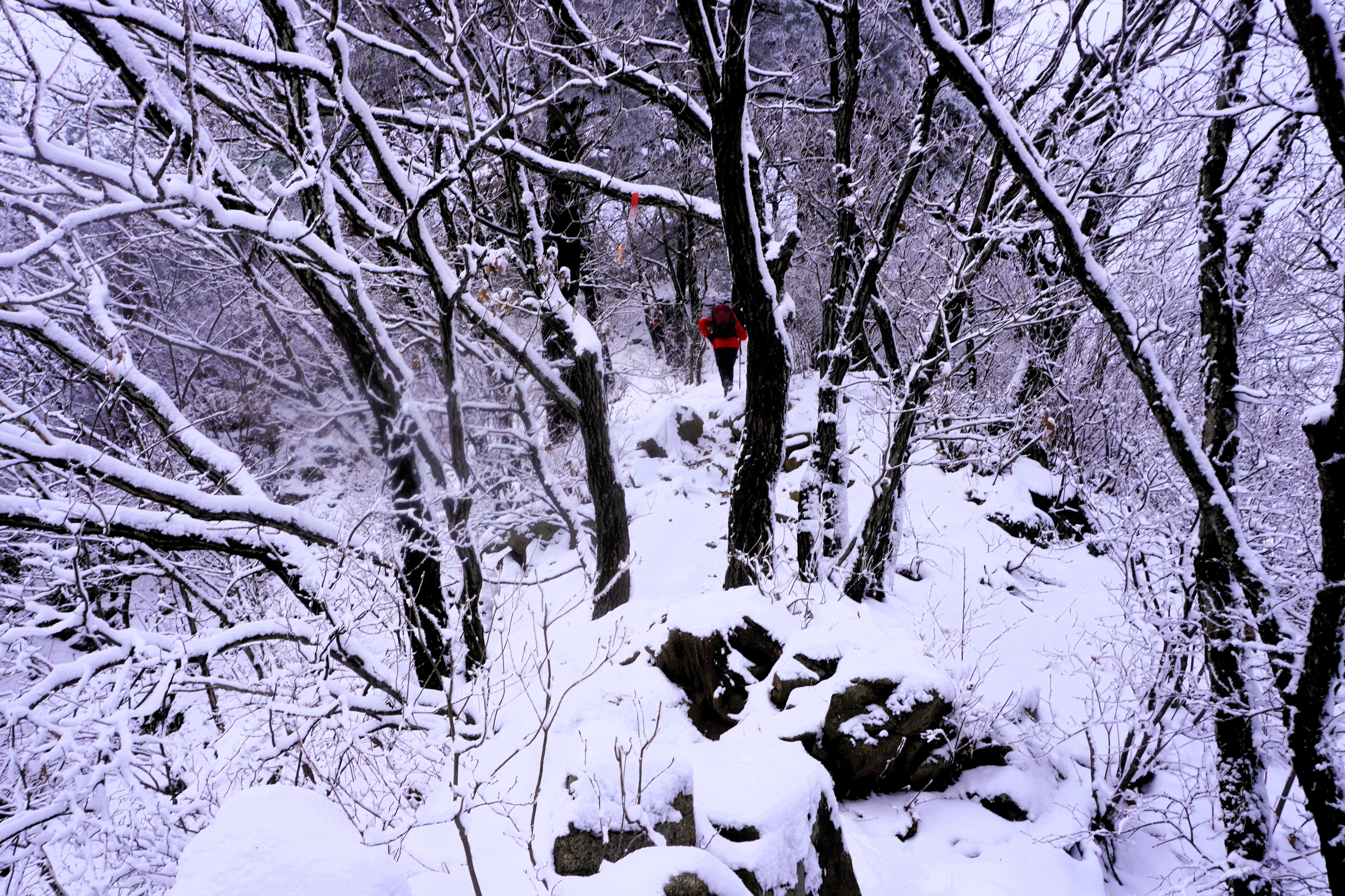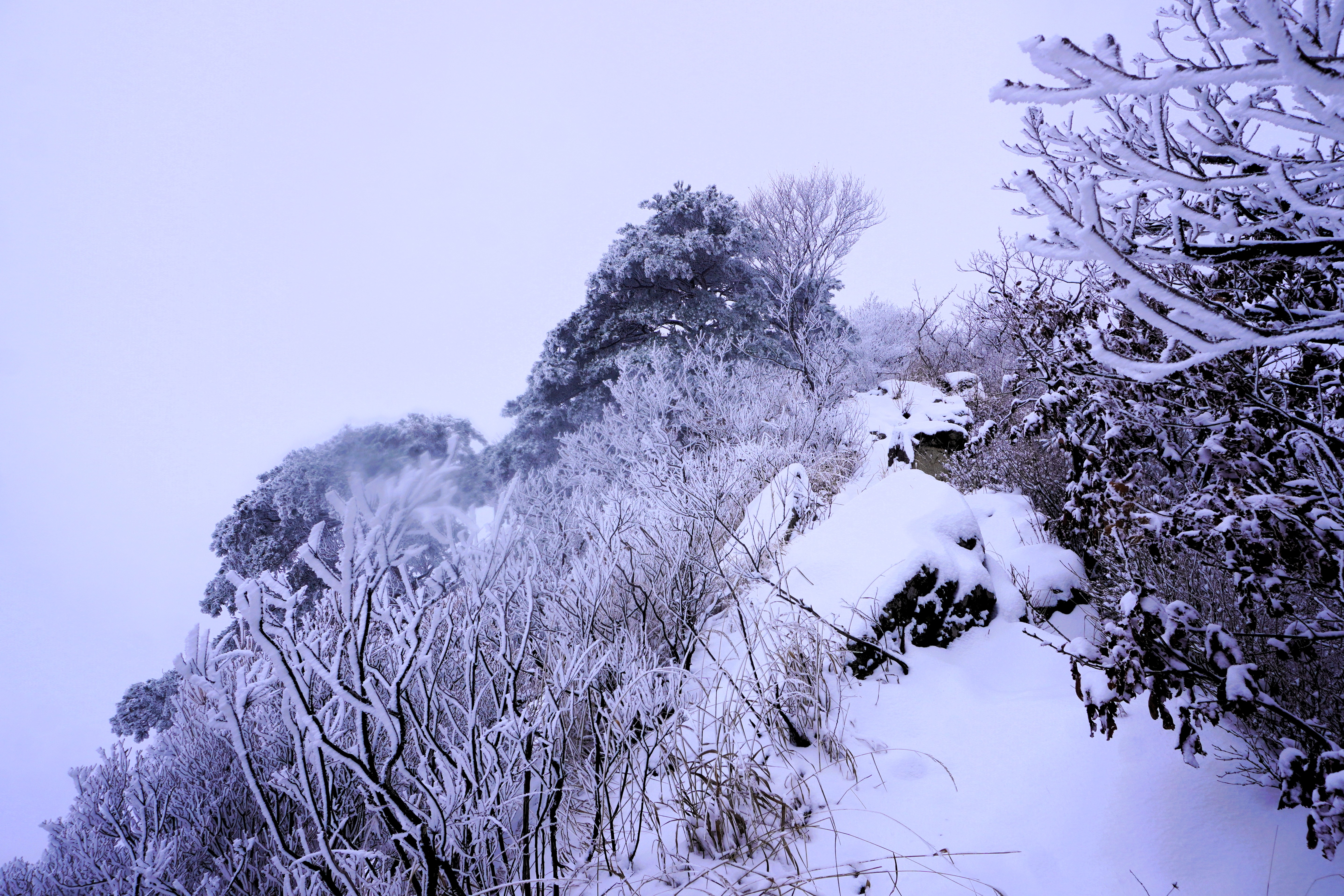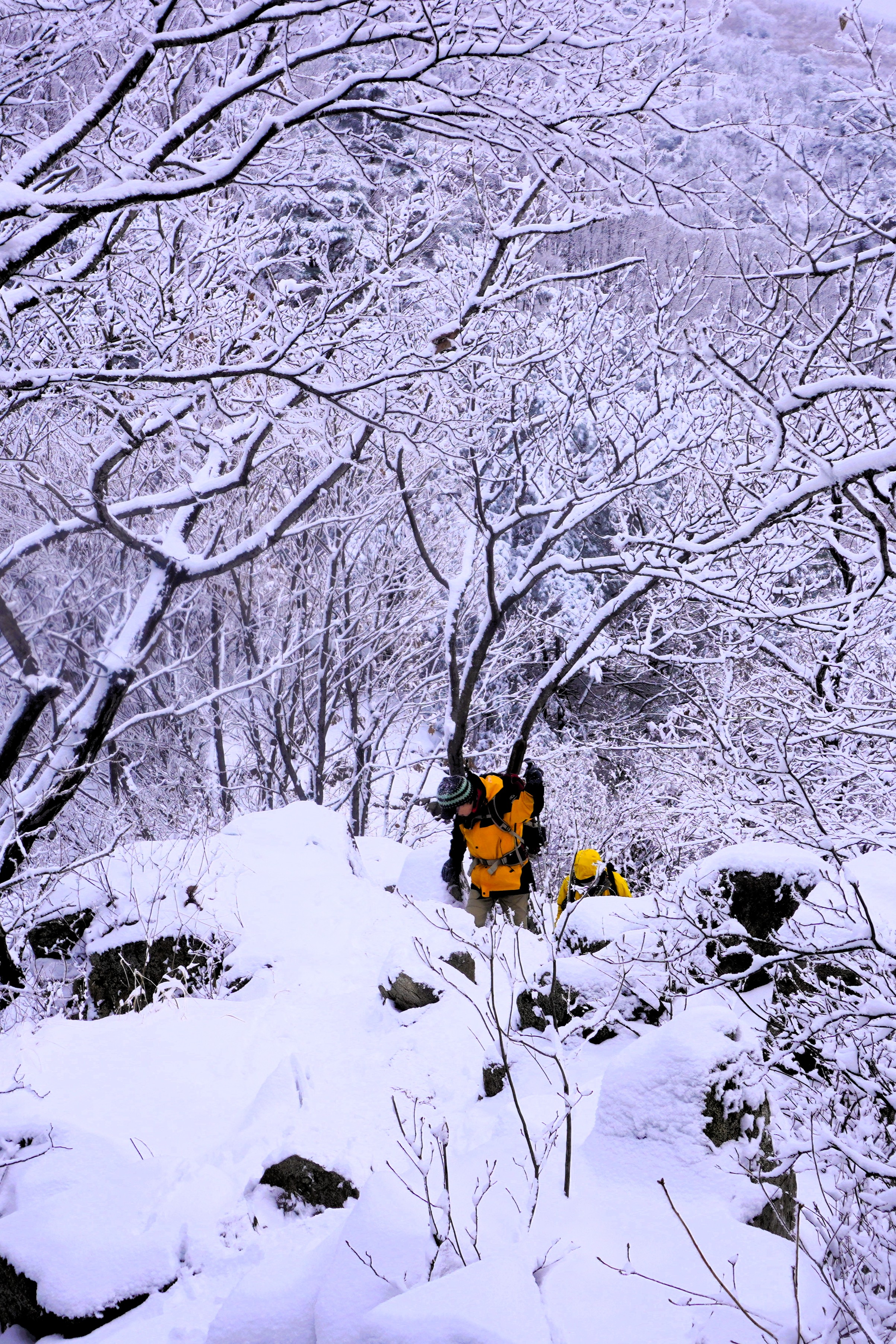바위 너덜이 눈으로 덮여있어 발 디디기가 까다로웠지만... 나무에 맺힌 눈송이들이 마치 꽃인양 하여 어렵지 않게 올라가