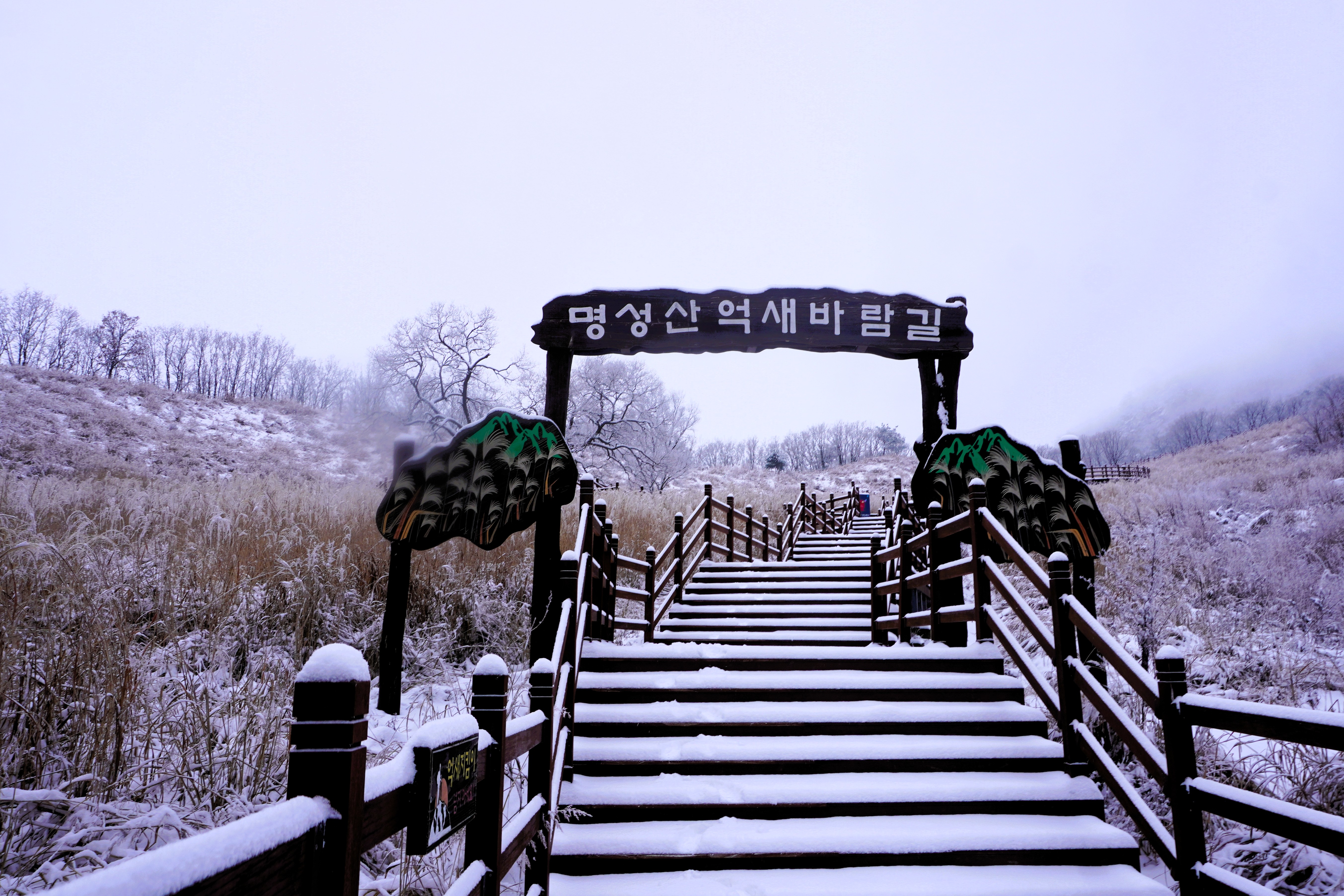 하얗게 일렁이는 억새꽃들은 없어도 작게나마 눈을 인 억새들의 모습 또한 멋져서 그것들을 구경하면서