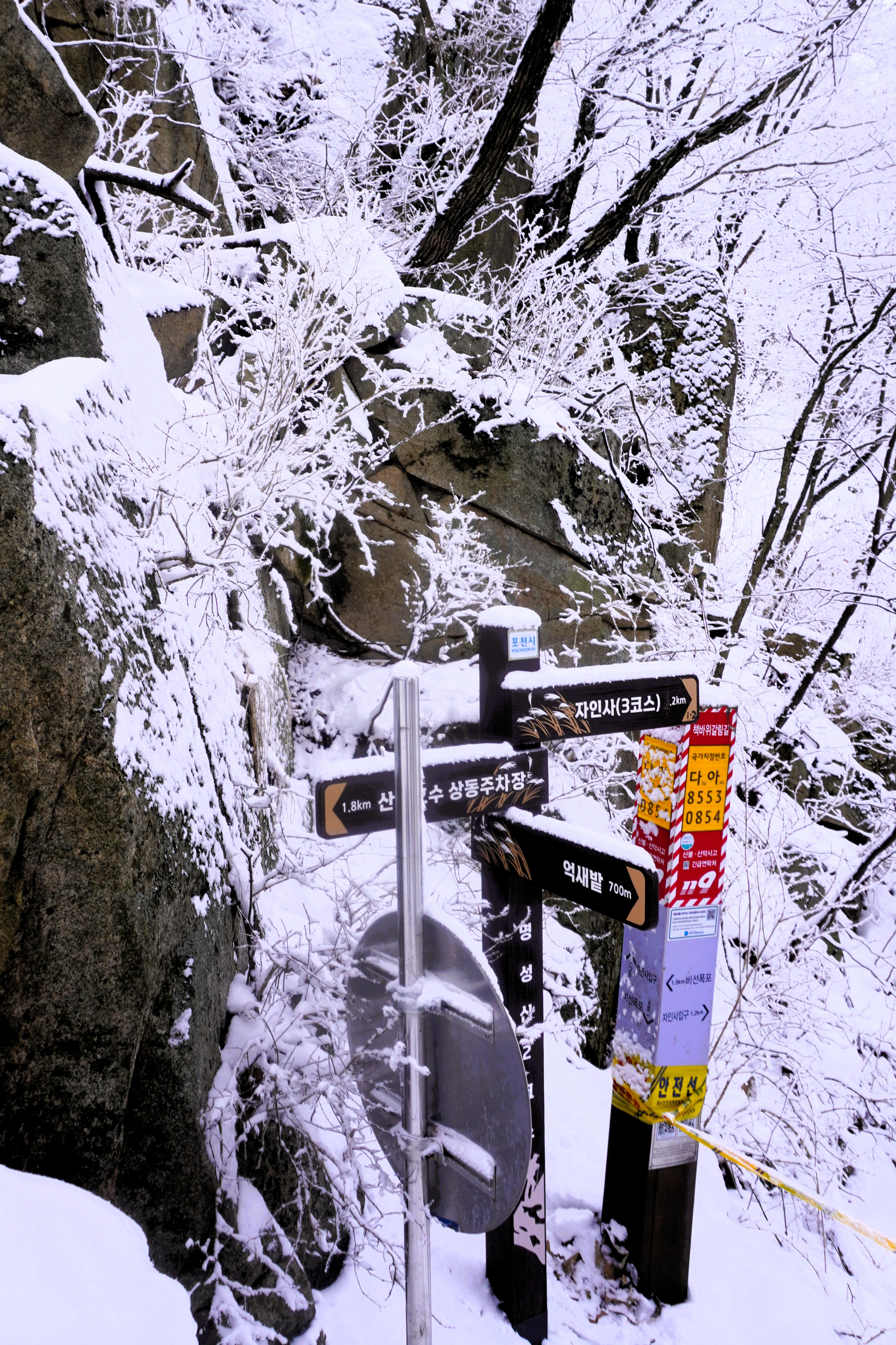 책바위능선 들머리를 지나고 잠시 더 걷다보면... 오른쪽으로 계곡을 건너 여우봉으로 오르는 길이 있다 던대 죄다 눈으로 덮여 있어서 찾아볼 수 없었다.