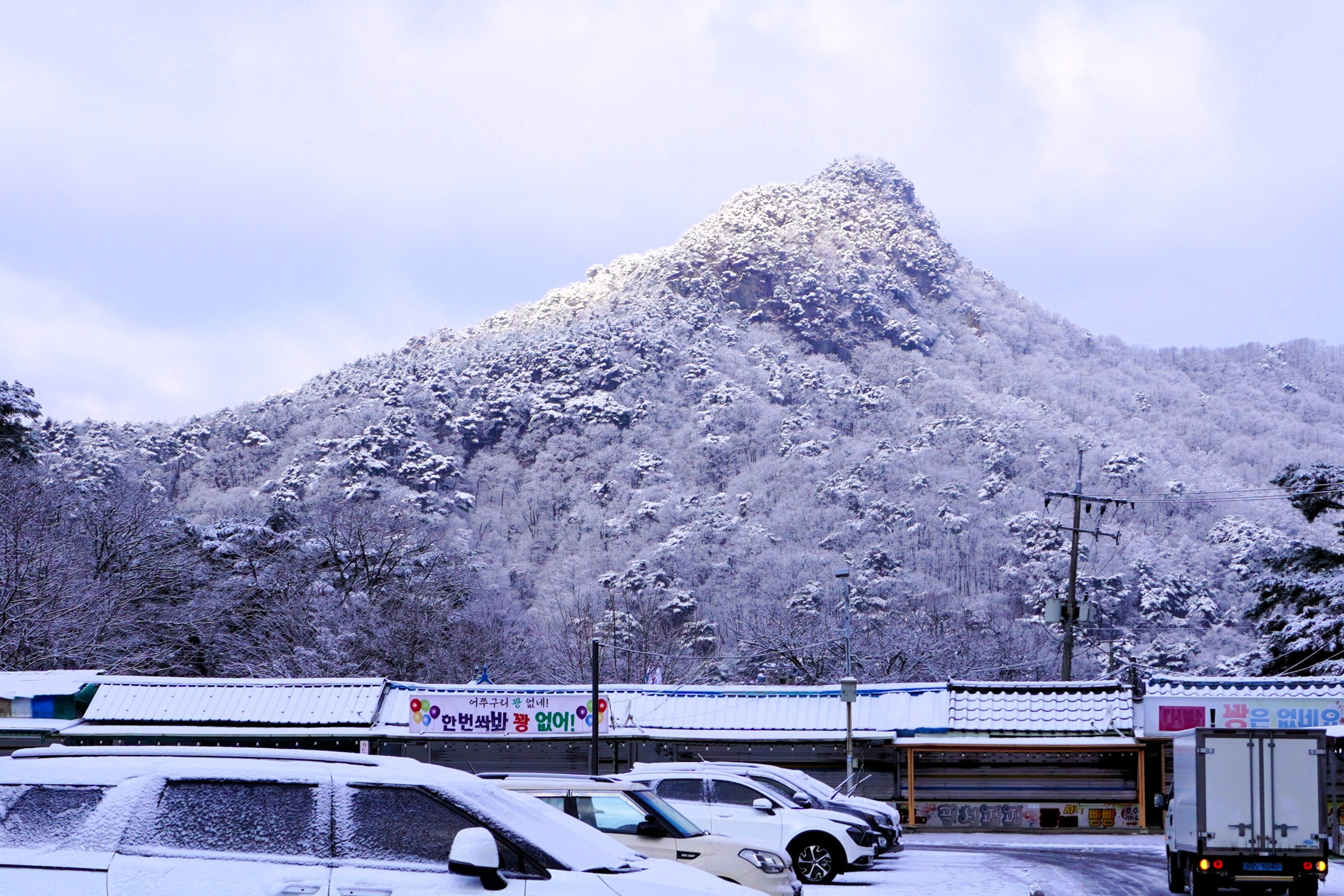 암튼, 지난 주에 첫눈이 내리긴 해서 고교친구들과 태조산으로 가 그것을 밟았지만, 살짝 덮여있거나 녹아 있어서 눈 밟는 맛이 없었는데... 오늘은 그 맛이 상당하다.