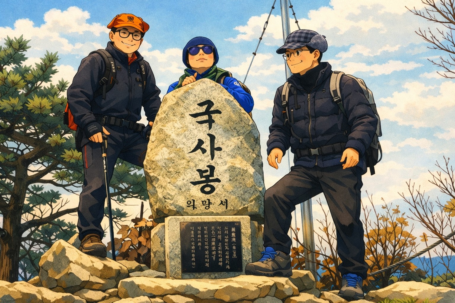 국사봉 정상석을 얼싸안고 이제는 어려운 구간을 모두 통과했음을 행복해했다. 두 친구 역시 그 뿌듯한 행복함으로 뿅~ 30년 전의 모습으로 변하고... ㅋㅋㅋ