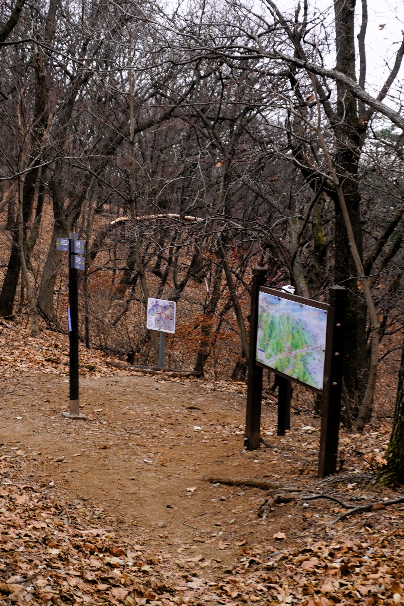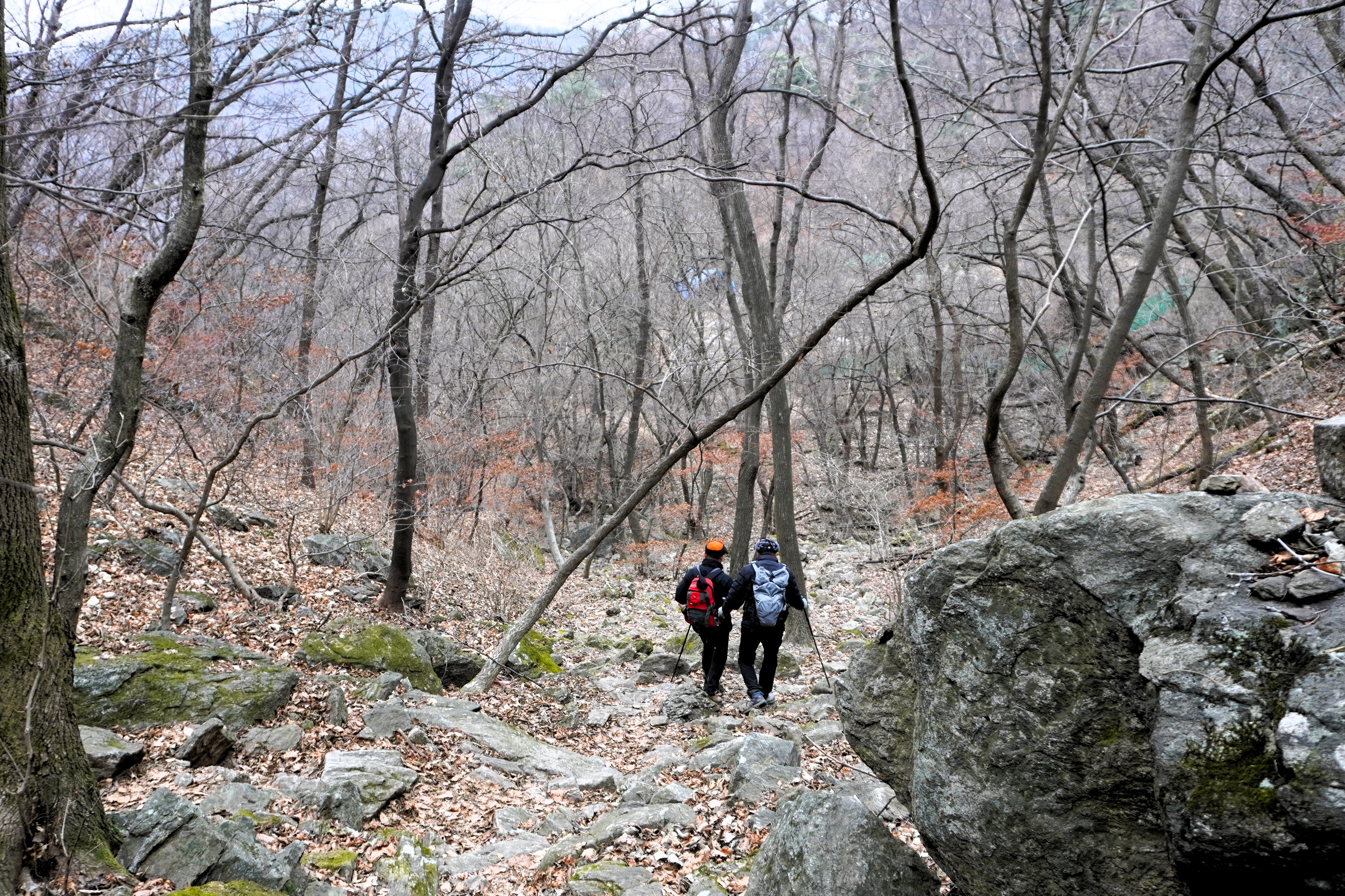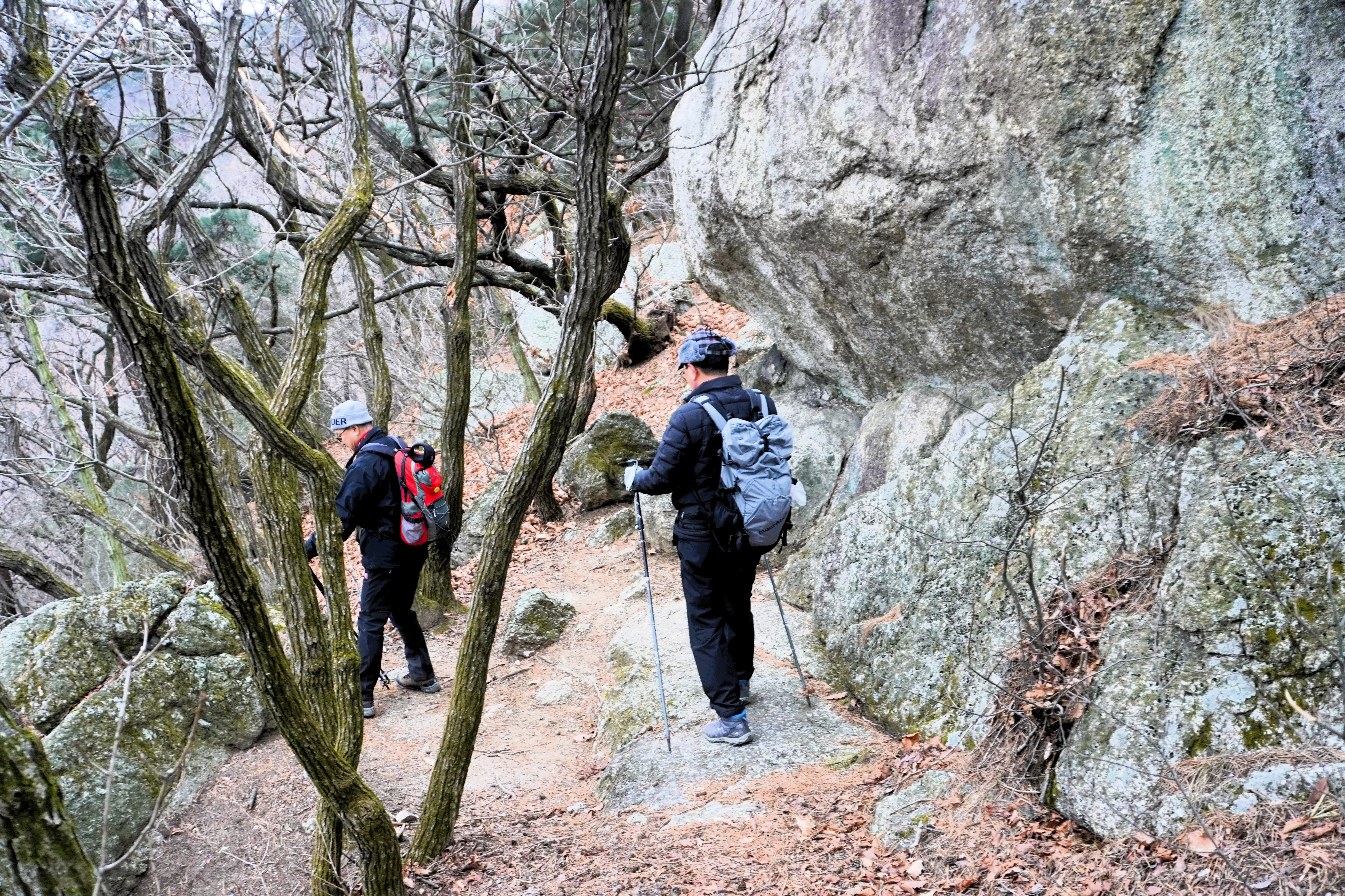 오전까지 몹시 추웠으나 다행히 오후로 접어들면서 영상의 기온이 된 날씨로 하늘은 산행 내내 흐렸다. 고교 친구 두 명과 함께 했다.