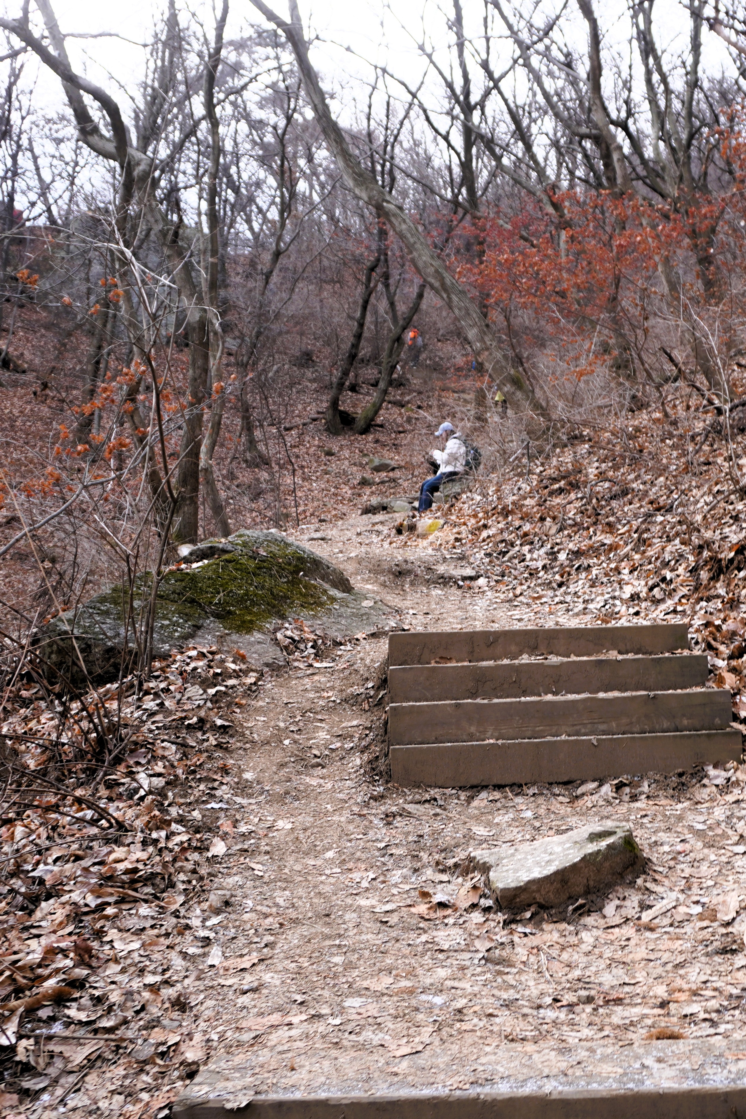 7부 능선에 도착해서 잠시 숨을 고르는데... 잠깐 스치는 바람이 등에 섬찟한 차가움을 남기고 갔다. 그러니 오래 멈출 순 없고 다시 길을 나섰다.