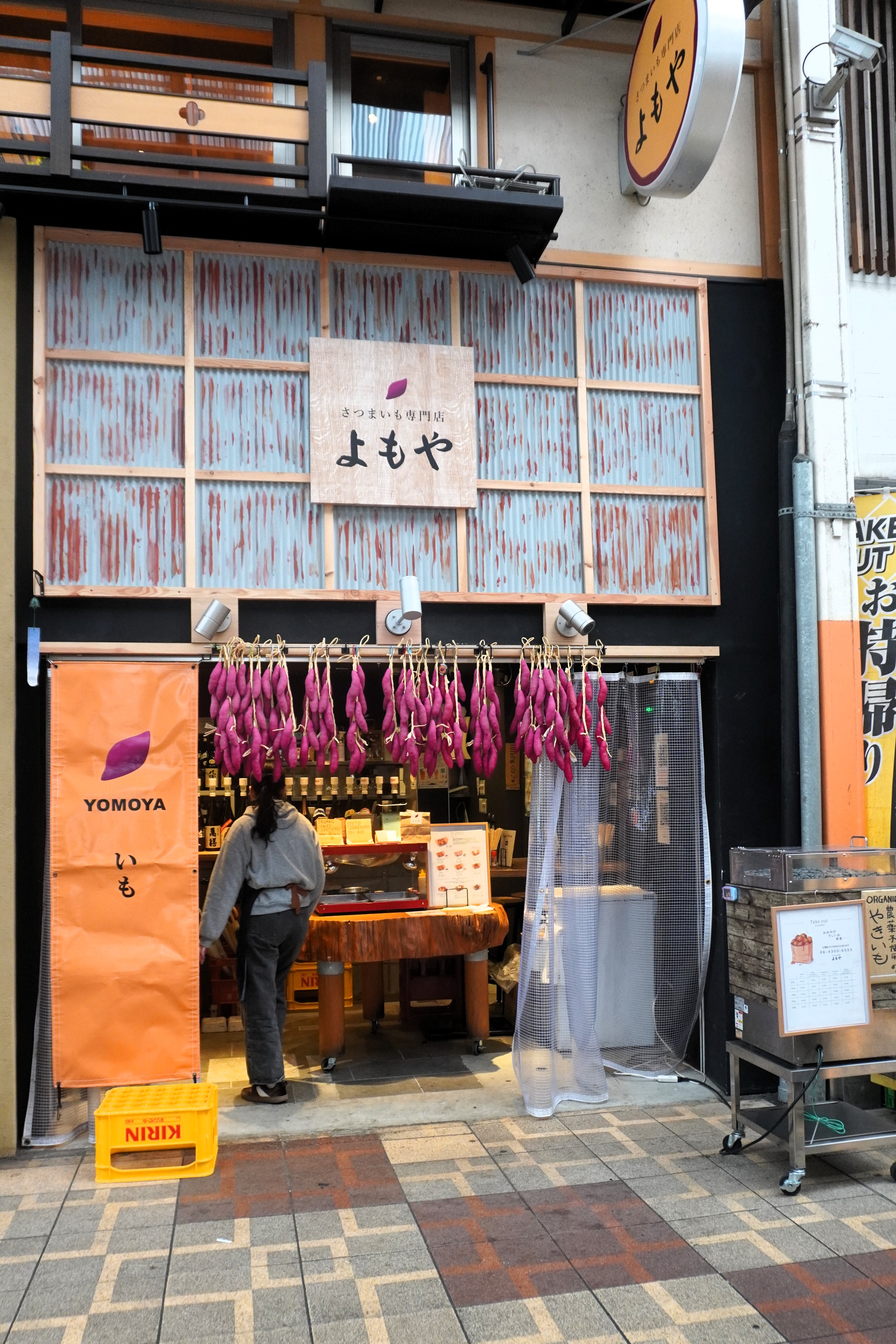아침을 마치고 다시 난바역으로 가는 길. 여긴 고구마도 참 희안하게 파는군 ^^. 치츠케잌이 유명한 곳이라 해서 케잌 하나를 사서 배낭에 넣고...
