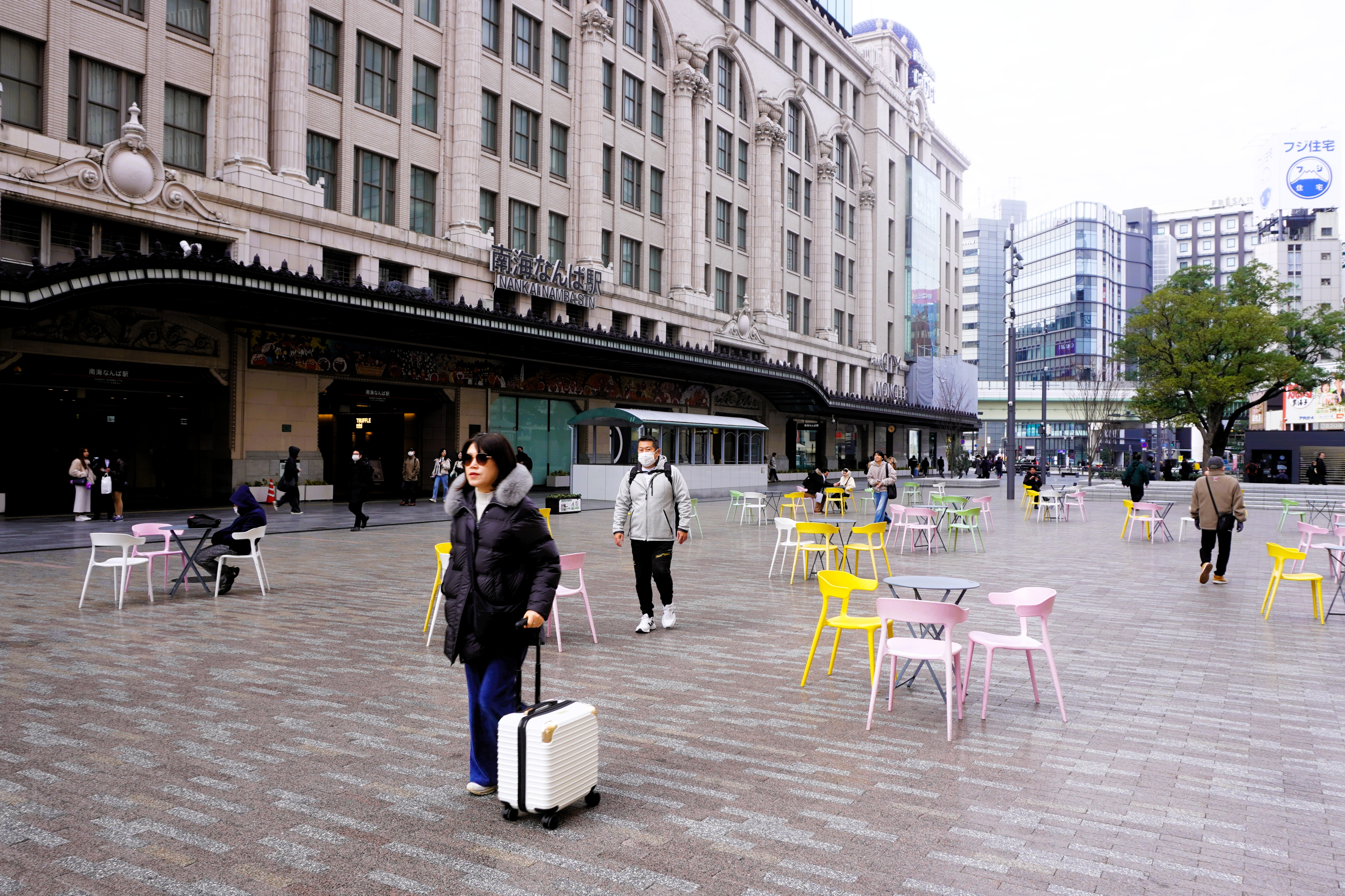 미나 교토 백화점 앞에서 하차. 두 딸들의 그 백화점 쇼핑 들러리를 마치고