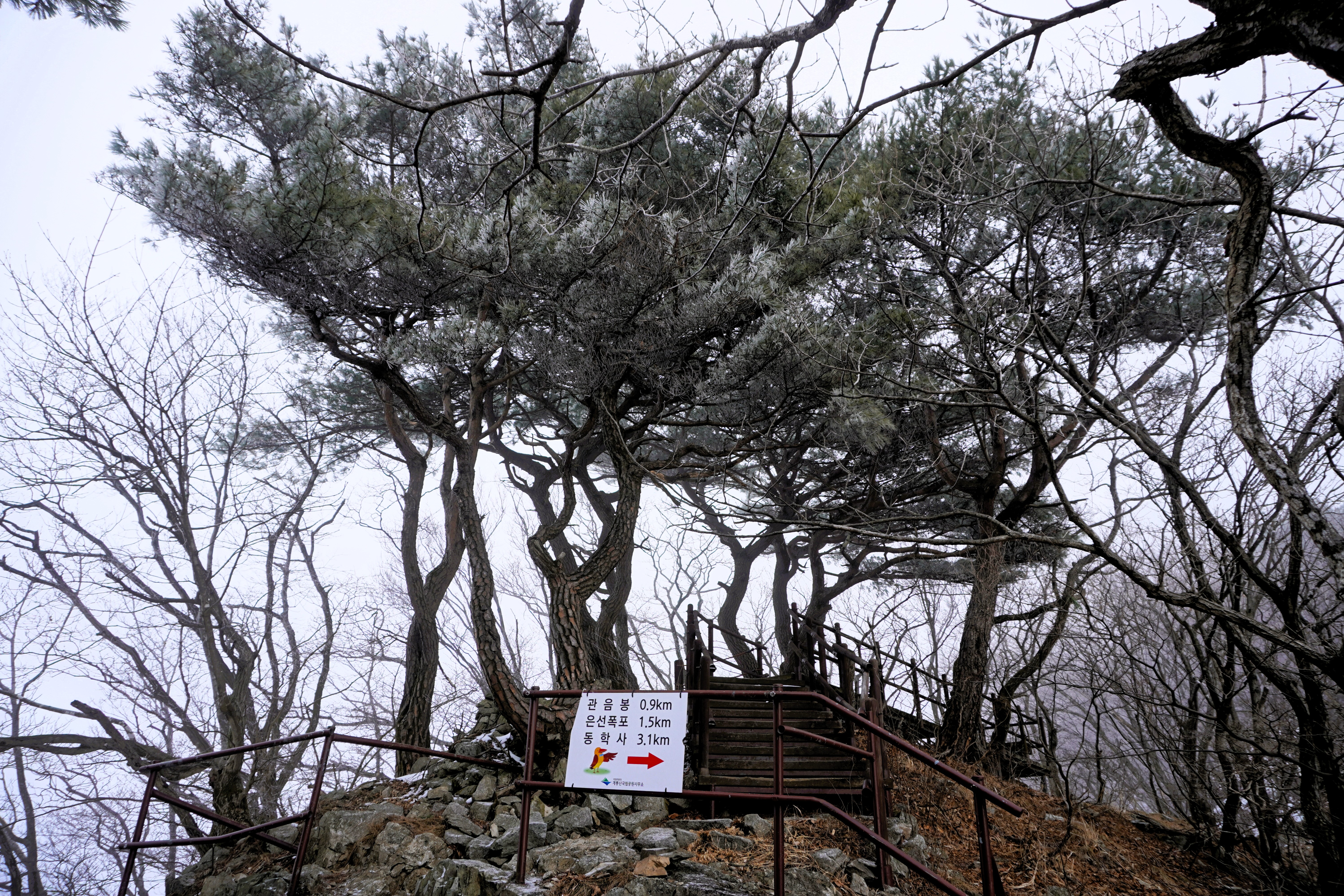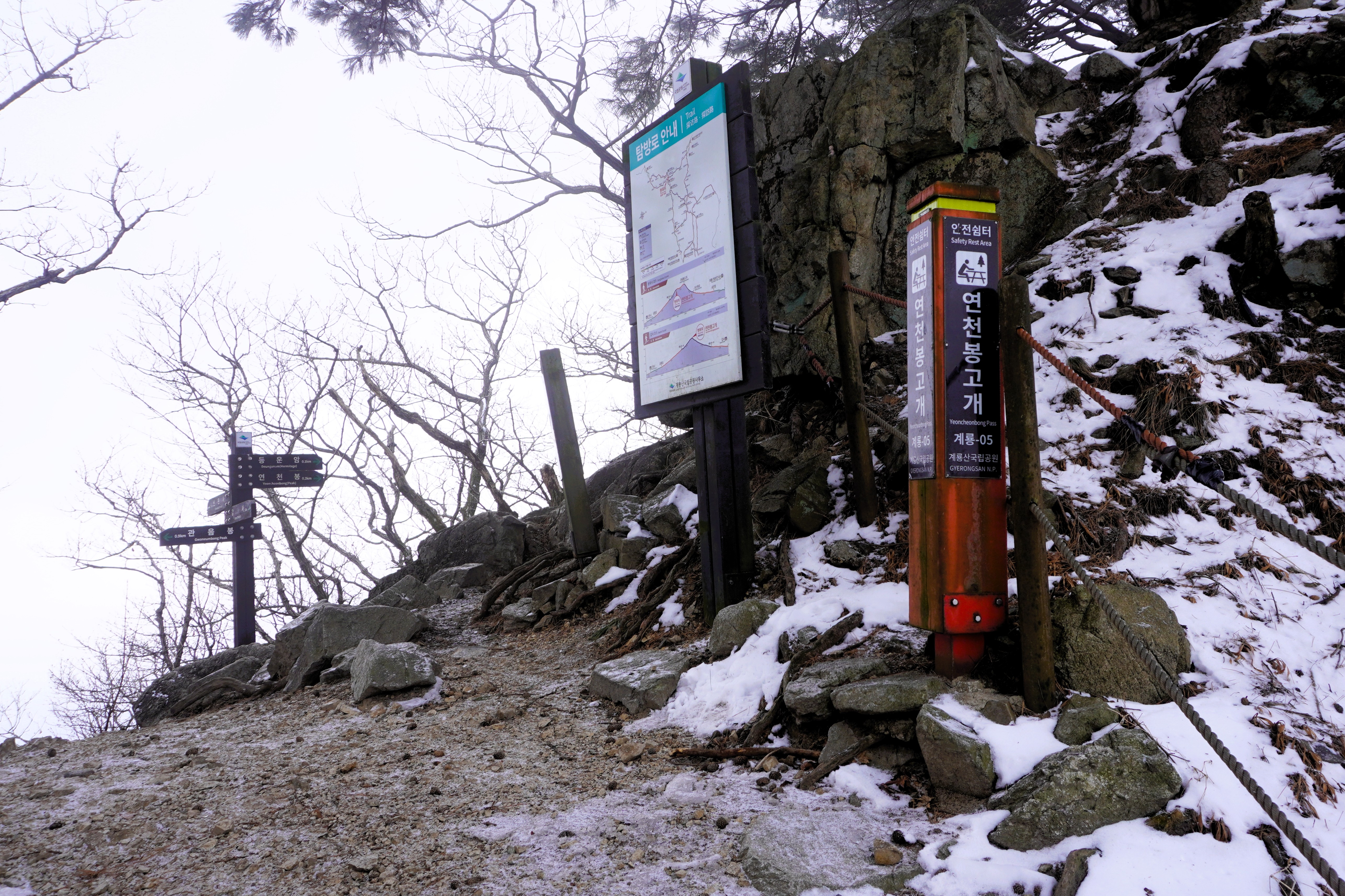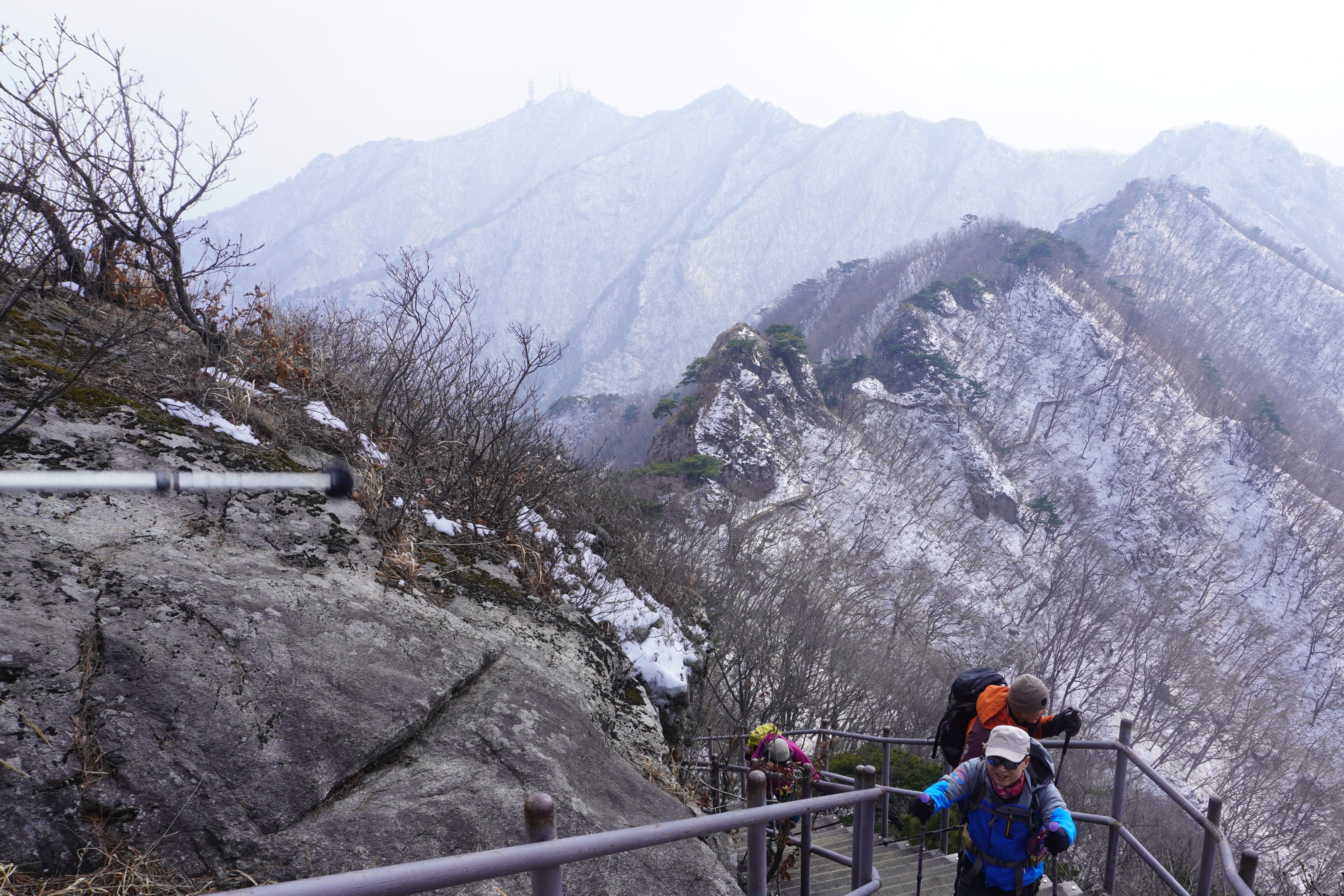 안경에 달라붙은 입김이 얼어 줕어 길을 볼 수 없을 정도였다. 에휴~ 눈으로 덮인 돌 위엔 살얼음도 있는 것 같은데 아이젠을 장착하지 않았으니 최대한 조심할 밖에...